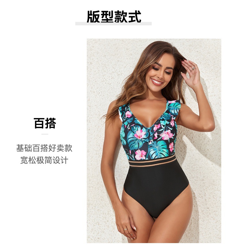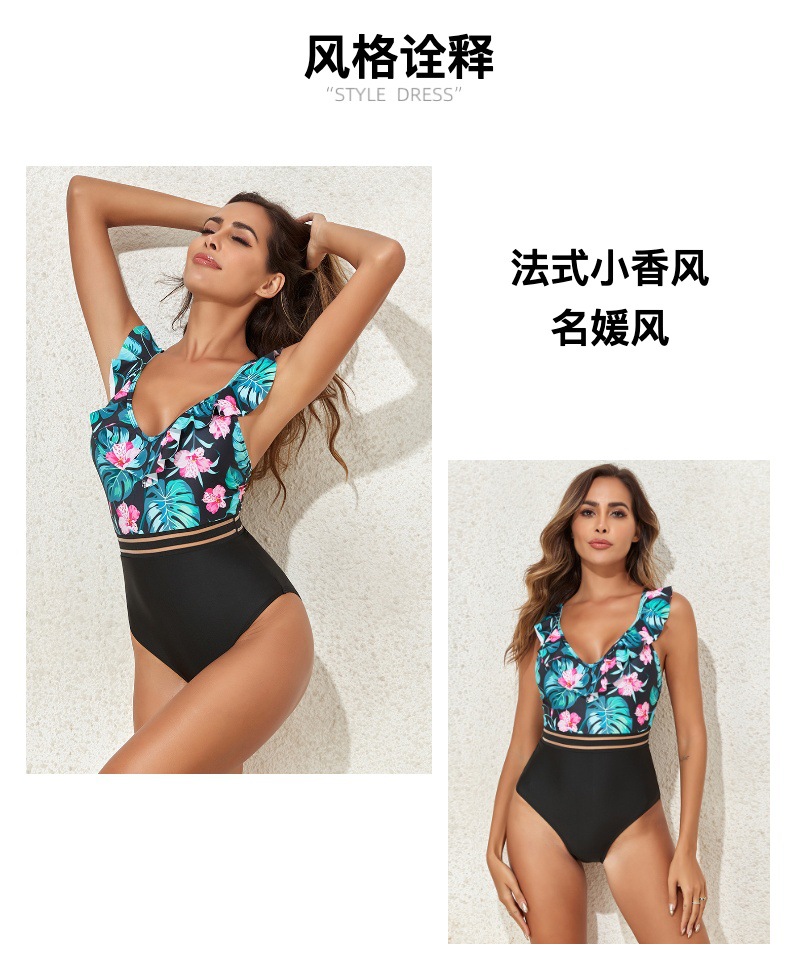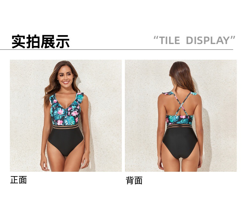 2024 새로운 비키니 여성 조각 수영복 디지털 멀티 컬러 인쇄 레이스 튜닉 슬림 핏 슬림 핏 백리스