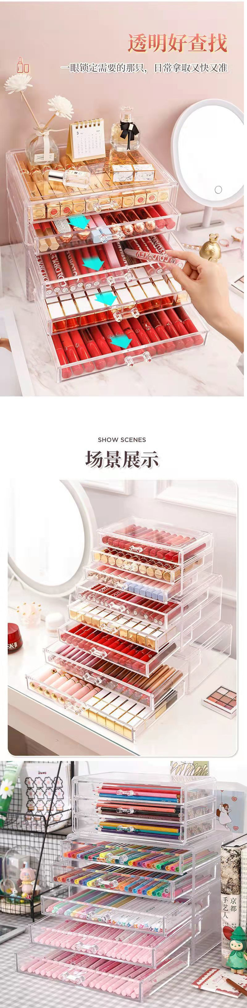 책상 보관 랙 아크릴 창조적 인 펜 홀더 컬러 리드 배럴 학생 데스크탑 다층 서랍 문구 상자스토어 가기