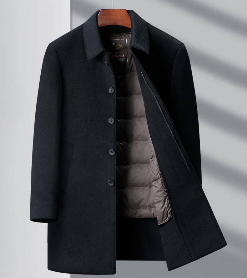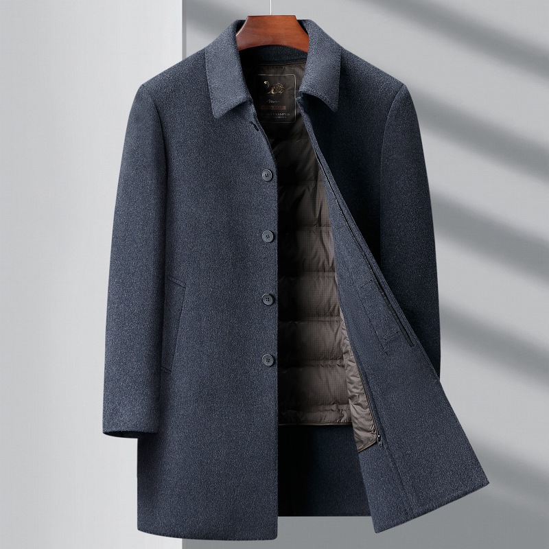 브랜드 하이 엔드 양면 트위드 겨울 중년 아버지 울 코트 롱 비즈니스 다운 라이너 코트스토어 가기