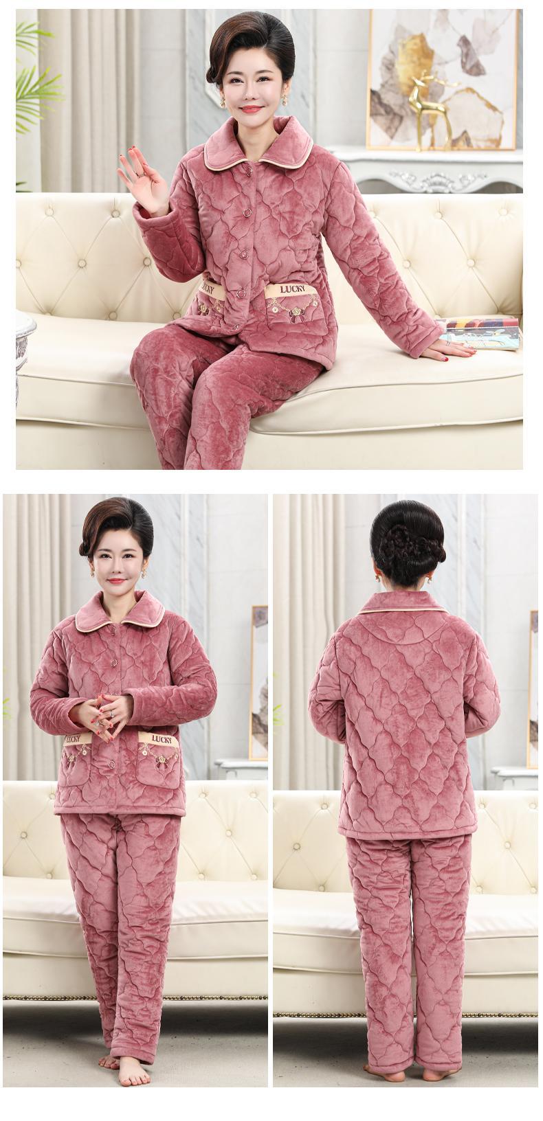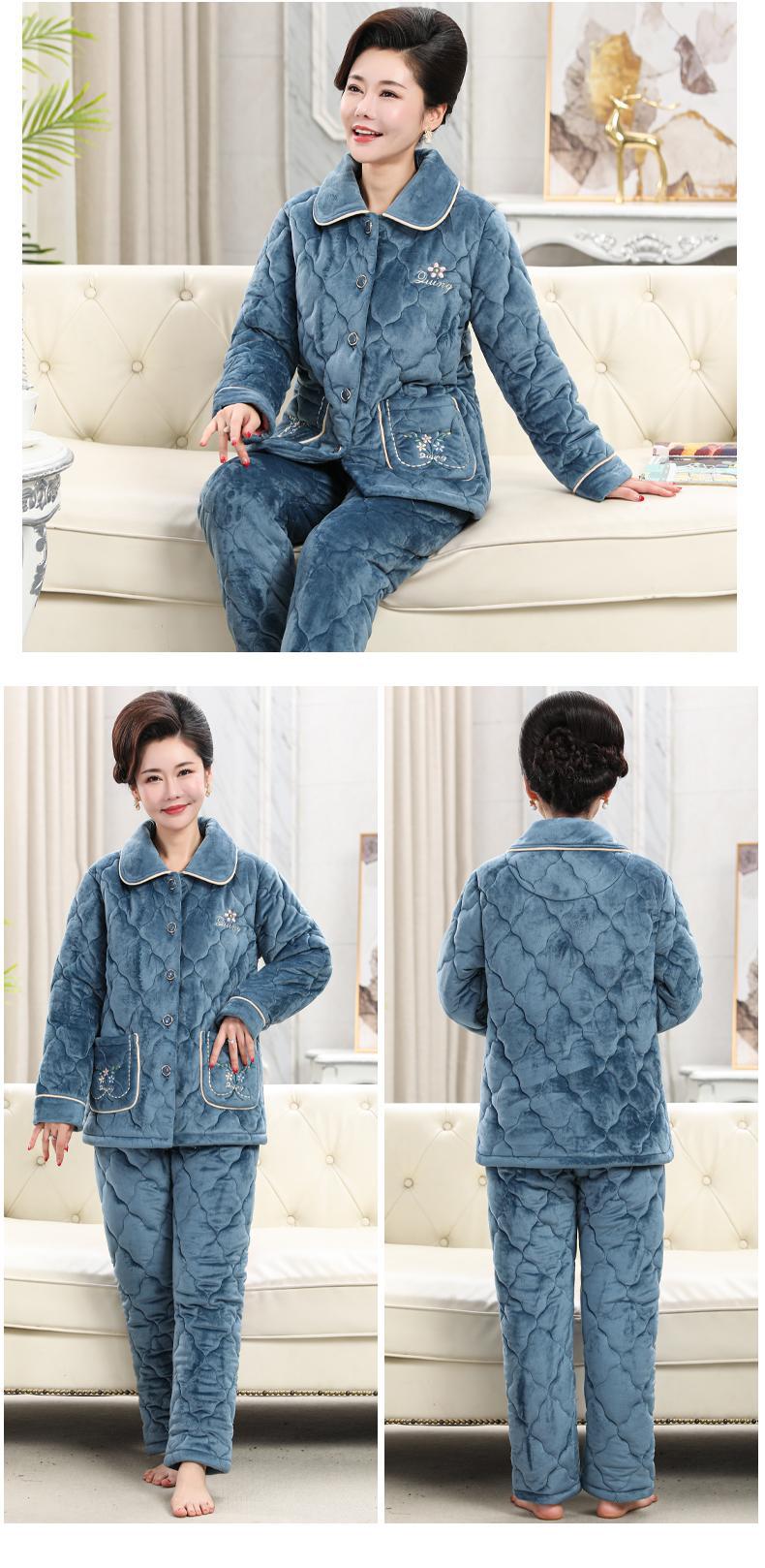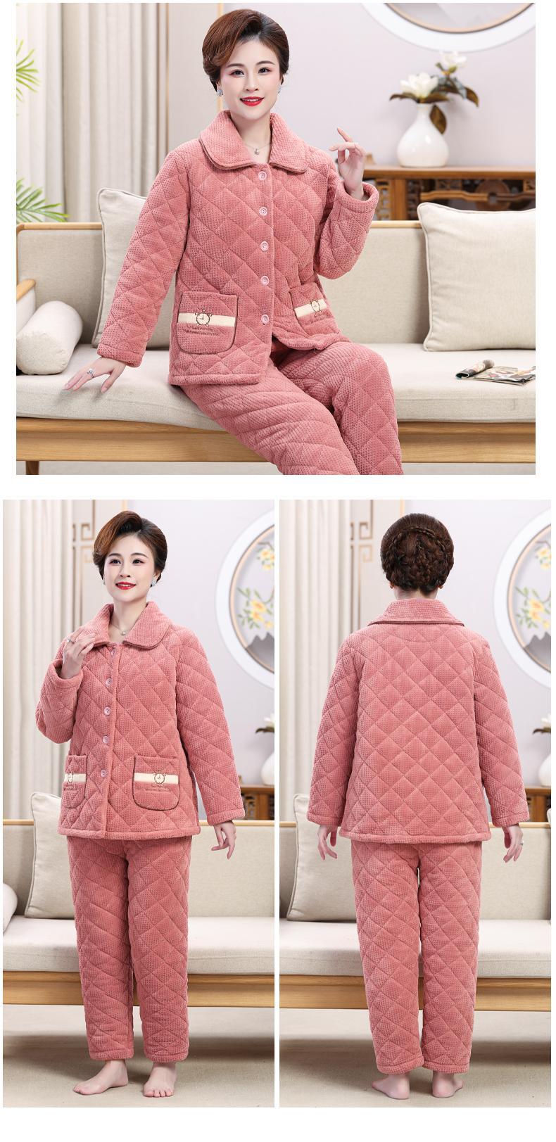 2024 새로운 중년 및 노인 산호 양털 3 층 퀼트 파자마 겨울 기모 두꺼운 따뜻한 플란넬 홈 옷스토어 가기