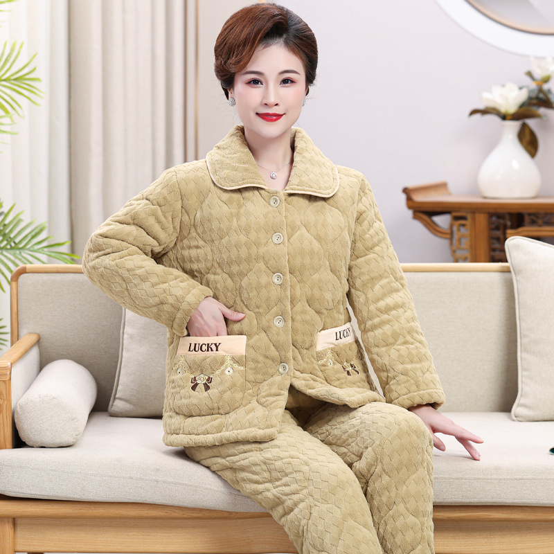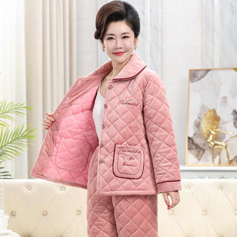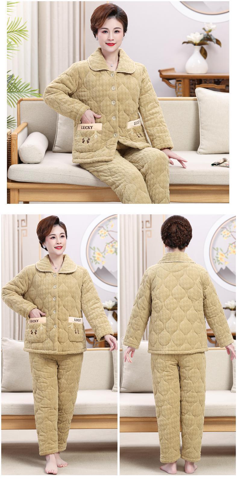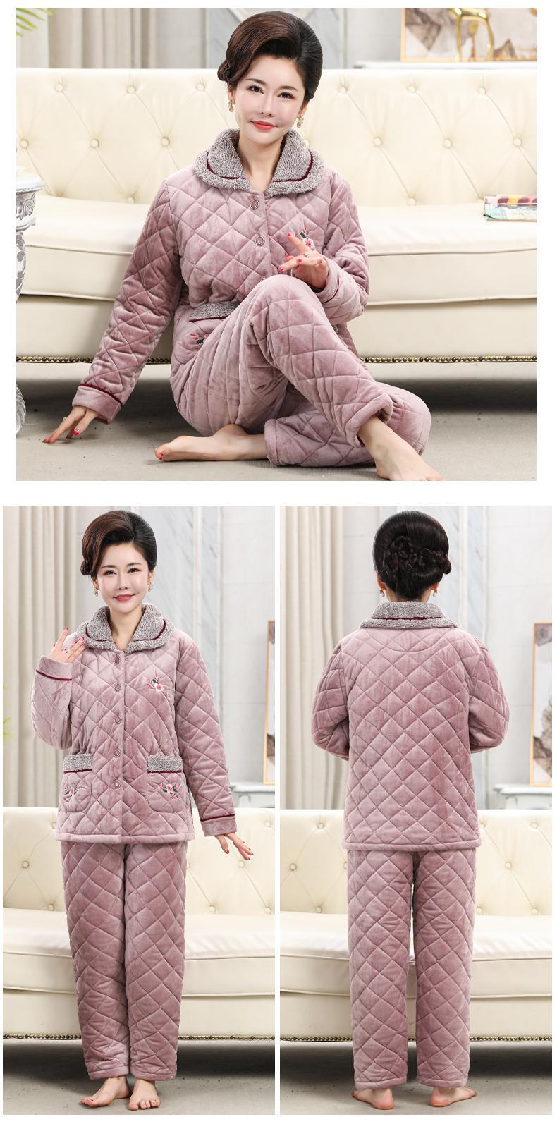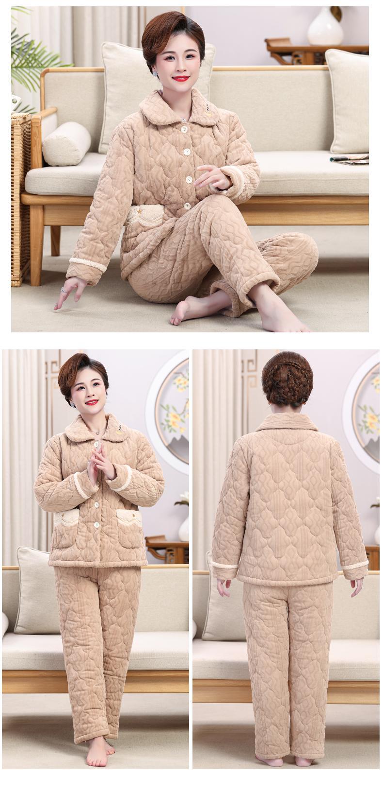 2024 새로운 중년 및 노인 산호 양털 3 층 퀼트 파자마 겨울 기모 두꺼운 따뜻한 플란넬 홈 옷스토어 가기