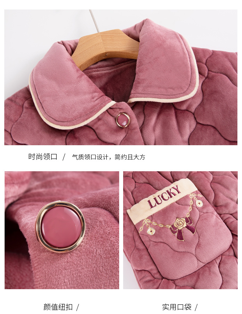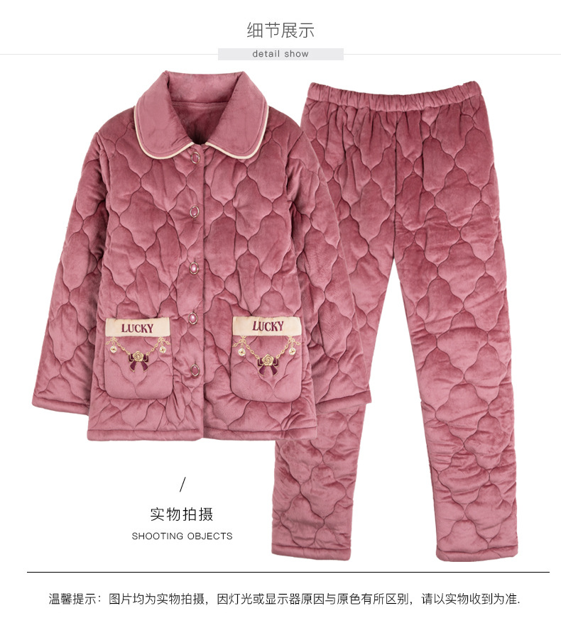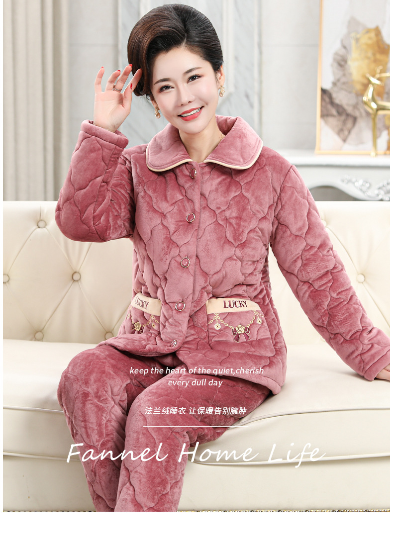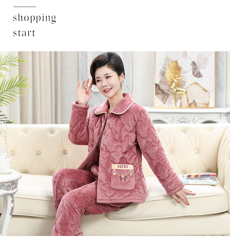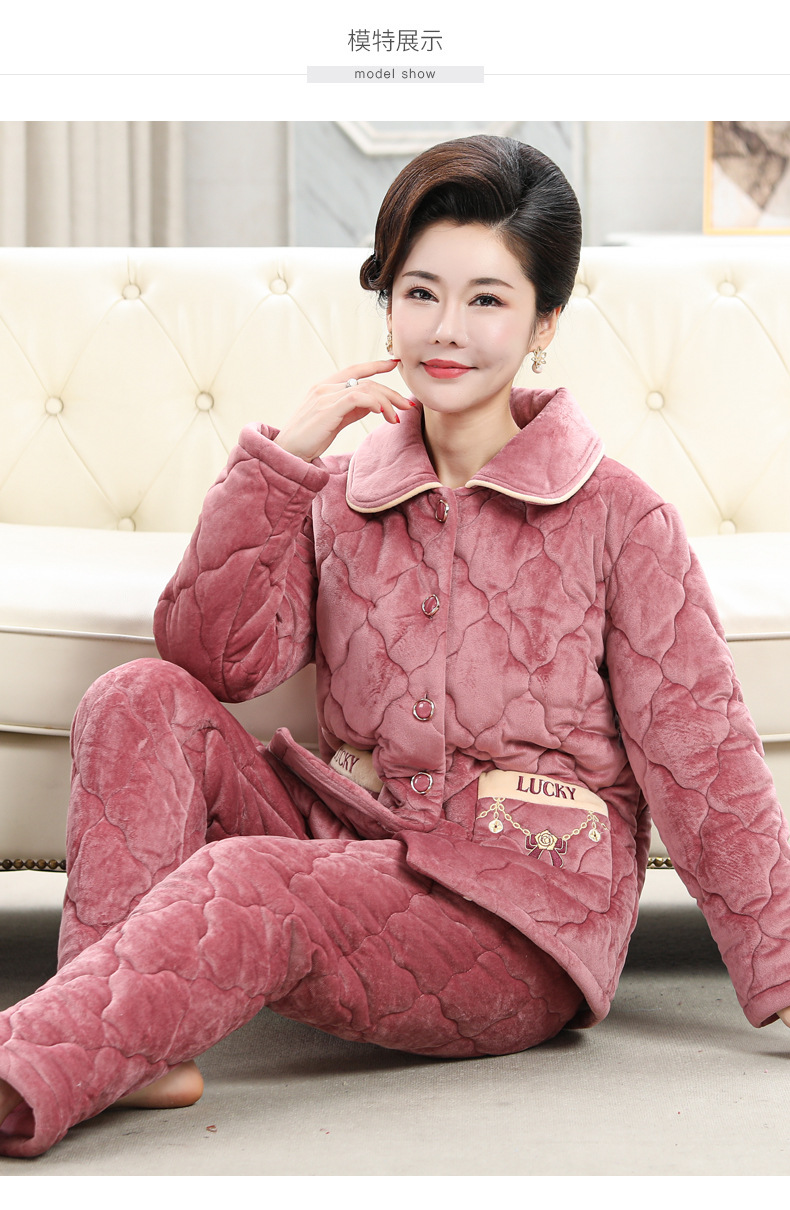 2024 새로운 중년 및 노인 산호 양털 3 층 퀼트 파자마 겨울 기모 두꺼운 따뜻한 플란넬 홈 옷스토어 가기