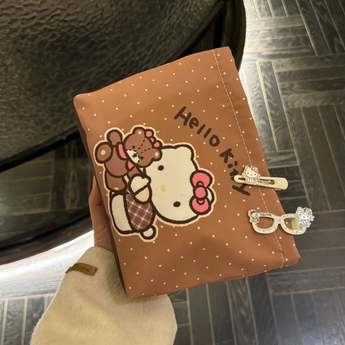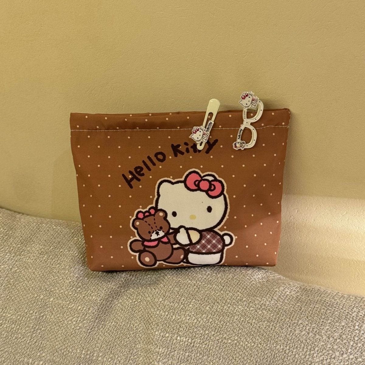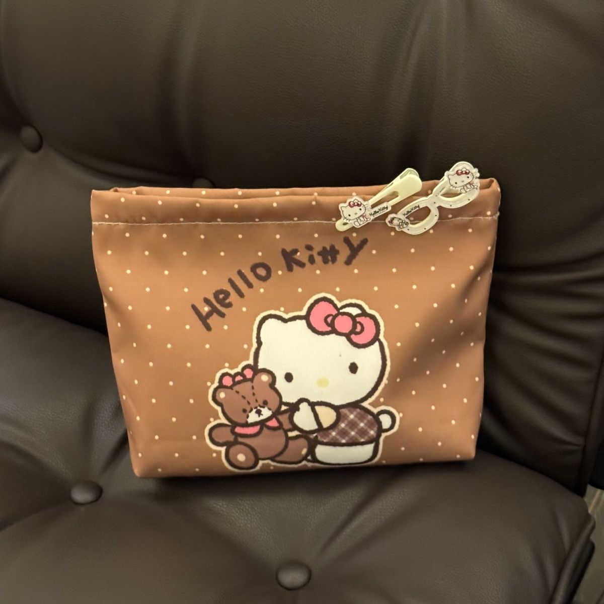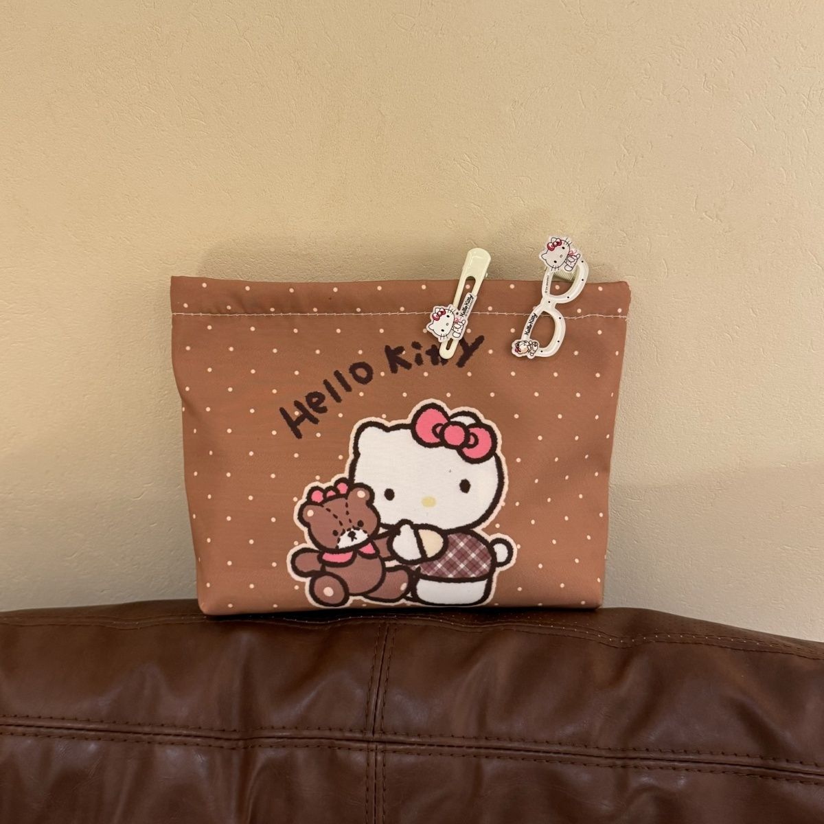 물방울무늬 kt 고양이 만화 핸드백 화장품 가방 대용량 휴대용 수업 출퇴근 수납 가방 화장품스토어 가기