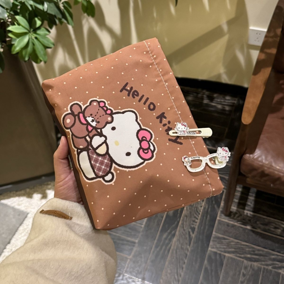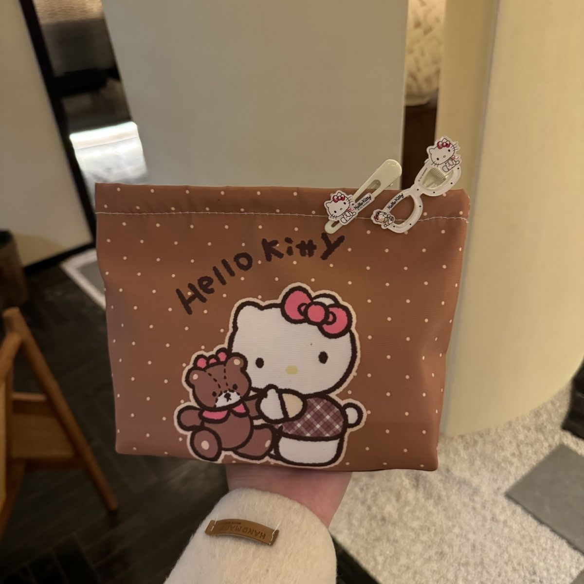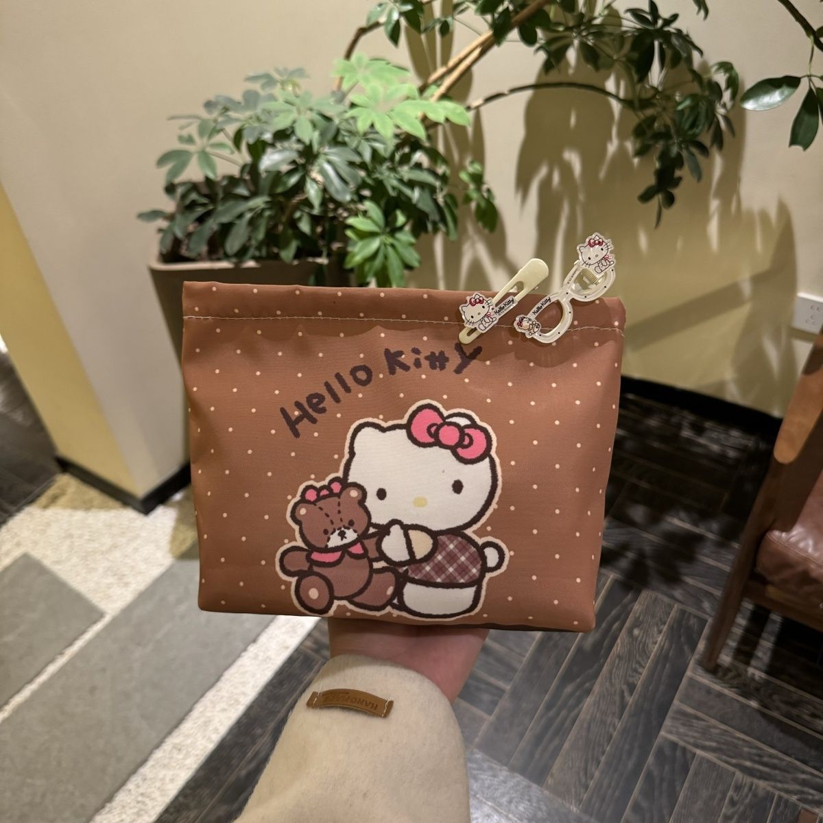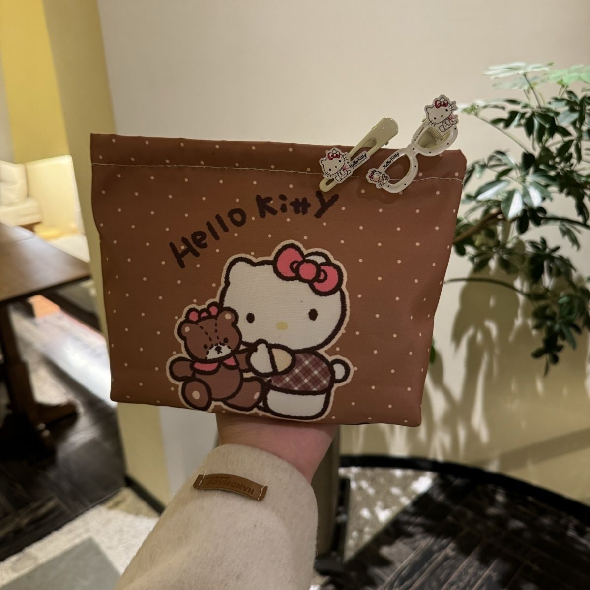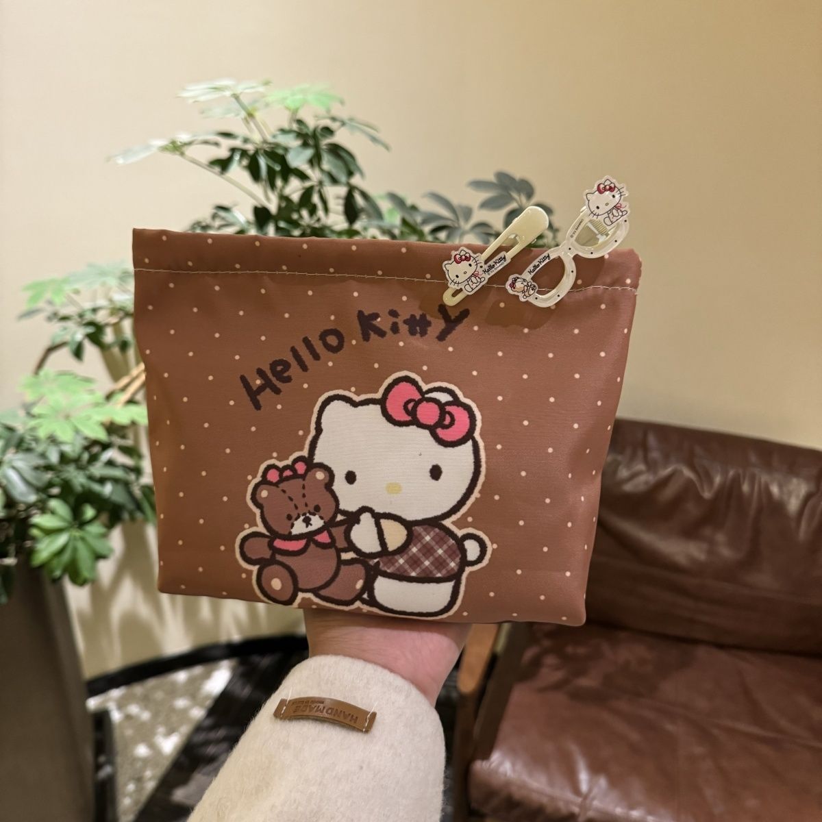 물방울무늬 kt 고양이 만화 핸드백 화장품 가방 대용량 휴대용 수업 출퇴근 수납 가방 화장품스토어 가기