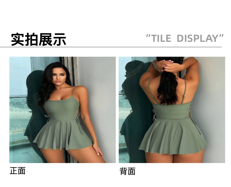 2025년 신상 스커트형 분리형 비키니, 끈이 달린 유럽풍 섹시한 삼각 팬티 수영복, 원피스 수영복 도매스토어 가기