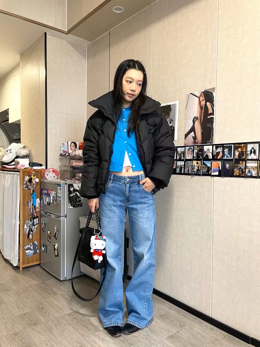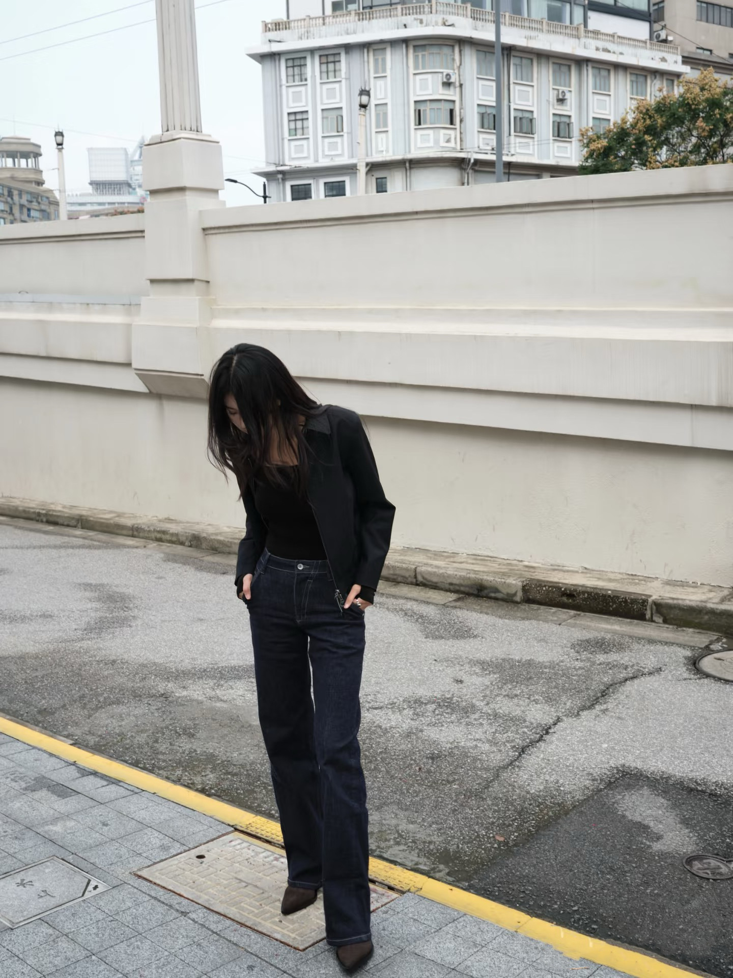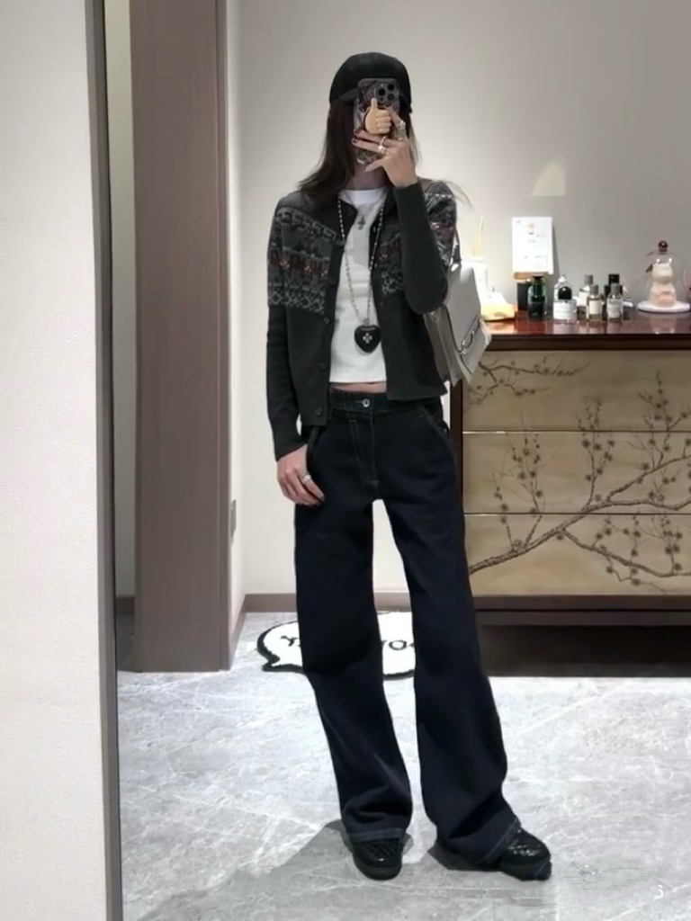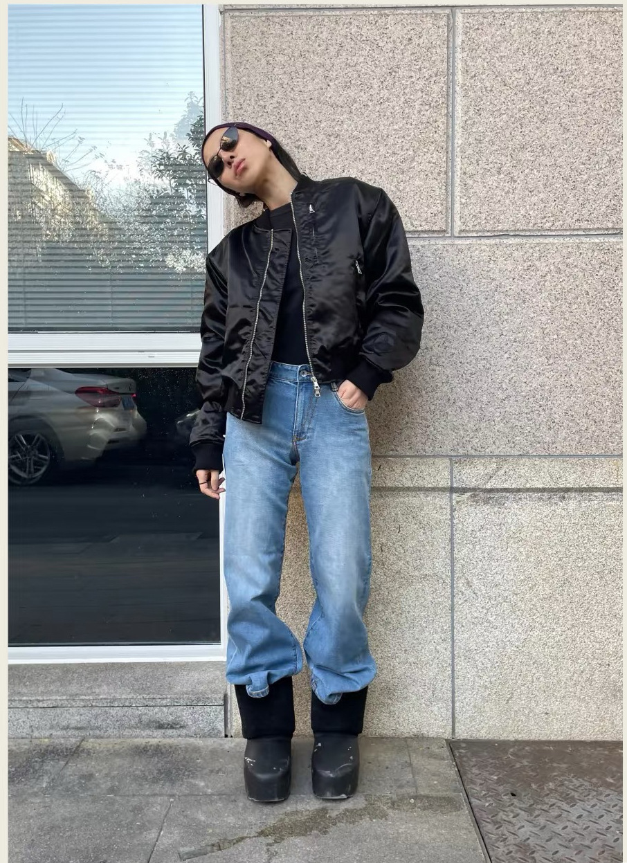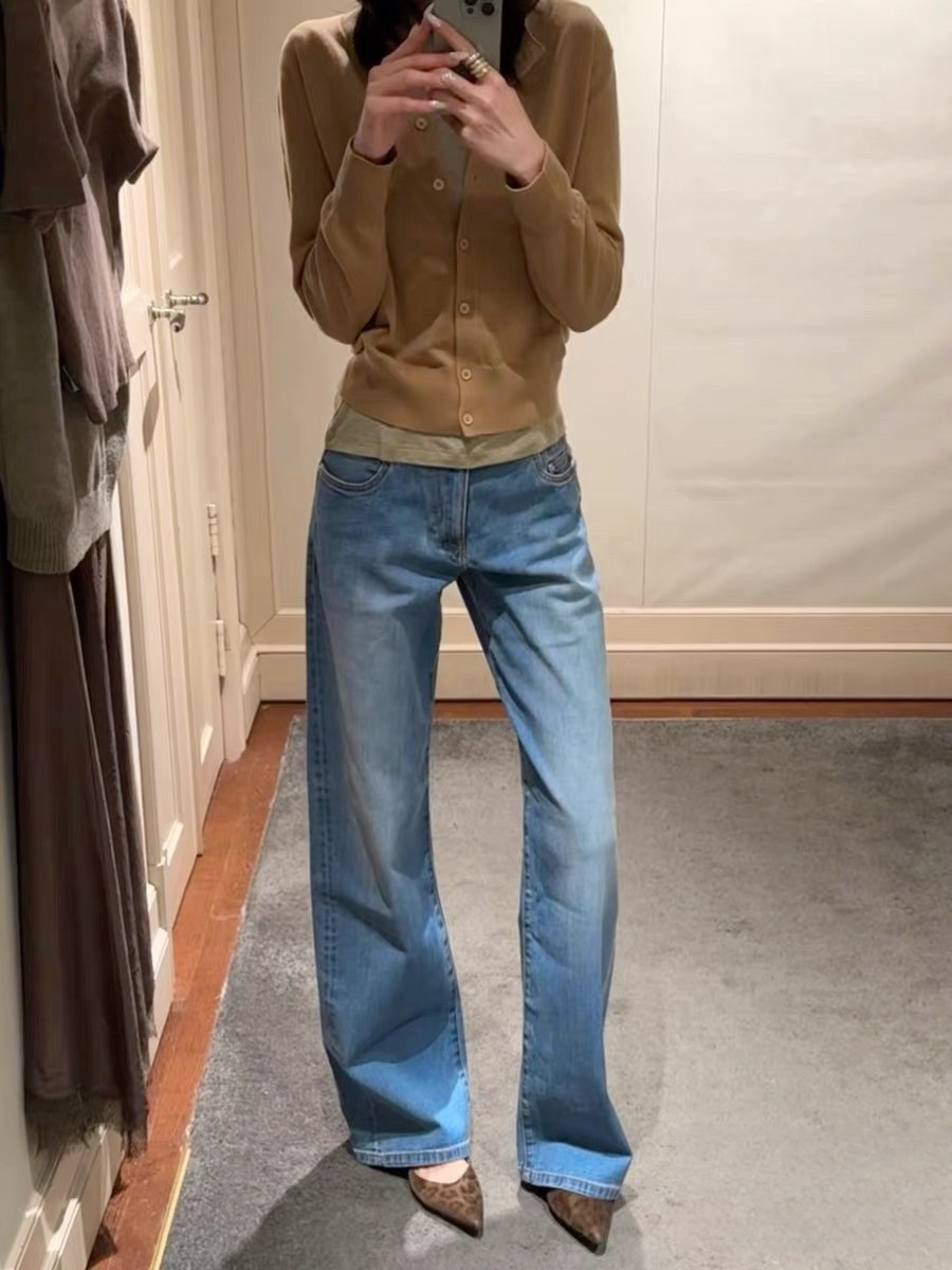 새로운 복고풍 기본 색상 데님 중 허리 슬리밍 다리 길이 A2 탄성 적합 직선 청바지 여성 3075스토어 가기