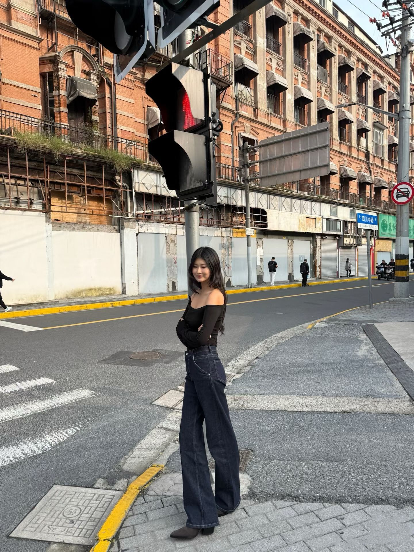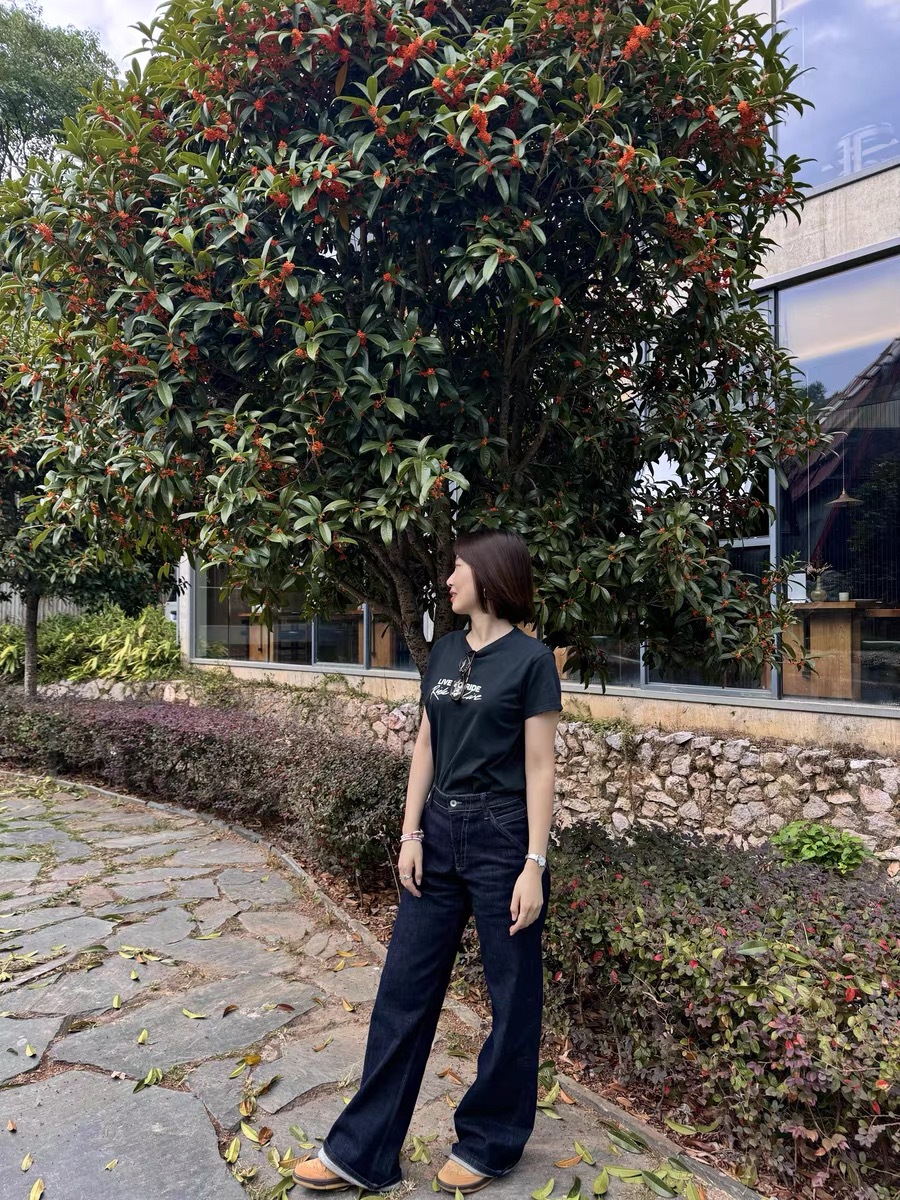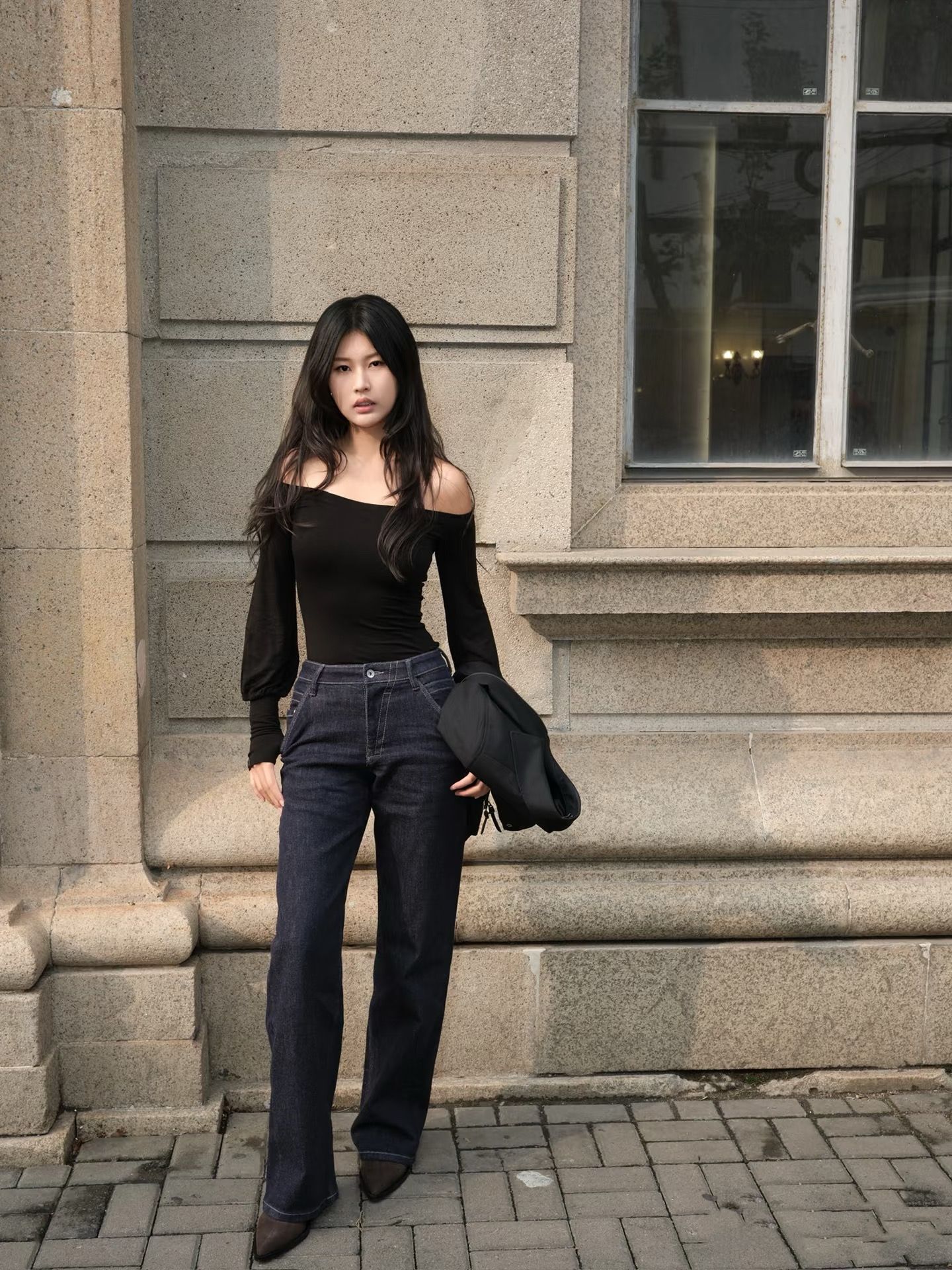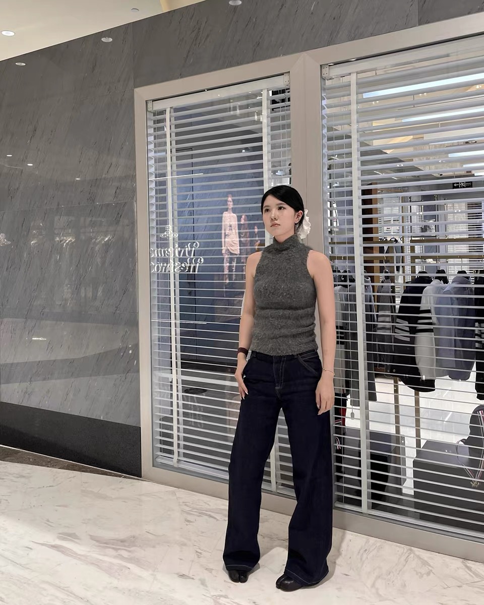 새로운 복고풍 기본 색상 데님 중 허리 슬리밍 다리 길이 A2 탄성 적합 직선 청바지 여성 3075스토어 가기