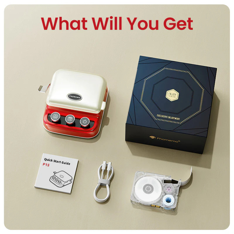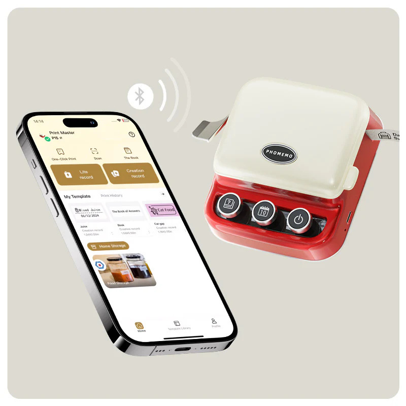 Phomemo P15 레트로 홈 라벨 기계 소형 휴대용 미니 블루투스 연결 수동 프레스 및 컷