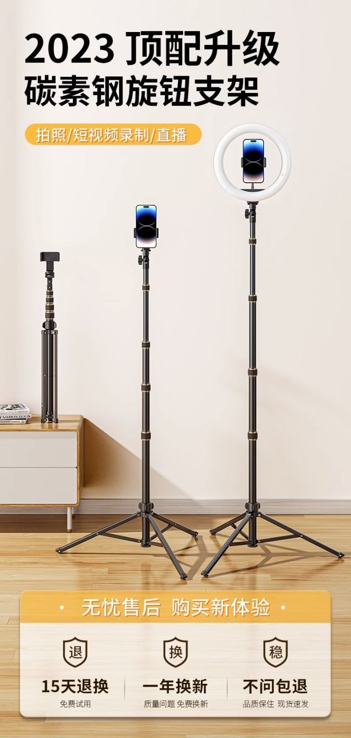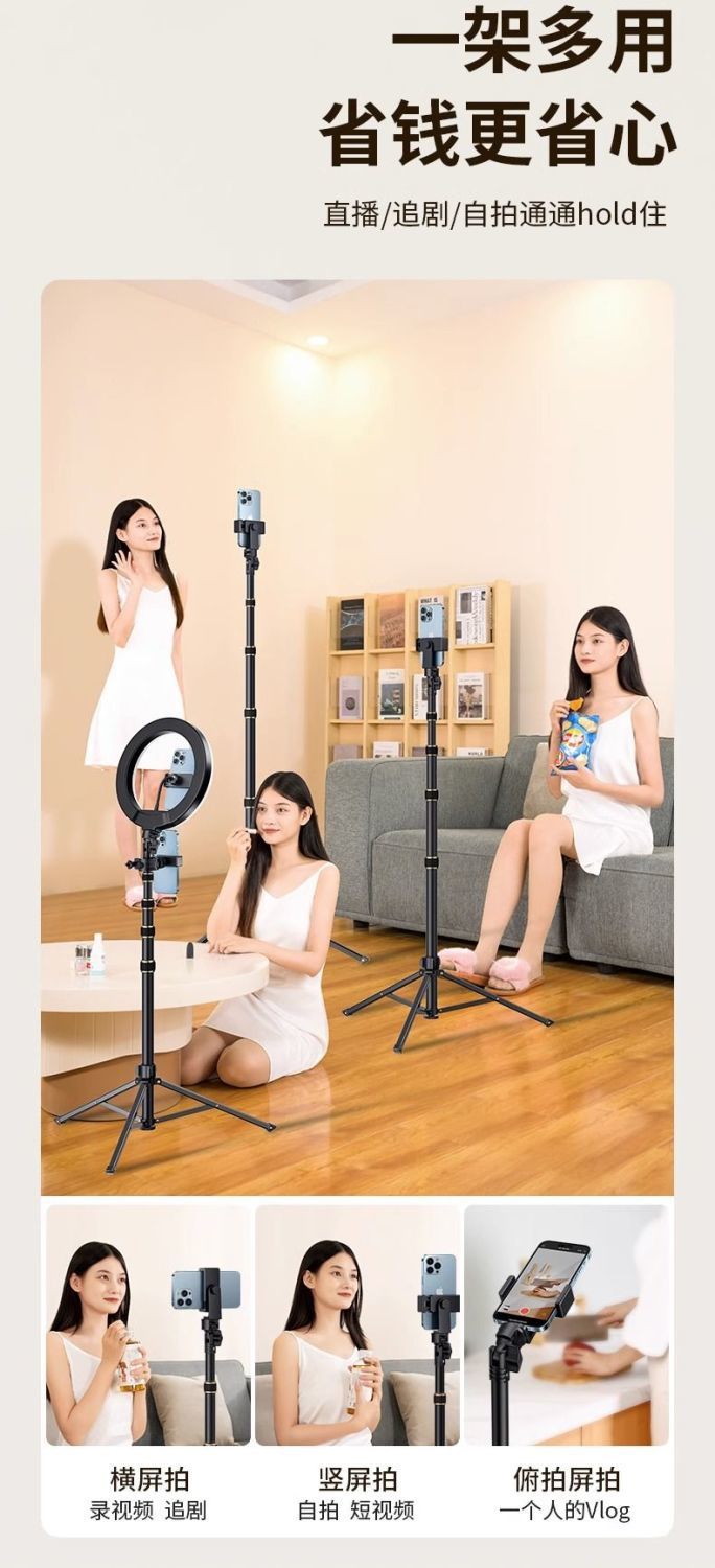 휴대 전화 스탠드 바닥 라이브 촬영 셀카 스틱 야외 카메라 비디오 삼각대 휴대용 다기능 풀 세트스토어 가기