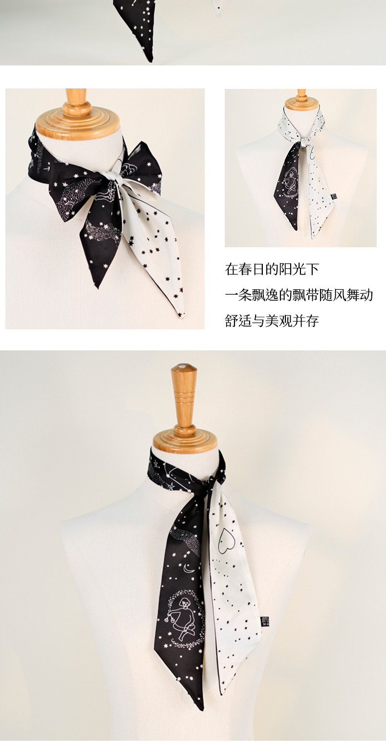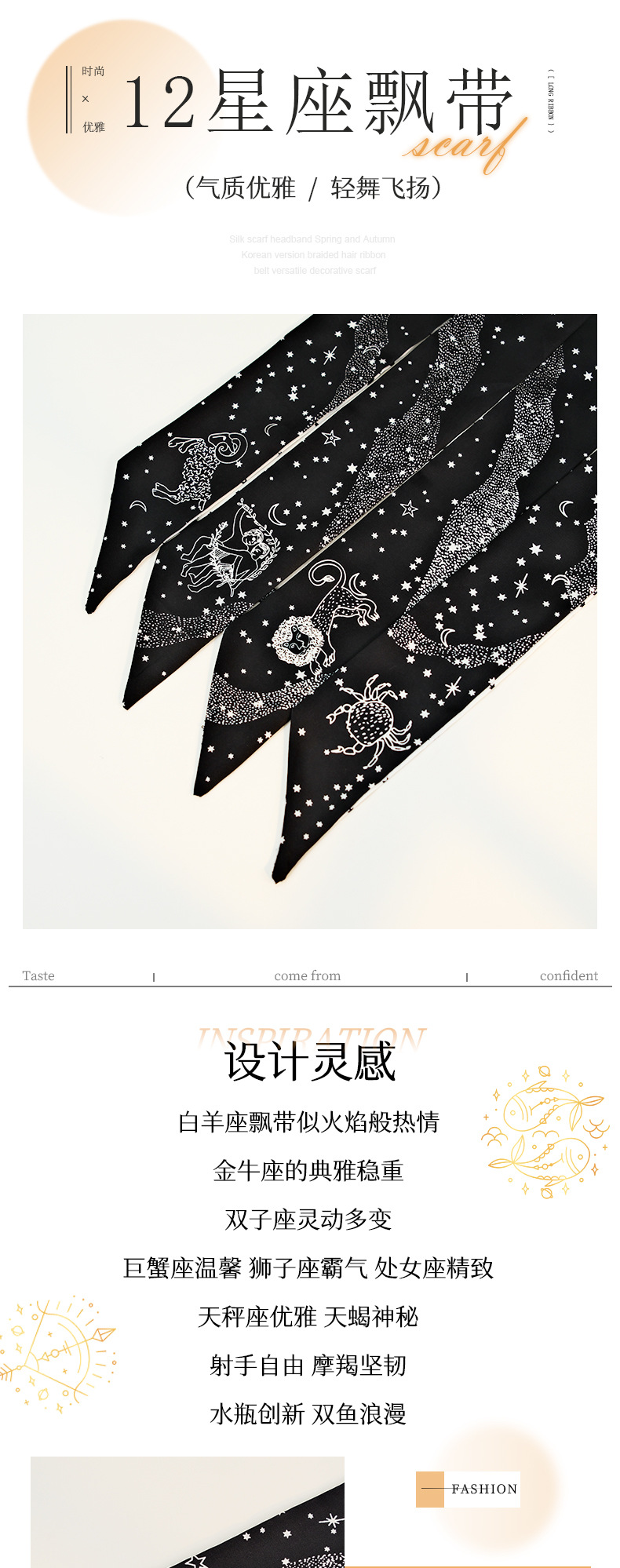 [12 별자리] 작은 리본 봄과 가을 한국 좁은 긴 스카프 스카프 가방 장식 헤어 밴드 손목 밴드 액세서리