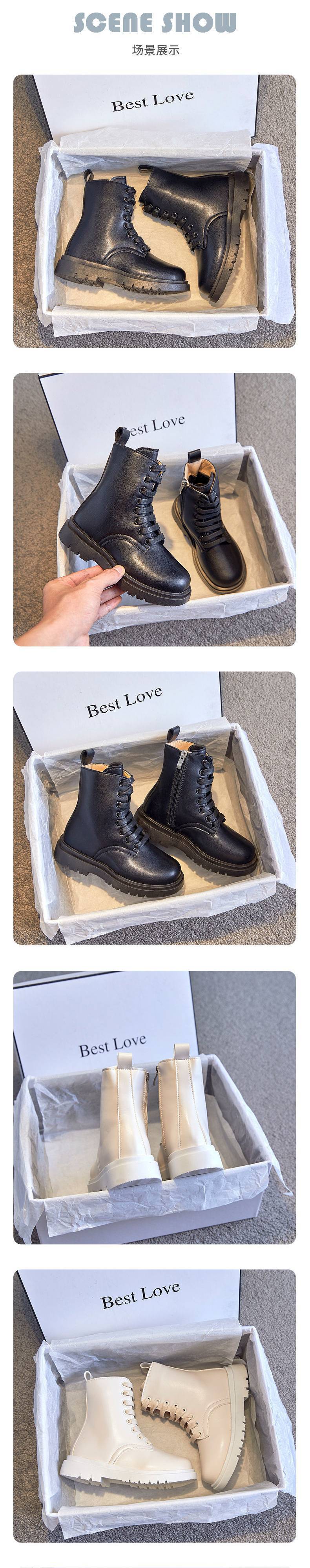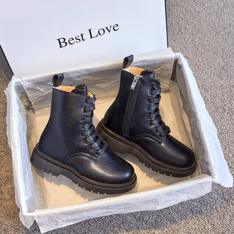 여자 마틴 부츠 폭발성 어린이 부츠 올 매치 웨스턴 스타일 미드 섹션 부츠 하이 탑 기모 가죽 부츠 소프트 하단 겨울 뉴