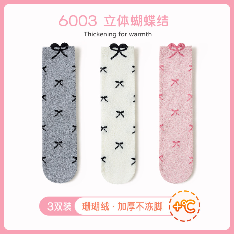 어린이 수면 양말 가을과 겨울 기모 소녀 겨울 두꺼운 긴 활 높은 송아지 따뜻한 산호 양털스토어 가기