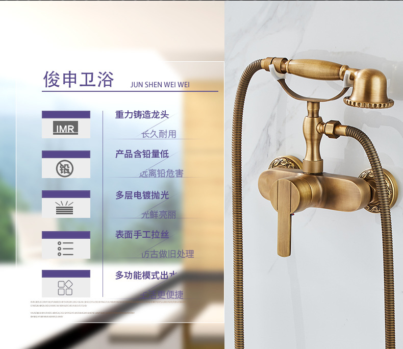 모든 구리 골동품 간단한 샤워 세트 유럽 스타일의 욕실 샤워 샤워 수도꼭지 복고풍 콘센트 샤워스토어 가기