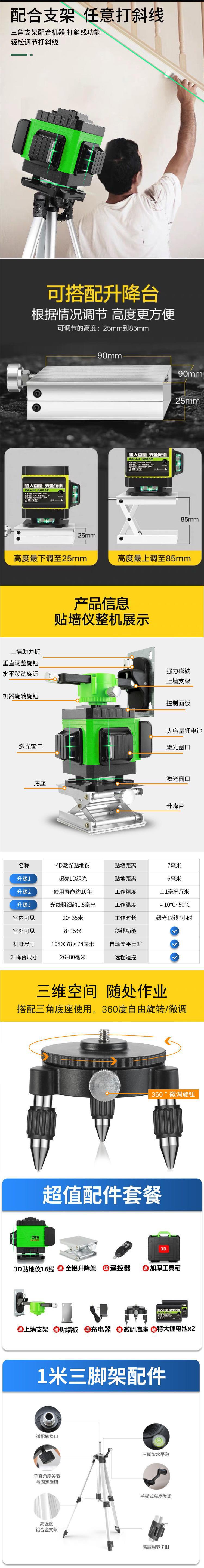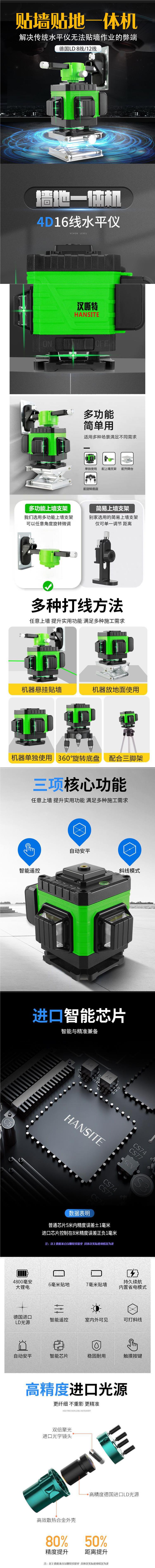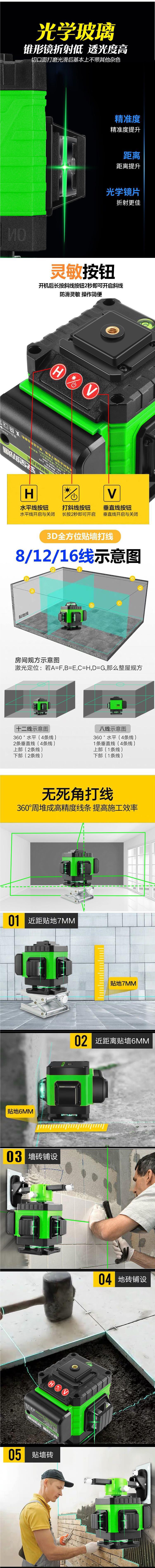 적외선 레벨 녹색 빛 8 라인 12 라인 16 라인 레이저 3D 벽 붙여 넣기 미터 고정밀 지상 붙여 넣기 미터 벽 및 지상 이중 목적스토어 가기
