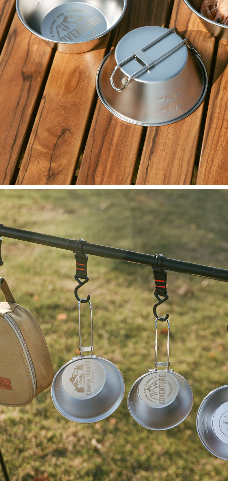 야외 스노우 보울 캠핑 휴대용 식기 접이식 스테인레스 스틸 그릇 식기 세트 피크닉 용품스토어 가기