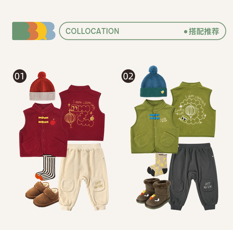 남성과 여성을위한 BBQB 어린이 조끼 새해 따뜻한 조끼 코트 가을과 겨울 정전기 방지 조끼 양털 코트