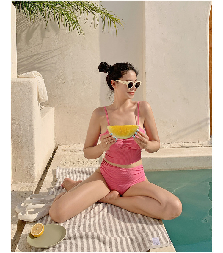 일본과 한국 비키니 패션 심플 뉴 여성 스플릿 솔리드 컬러 비키니 섹시 슬리밍 스파 홀리데이 수영복스토어 가기