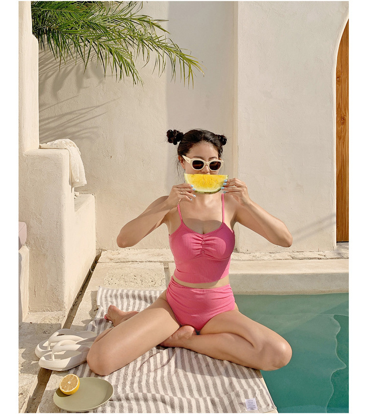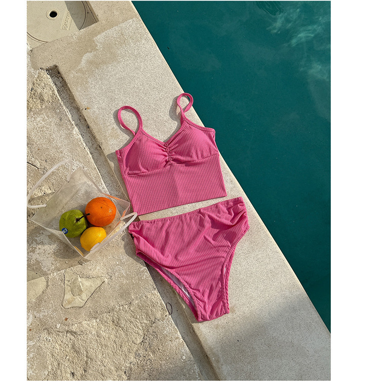 일본과 한국 비키니 패션 심플 뉴 여성 스플릿 솔리드 컬러 비키니 섹시 슬리밍 스파 홀리데이 수영복