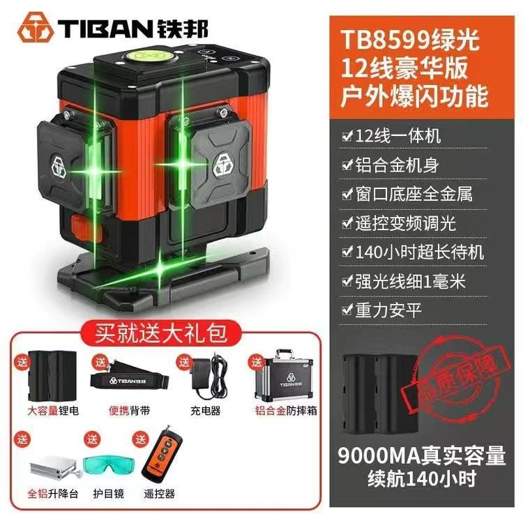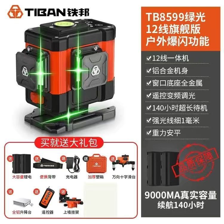 수입 티방 8599 레벨 울트라 브라이트 12 라인 그린 라이트 미세 라인 스티커 벽 및 바닥 타일 레드 레이저 적외선