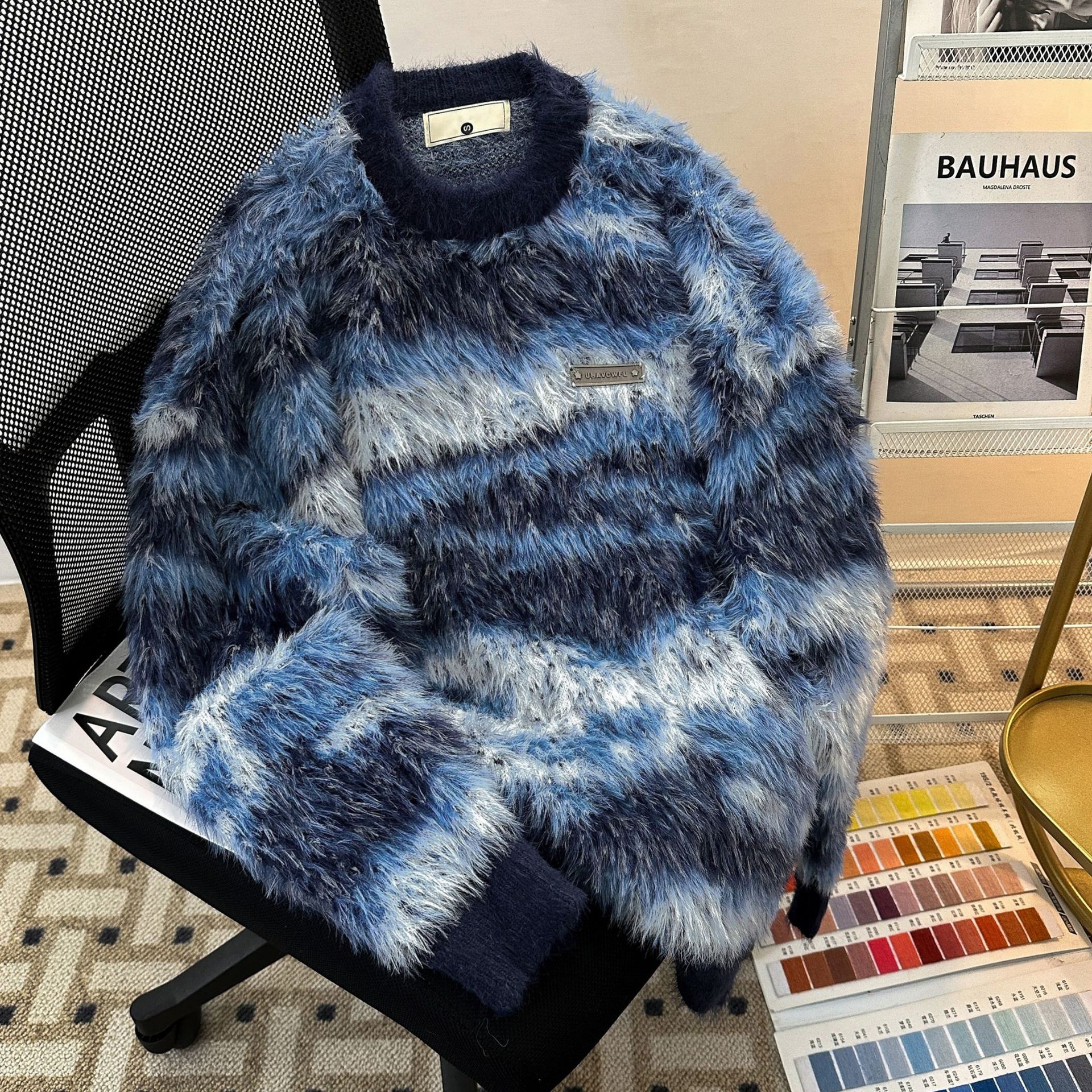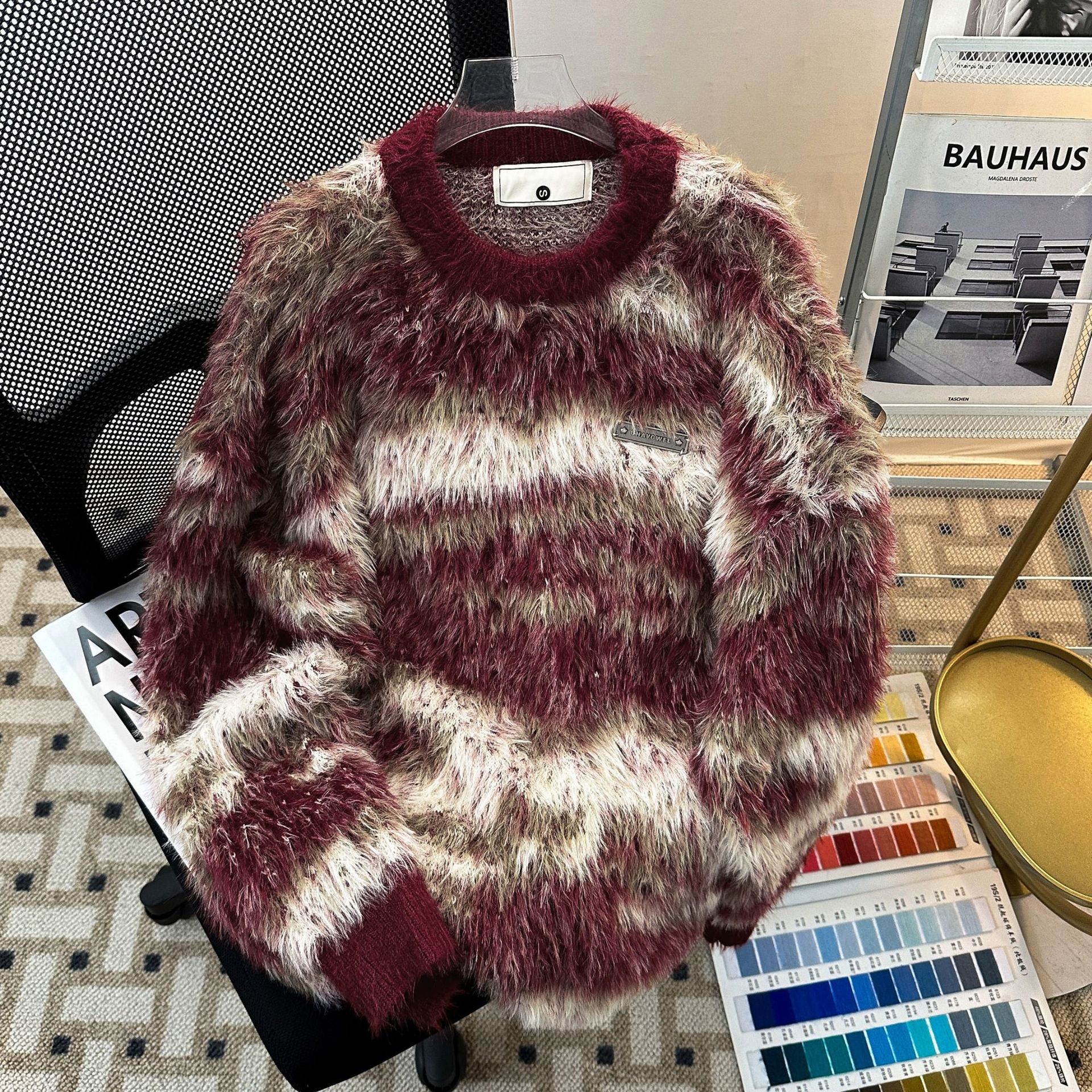 아메리칸 스타일 가을과 겨울 새로운 게으른 스타일 복고풍 모방 밍크 헤어 크루 넥 스웨터 남성용 트렌디 한 브랜드 디자인 센스 니트 커플 재킷스토어 가기