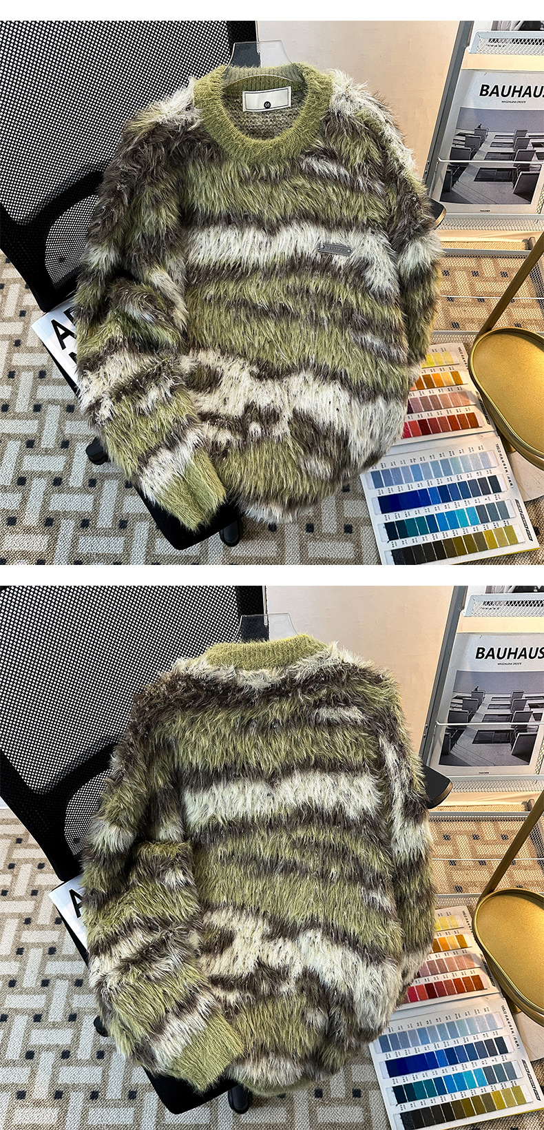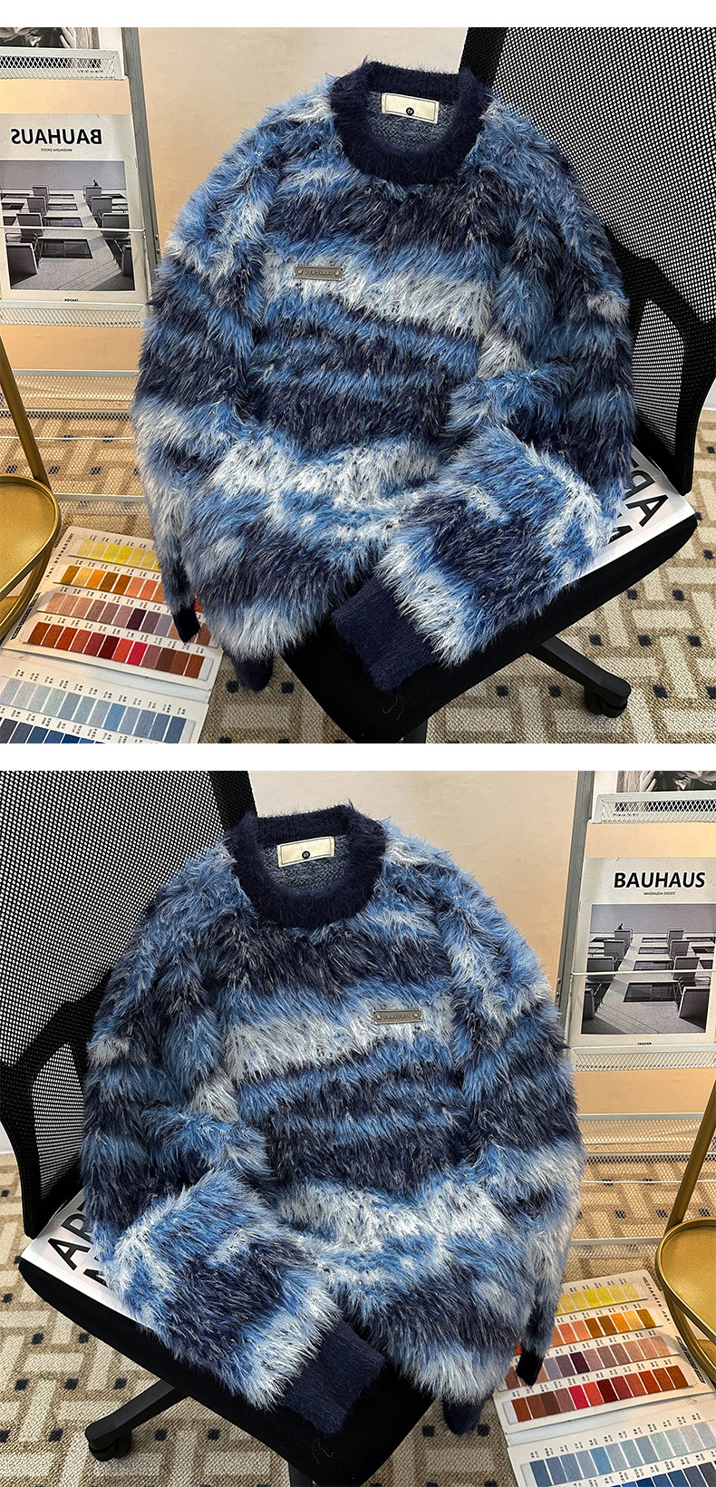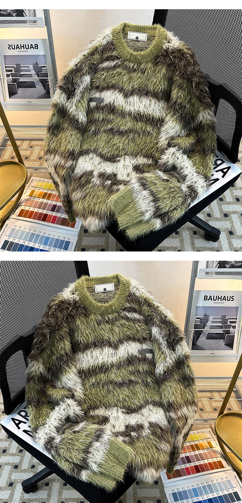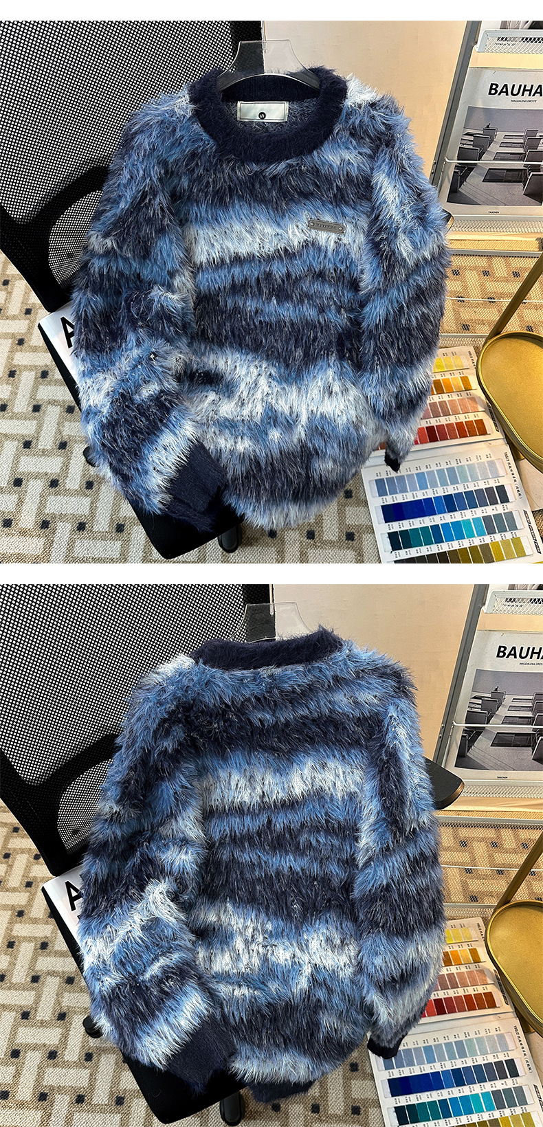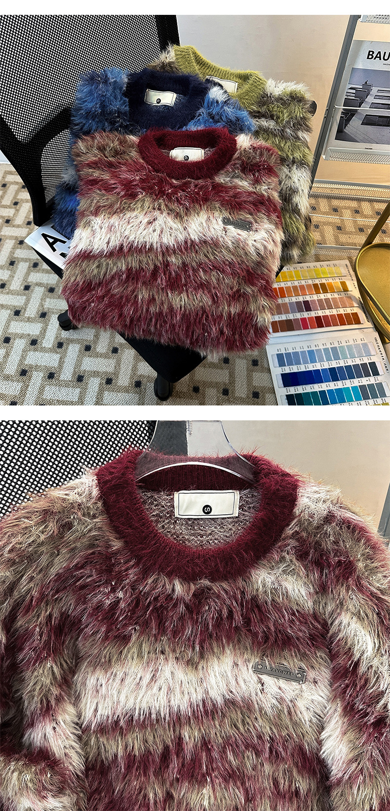 아메리칸 스타일 가을과 겨울 새로운 게으른 스타일 복고풍 모방 밍크 헤어 크루 넥 스웨터 남성용 트렌디 한 브랜드 디자인 센스 니트 커플 재킷
