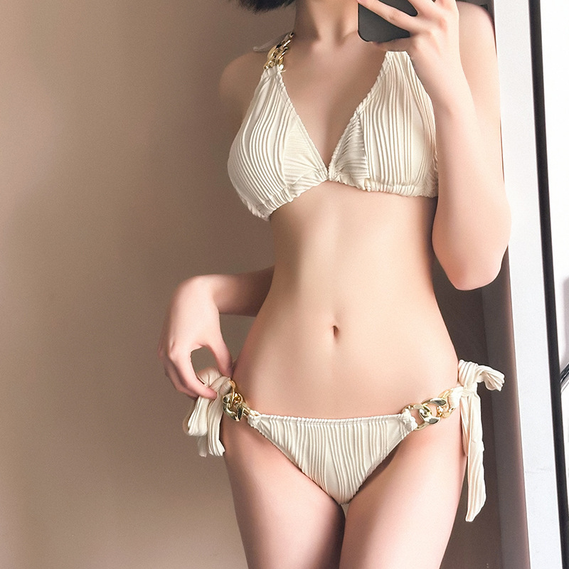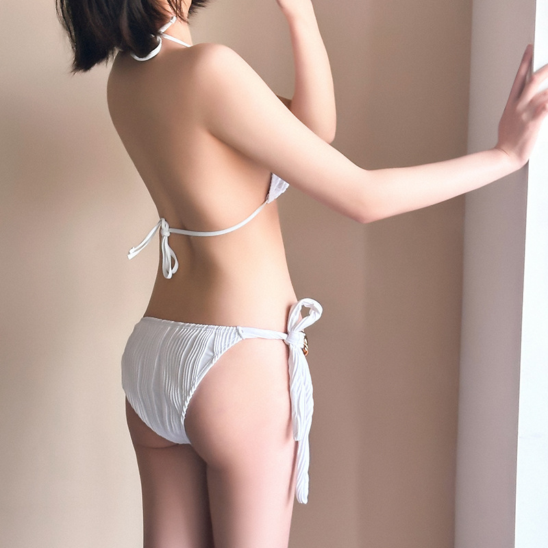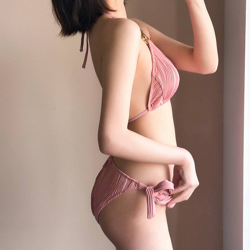 2024 새로운 무지개 색 3 점 비키니 타이 섹시한 뜨거운 소녀 낮은 허리 단색 큰 가슴 등이없는 수영 세트