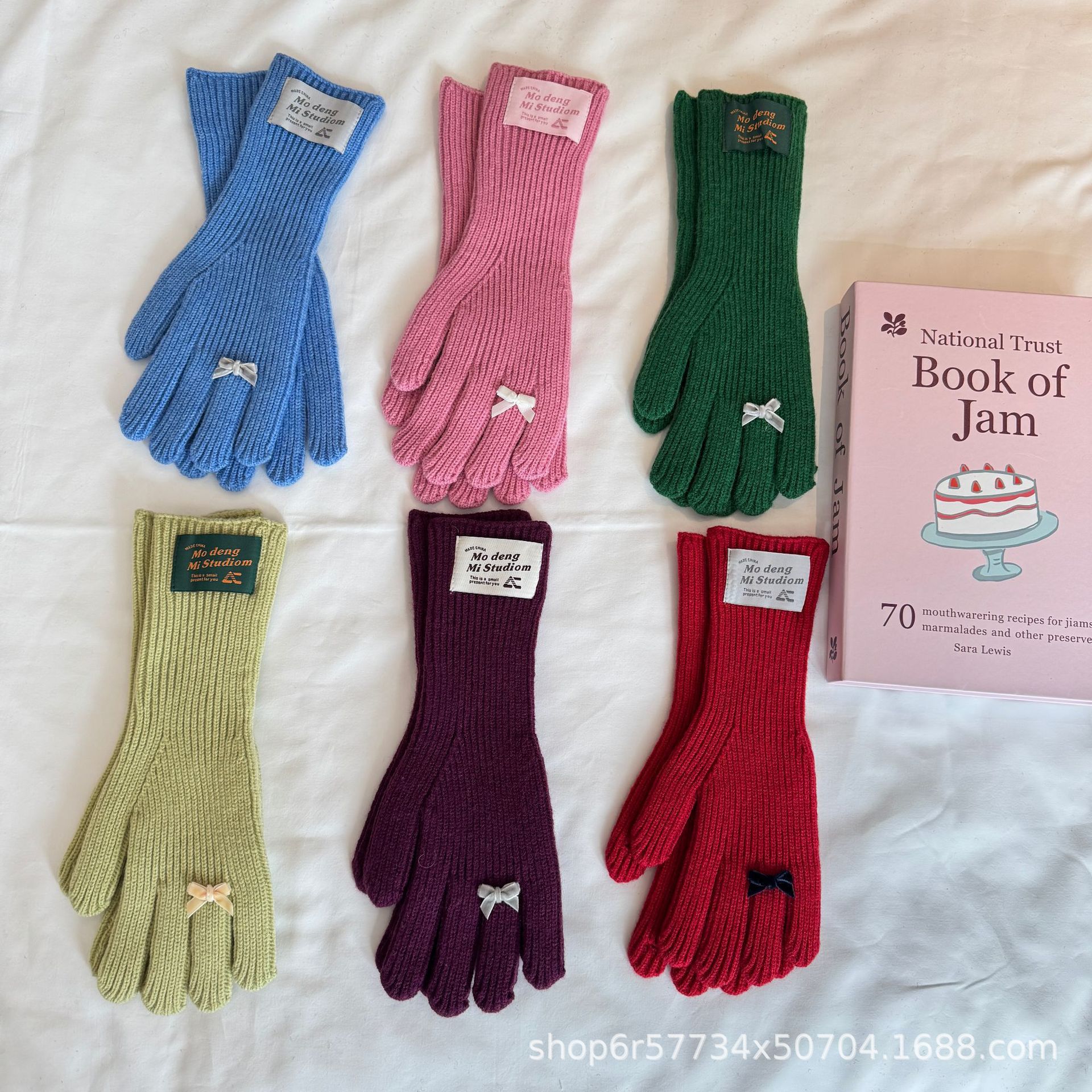 양모 니트 활 장갑으로 여학생 귀여운 한국 단색 가을과 겨울 승마 따뜻한 터치 스크린