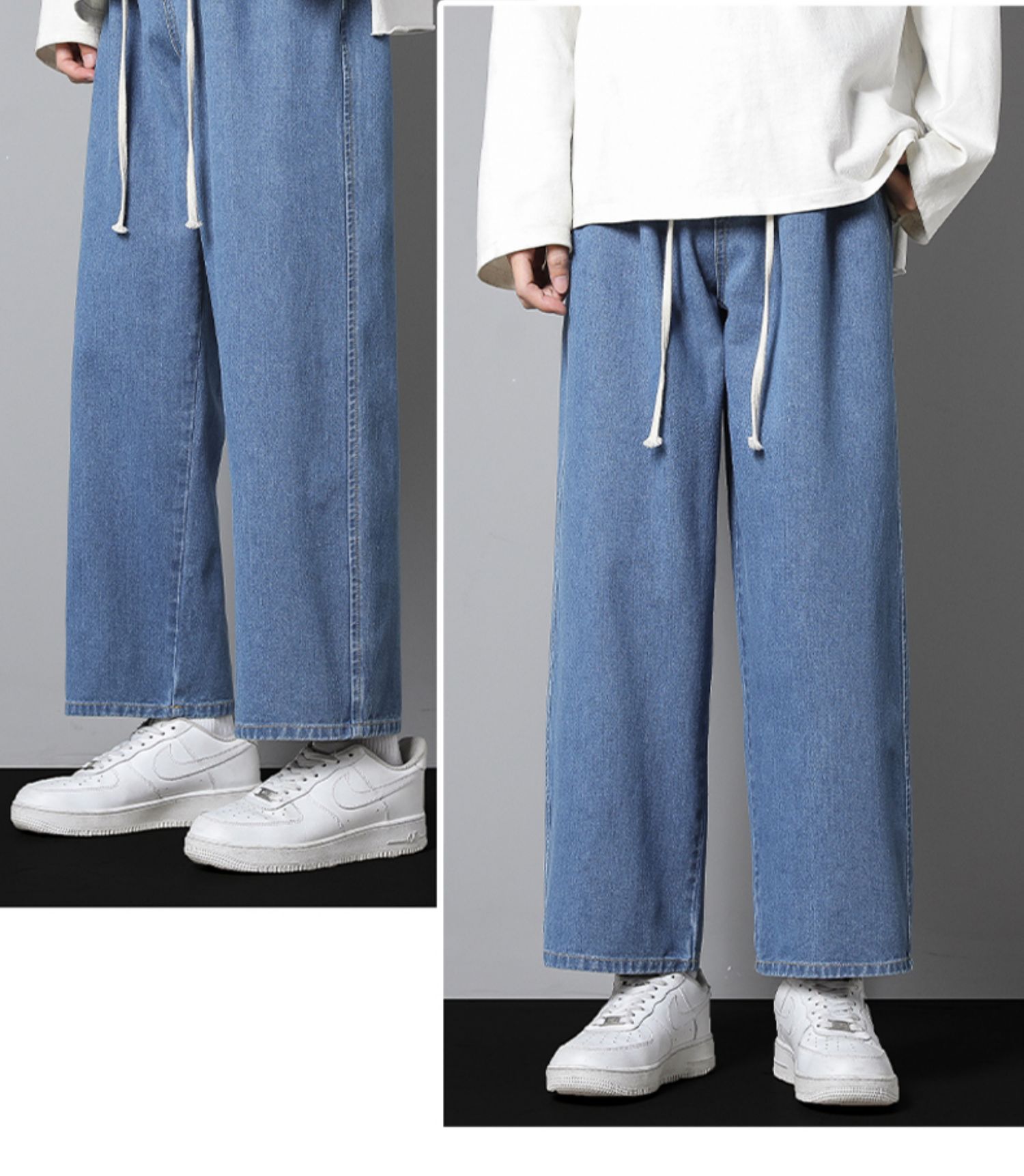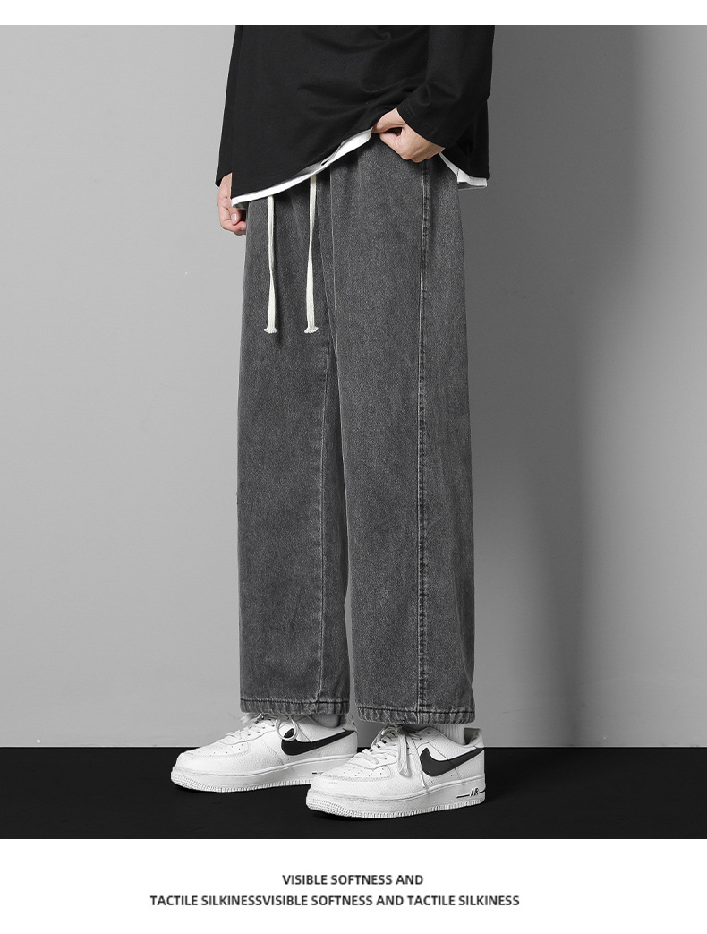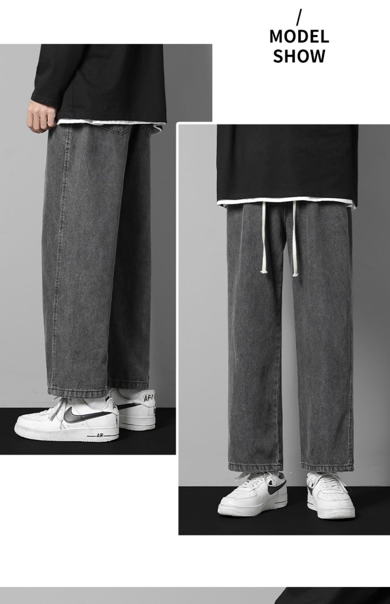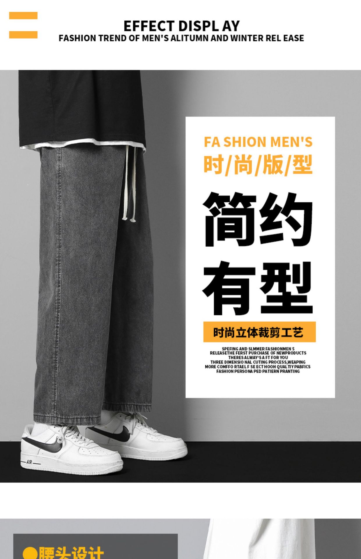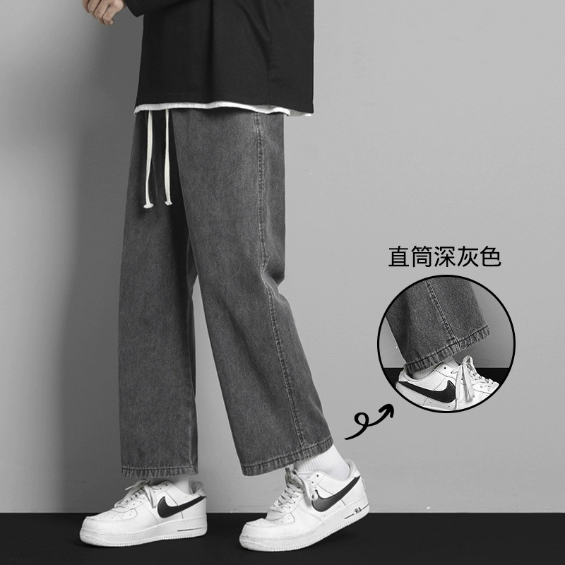 청바지 남성 봄과 가을 넓은 팔꿈치 허리 끈 캐주얼 와이드 다리 바지 유행 브랜드 미국 스타일 하이 스트리트 작업 바지스토어 가기