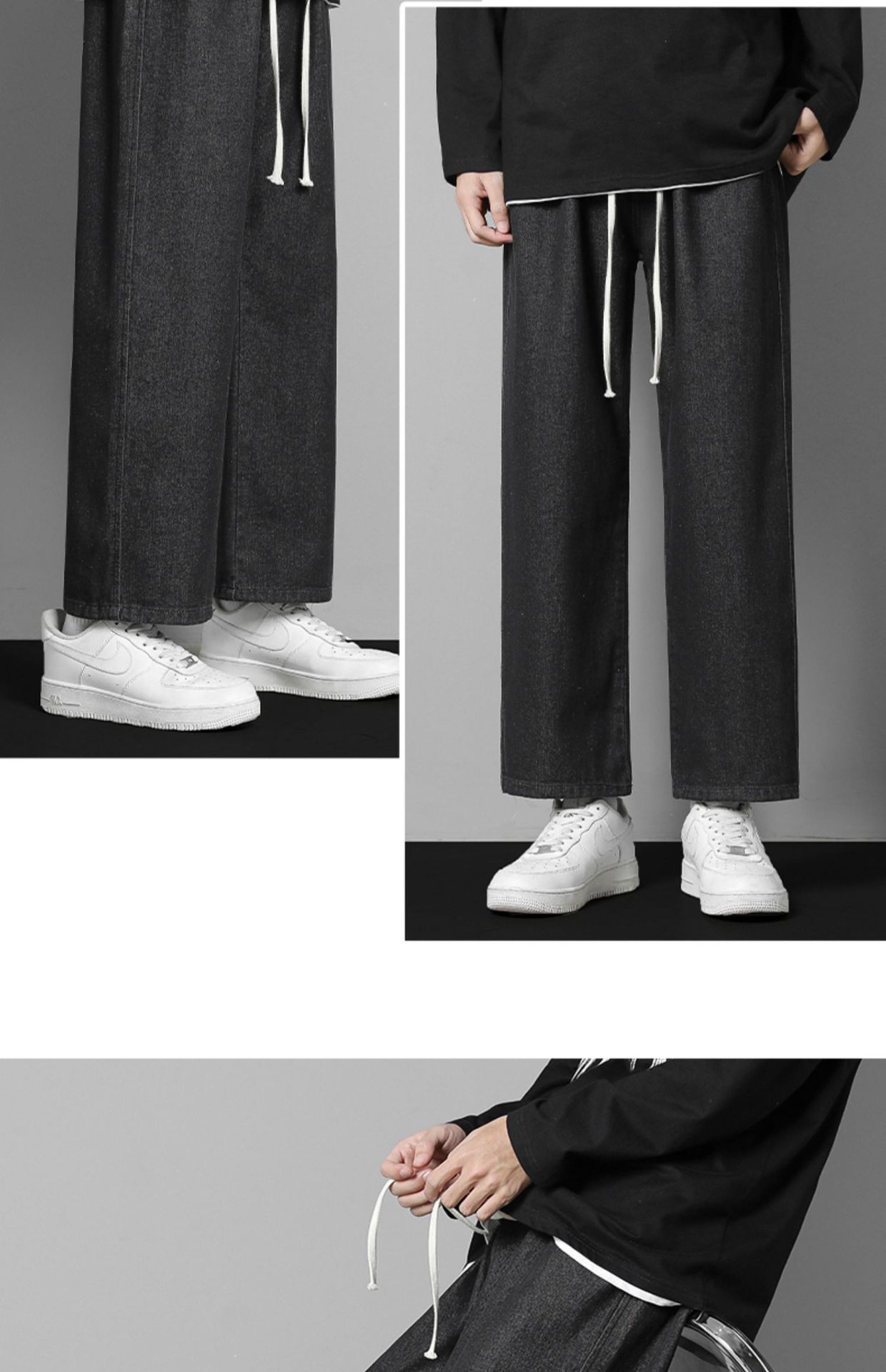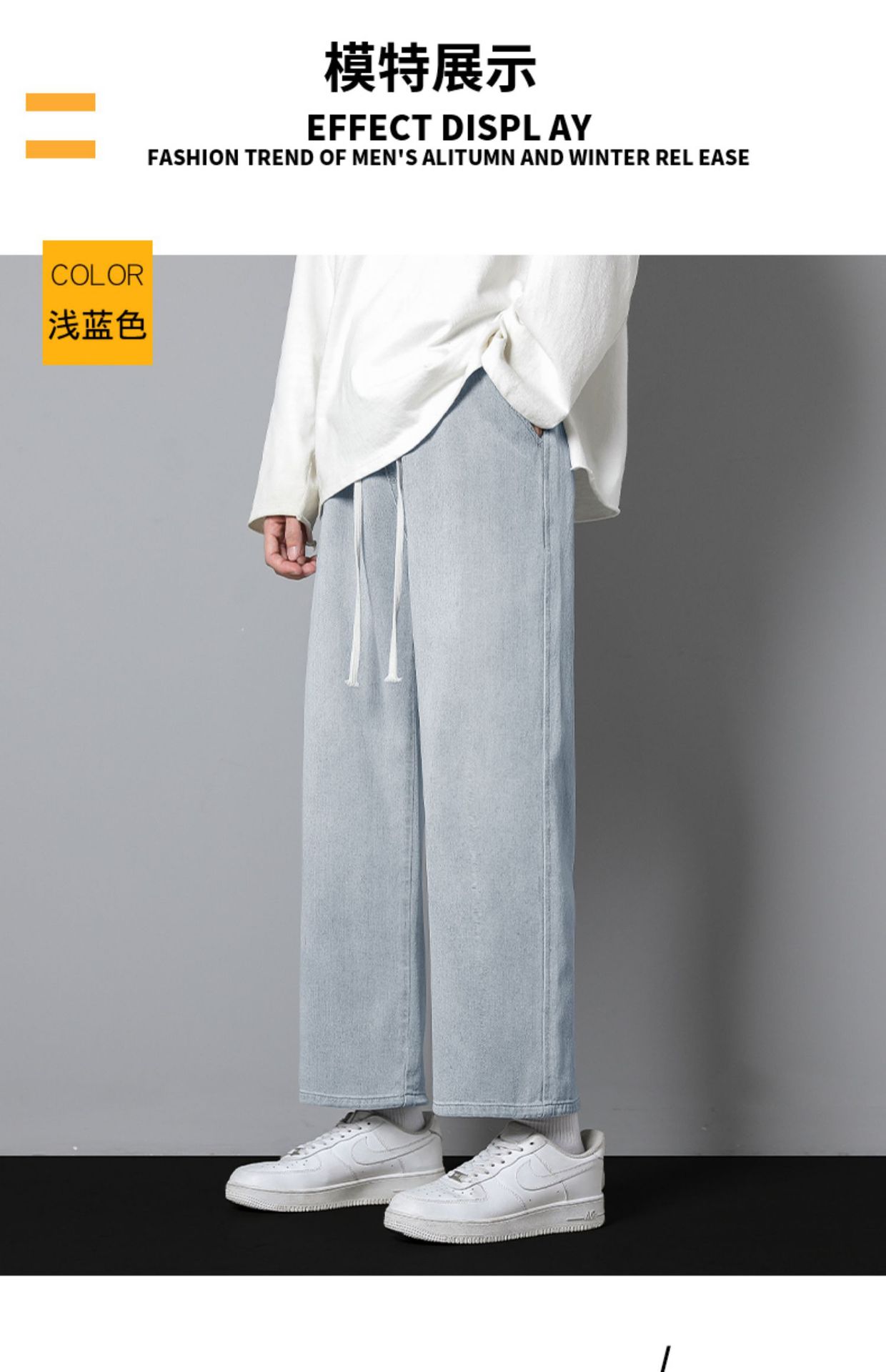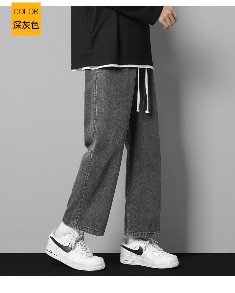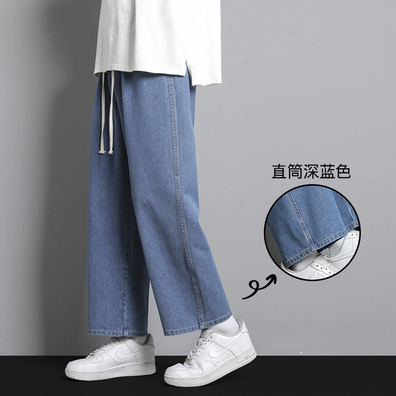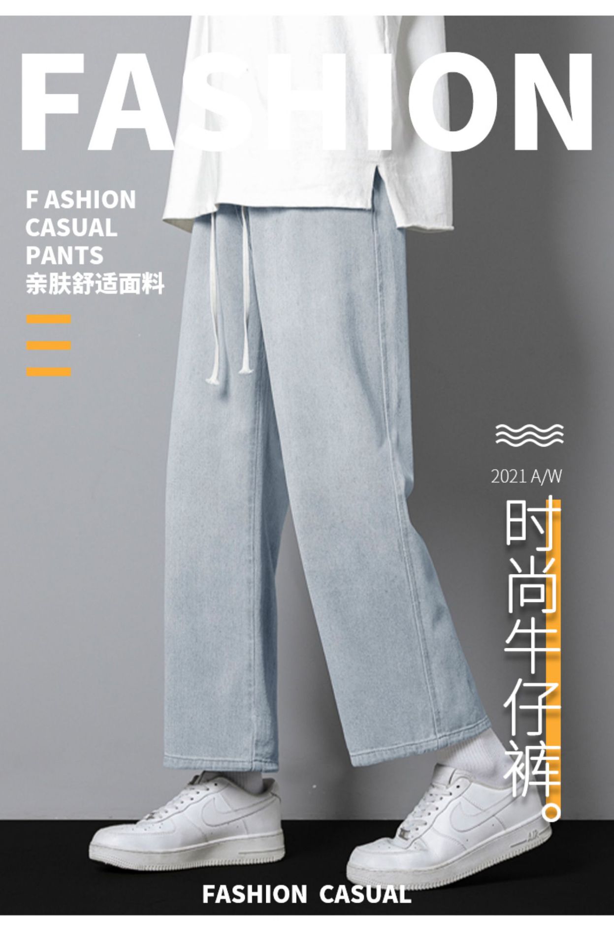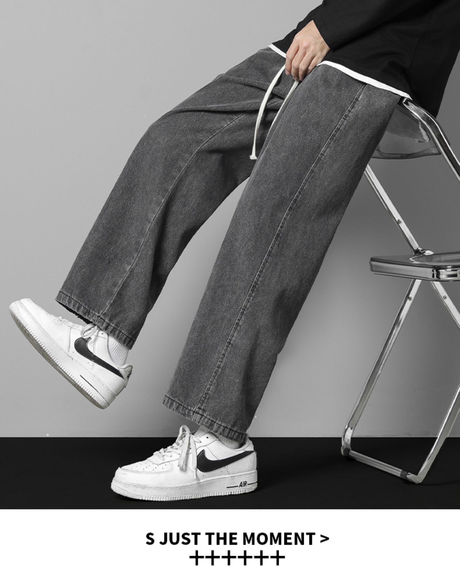 청바지 남성 봄과 가을 넓은 팔꿈치 허리 끈 캐주얼 와이드 다리 바지 유행 브랜드 미국 스타일 하이 스트리트 작업 바지스토어 가기