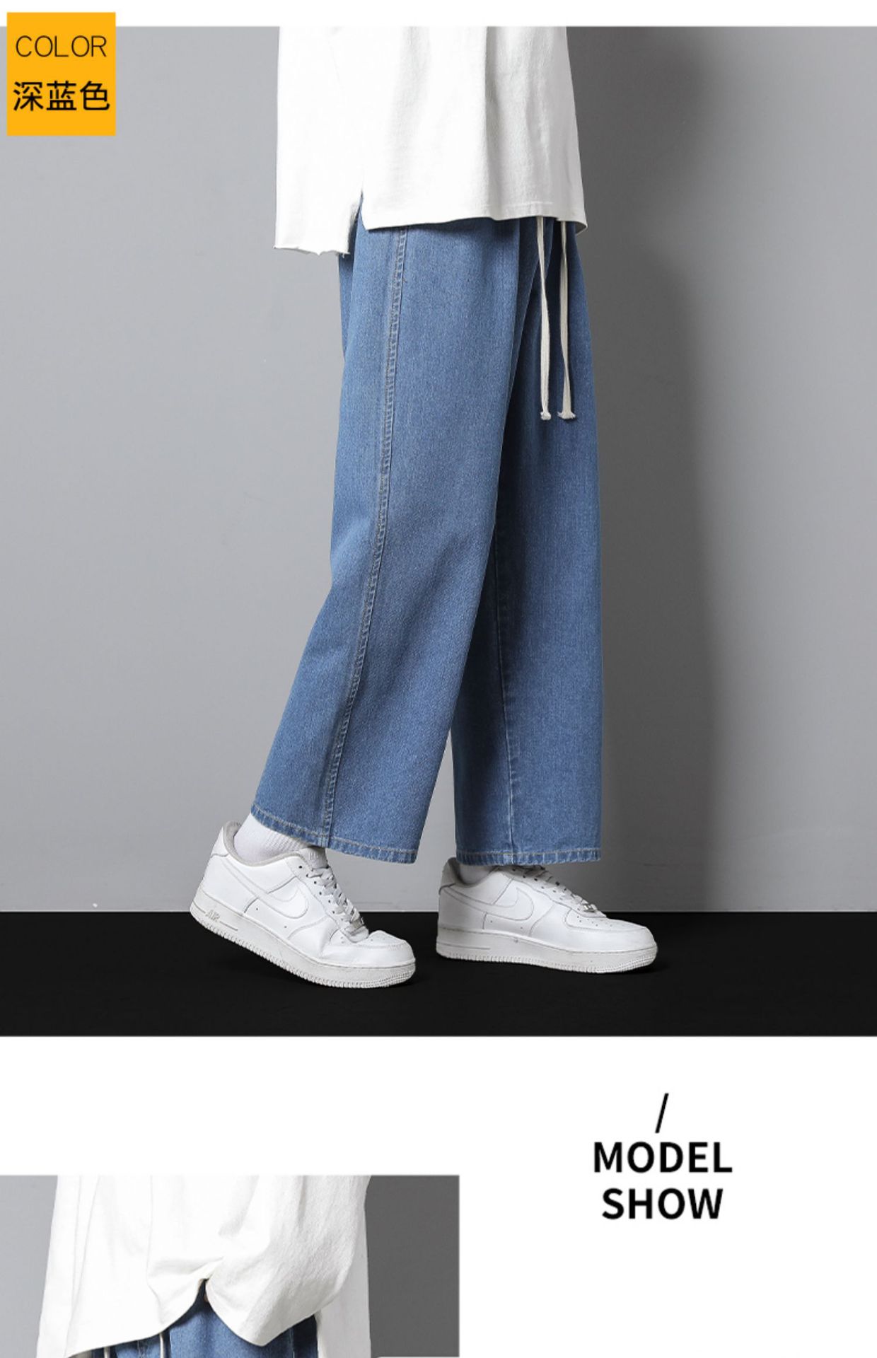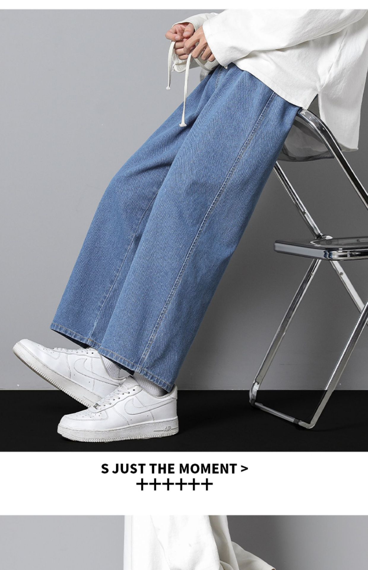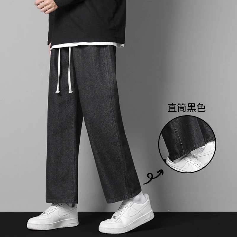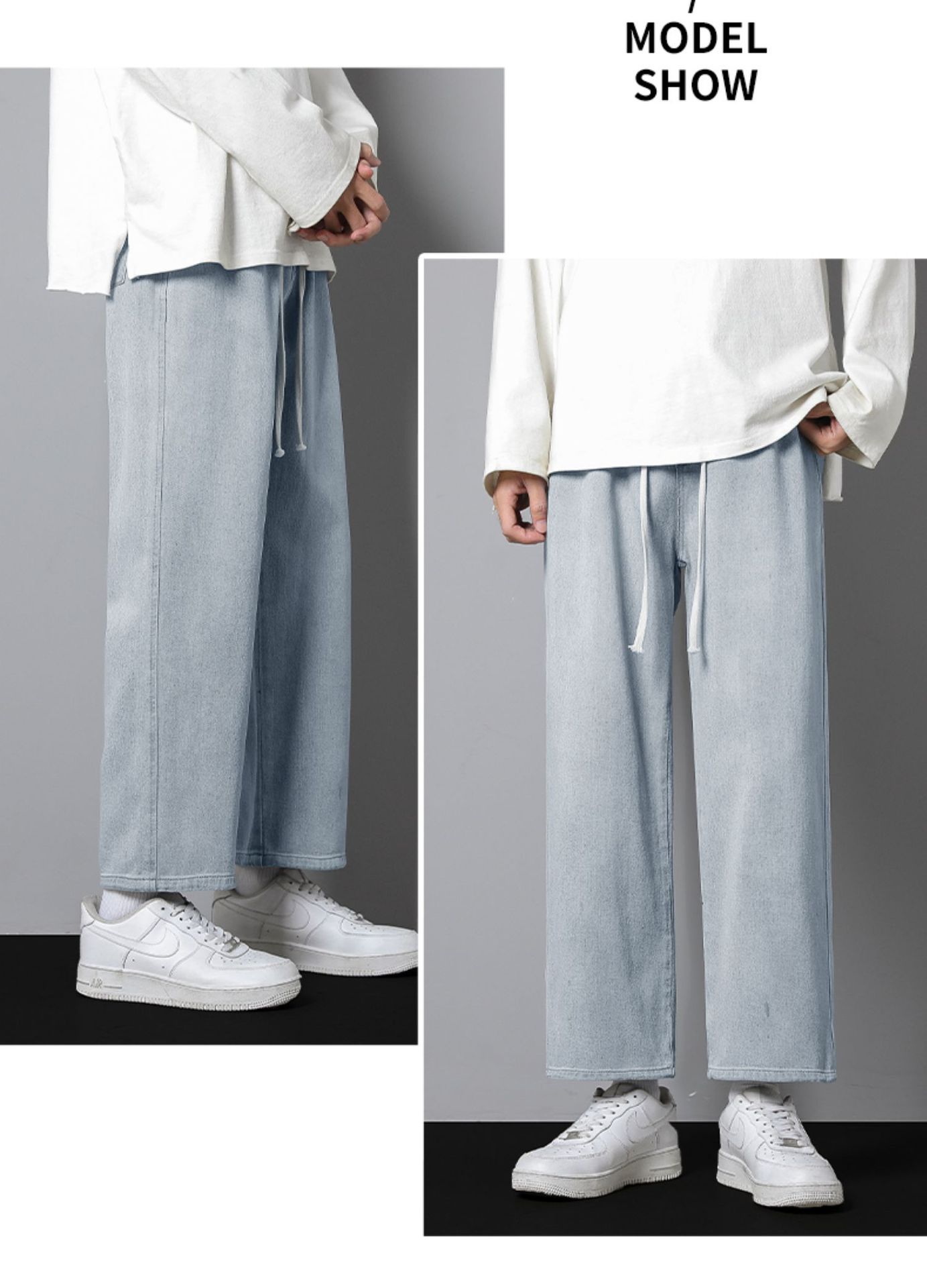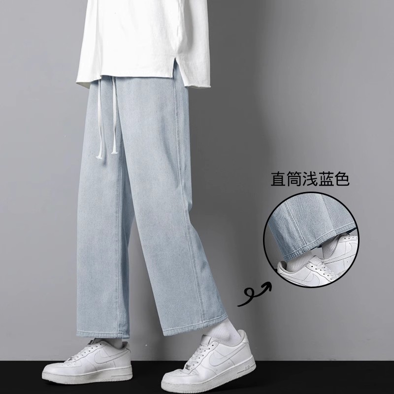 청바지 남성 봄과 가을 넓은 팔꿈치 허리 끈 캐주얼 와이드 다리 바지 유행 브랜드 미국 스타일 하이 스트리트 작업 바지스토어 가기