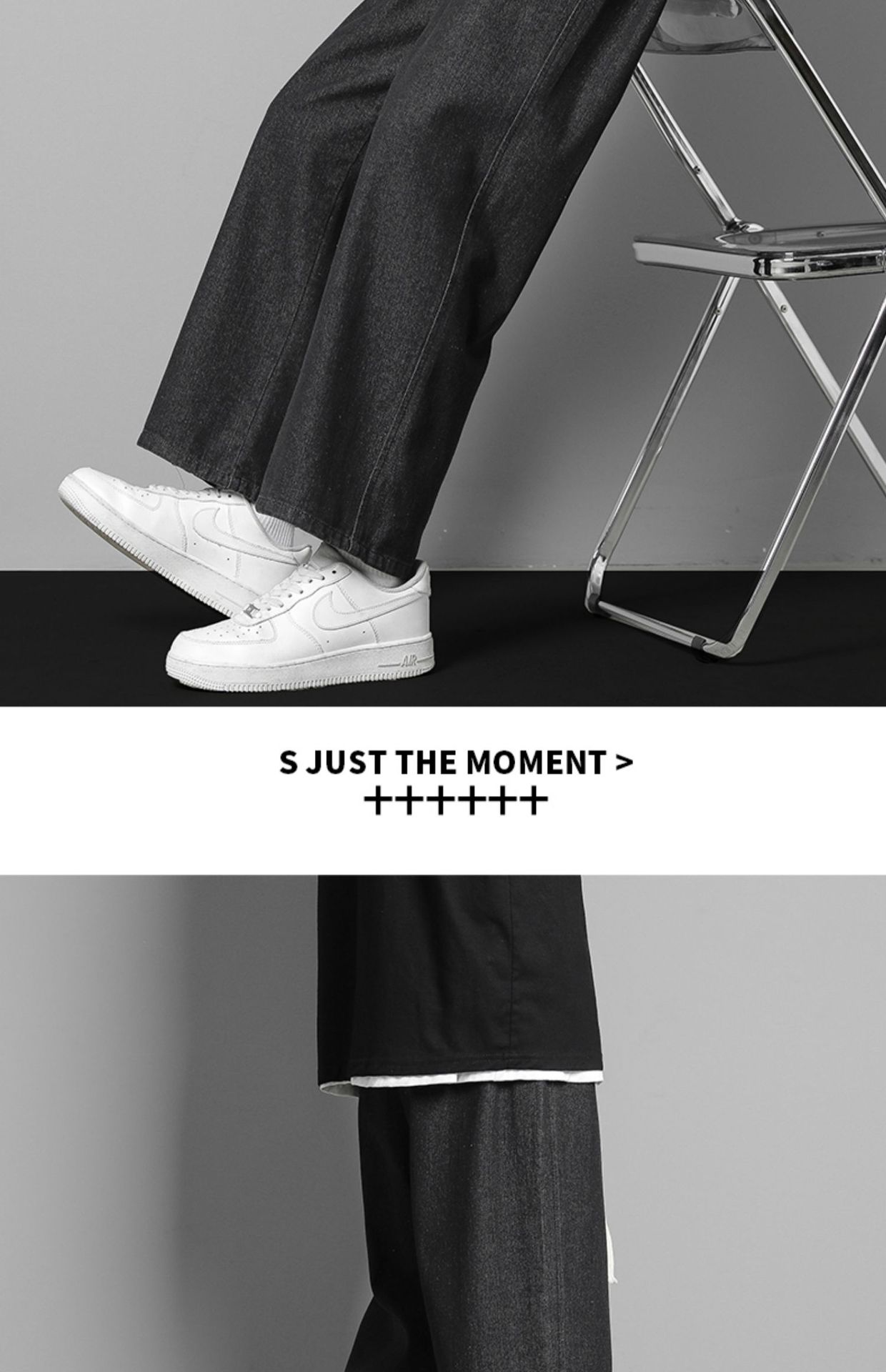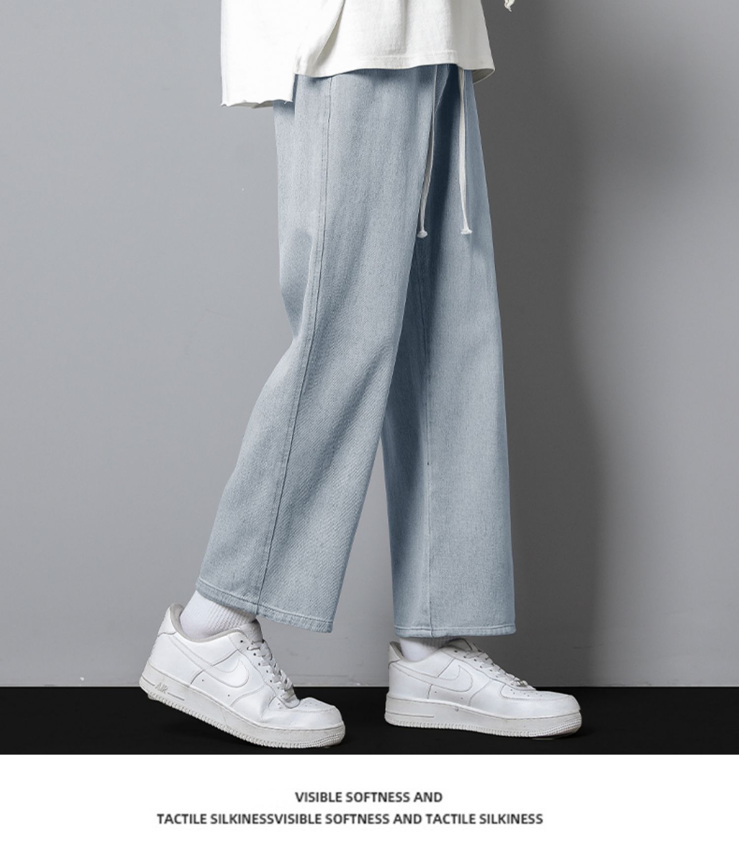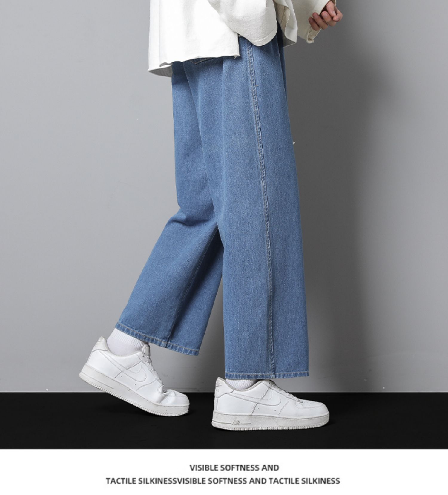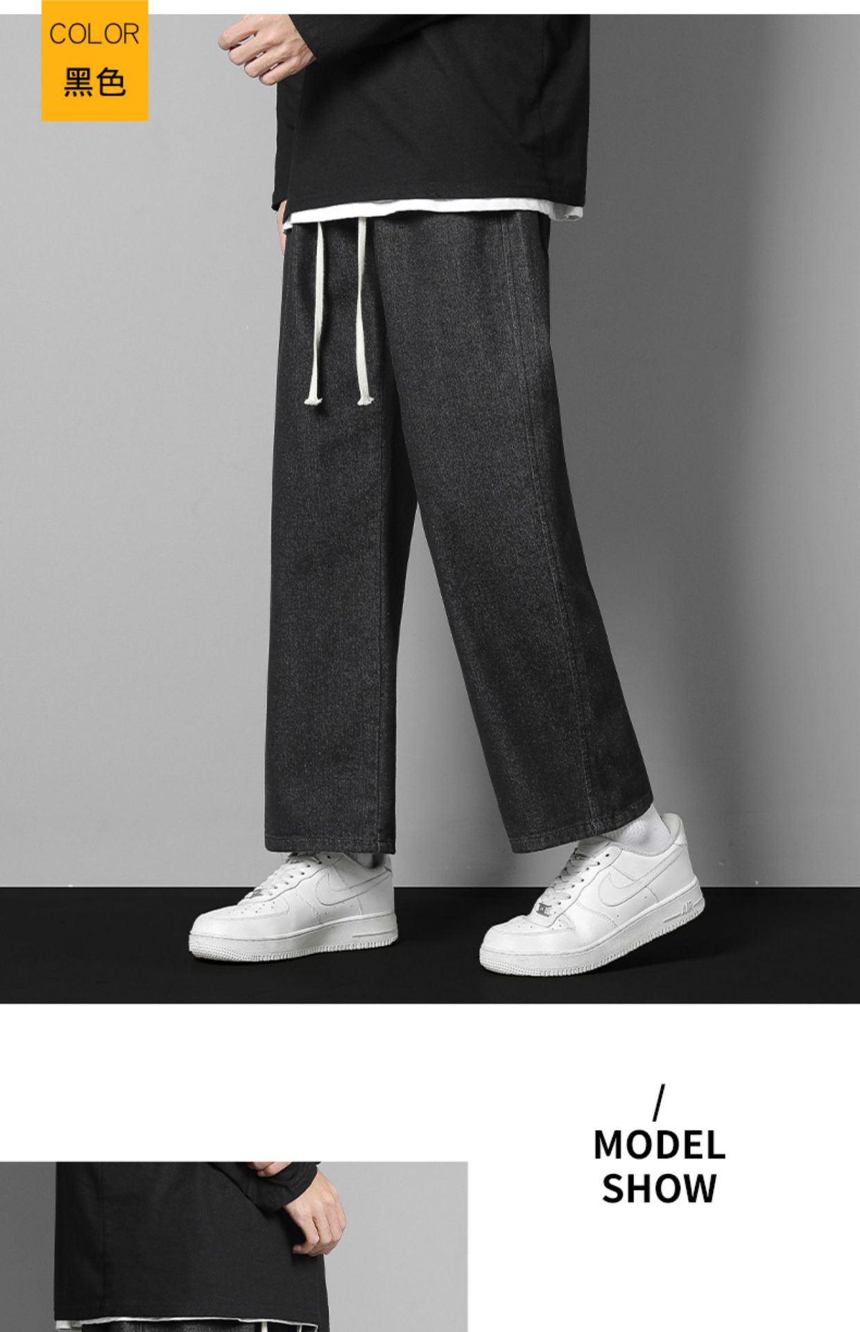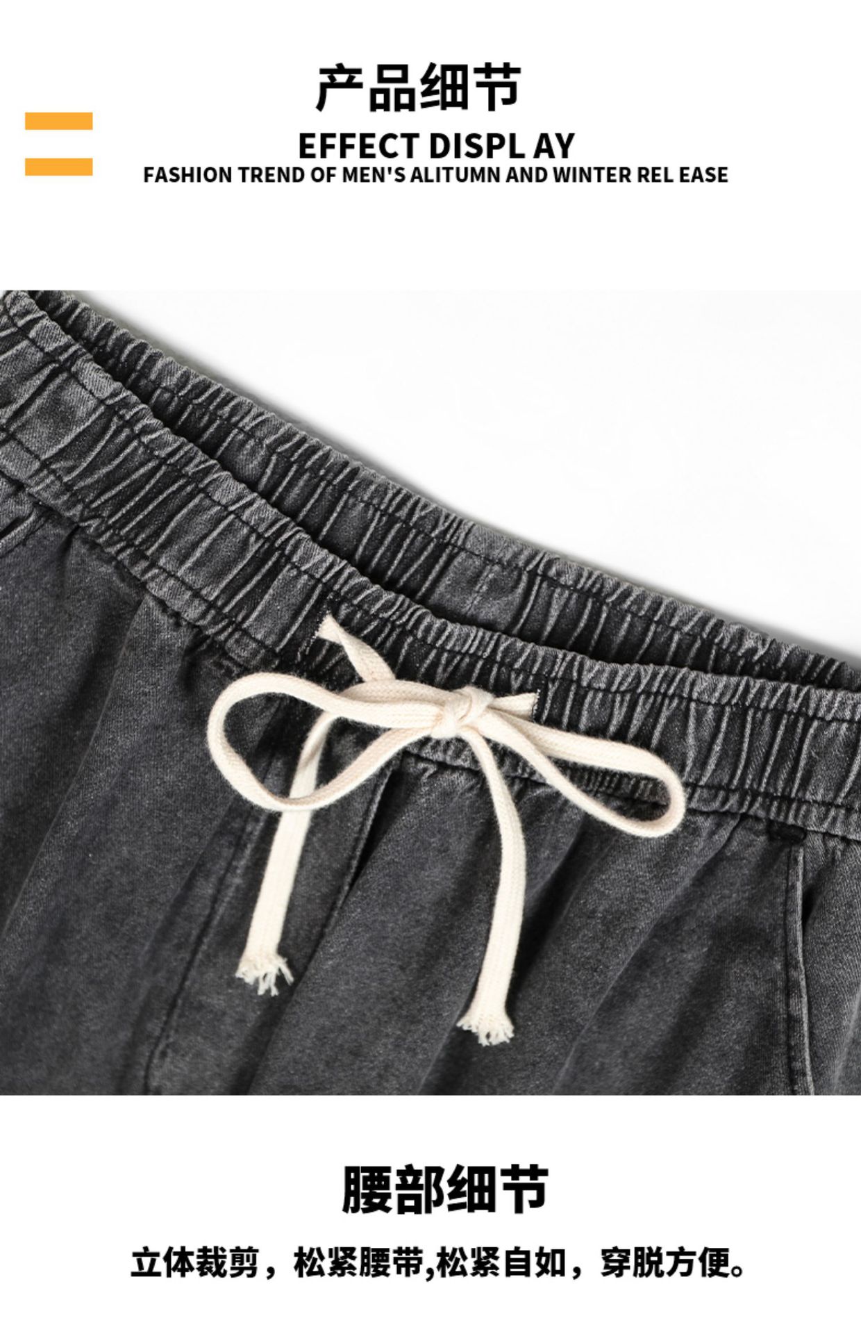 청바지 남성 봄과 가을 넓은 팔꿈치 허리 끈 캐주얼 와이드 다리 바지 유행 브랜드 미국 스타일 하이 스트리트 작업 바지스토어 가기