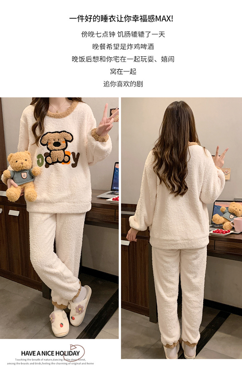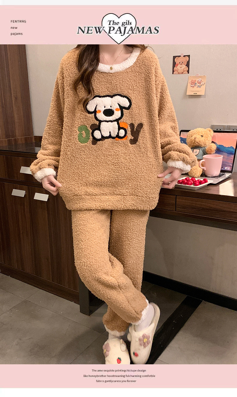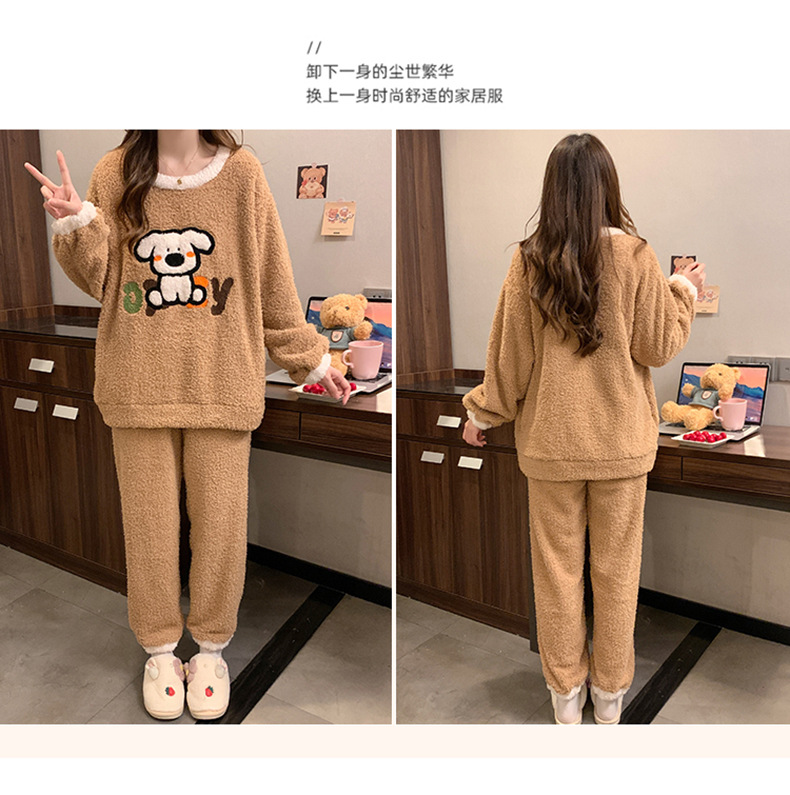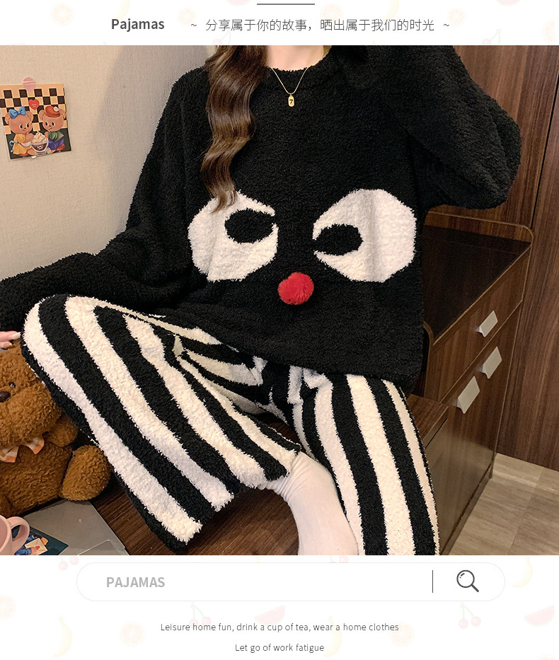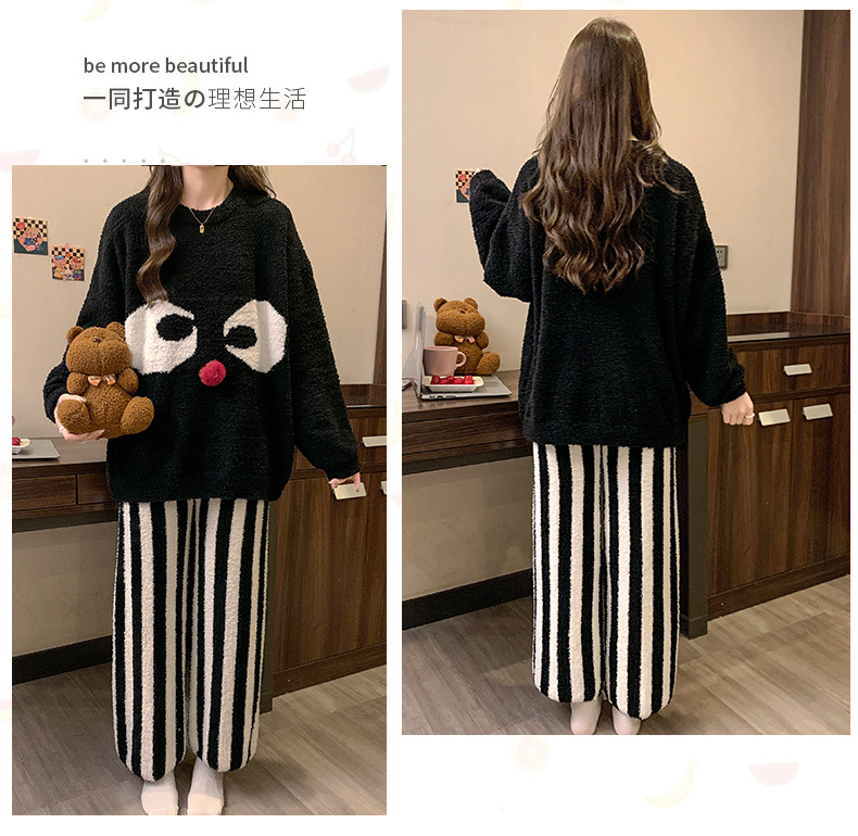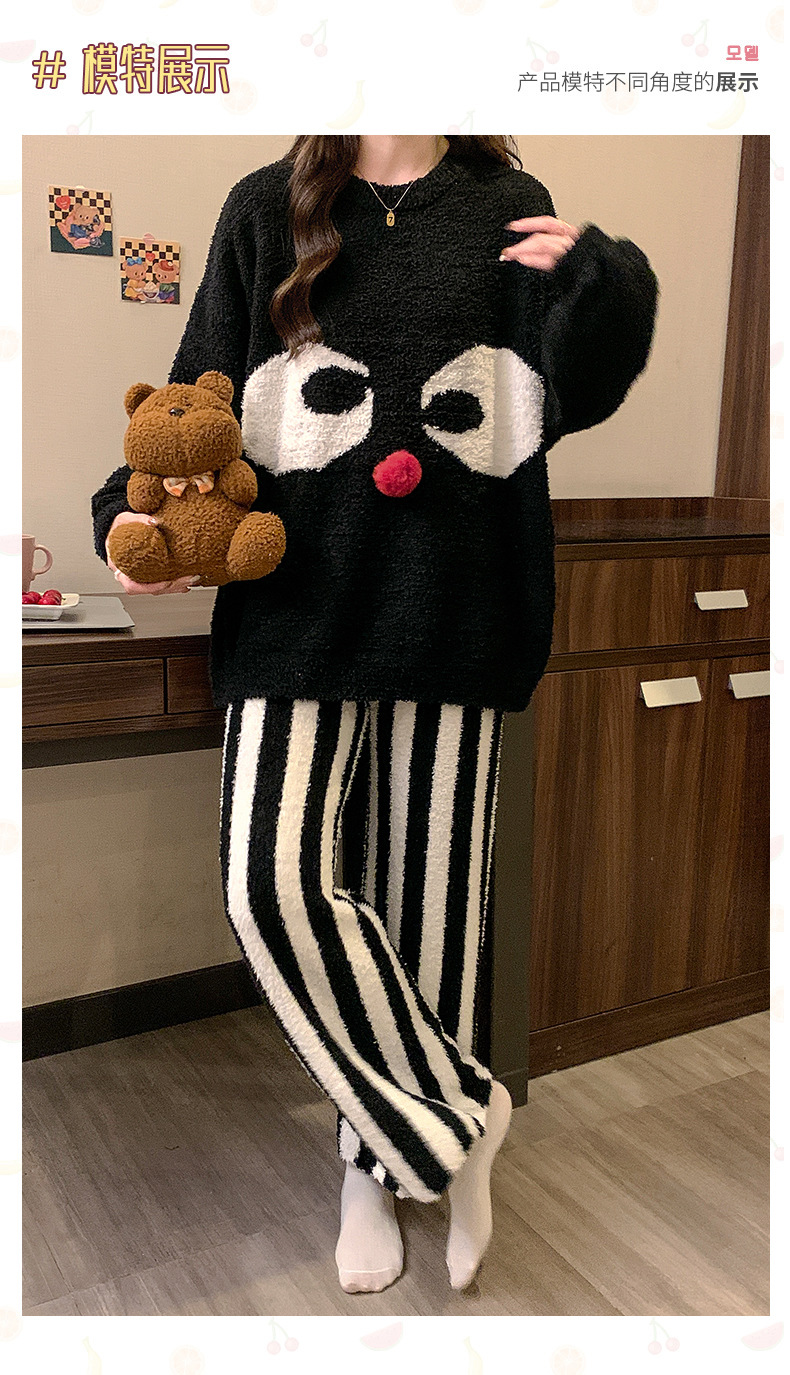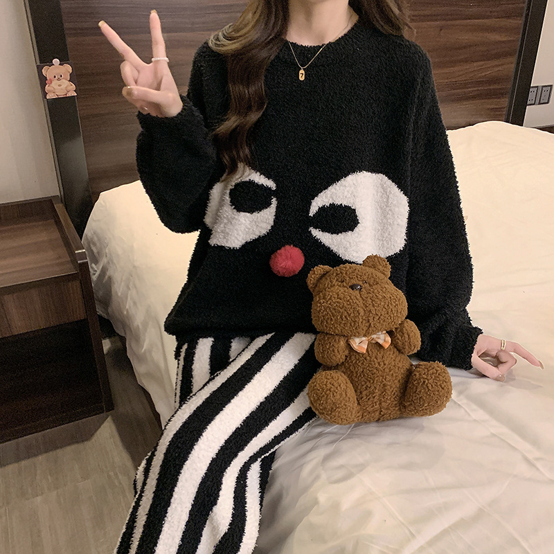 겨울 새 도착 파자마 여성 반쪽 벨벳 귀여운 만화 둥근 목 캐주얼 느슨한 한국 스타일 소녀의 집 옷스토어 가기