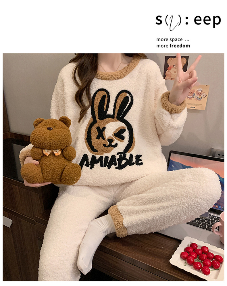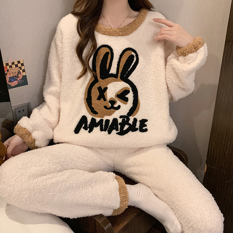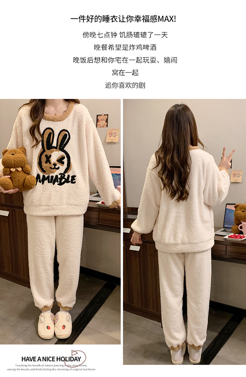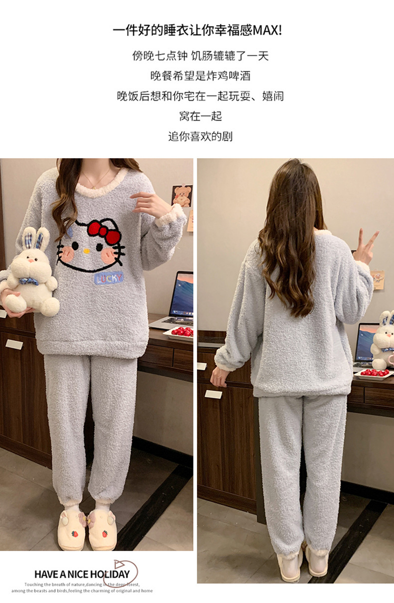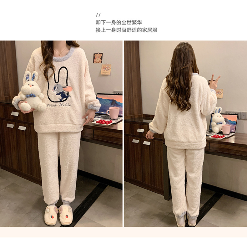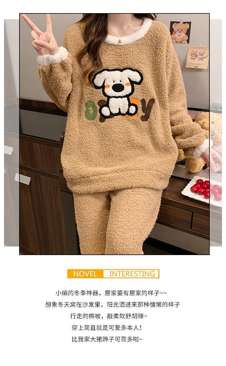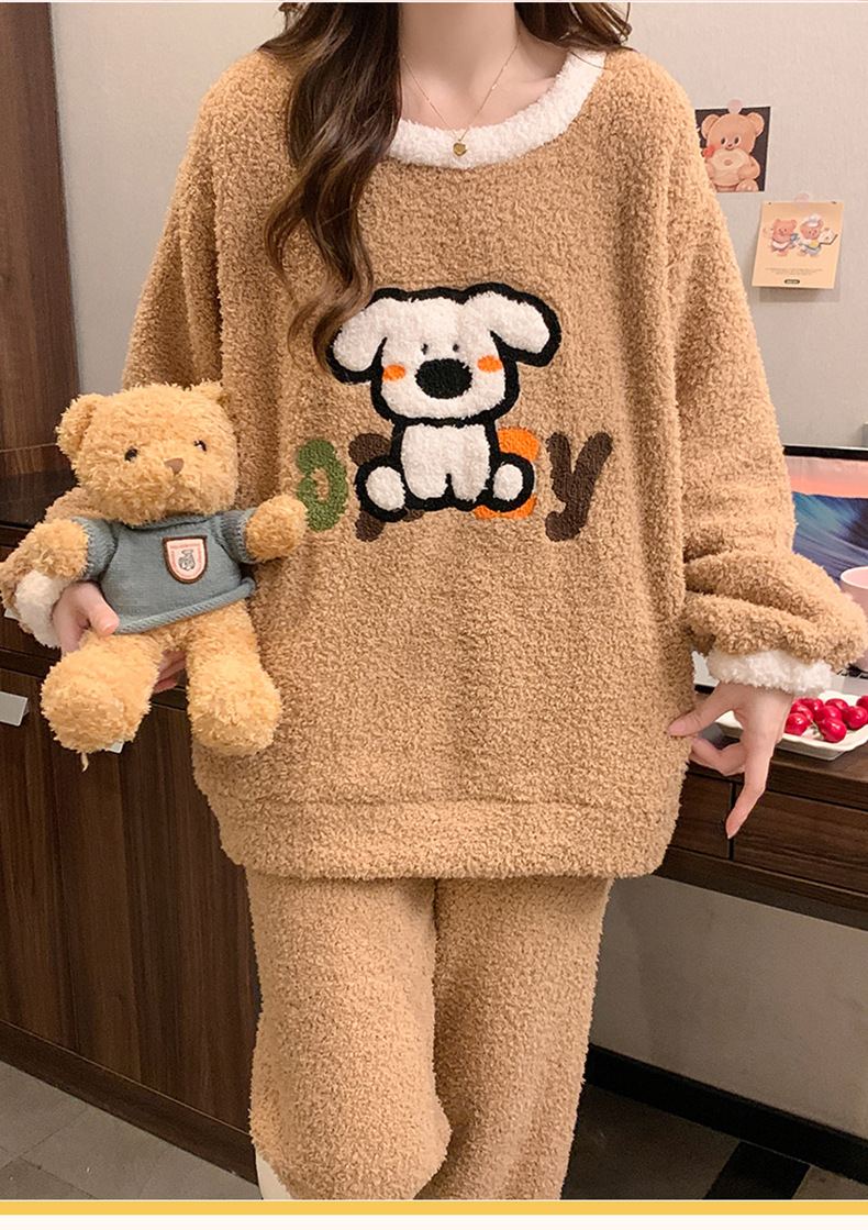 겨울 새 도착 파자마 여성 반쪽 벨벳 귀여운 만화 둥근 목 캐주얼 느슨한 한국 스타일 소녀의 집 옷스토어 가기