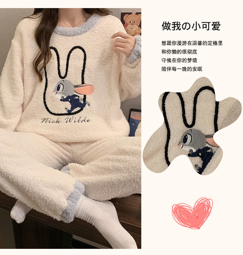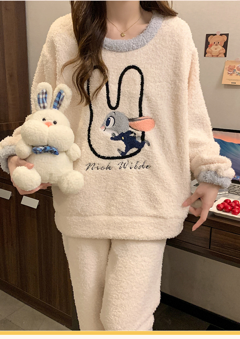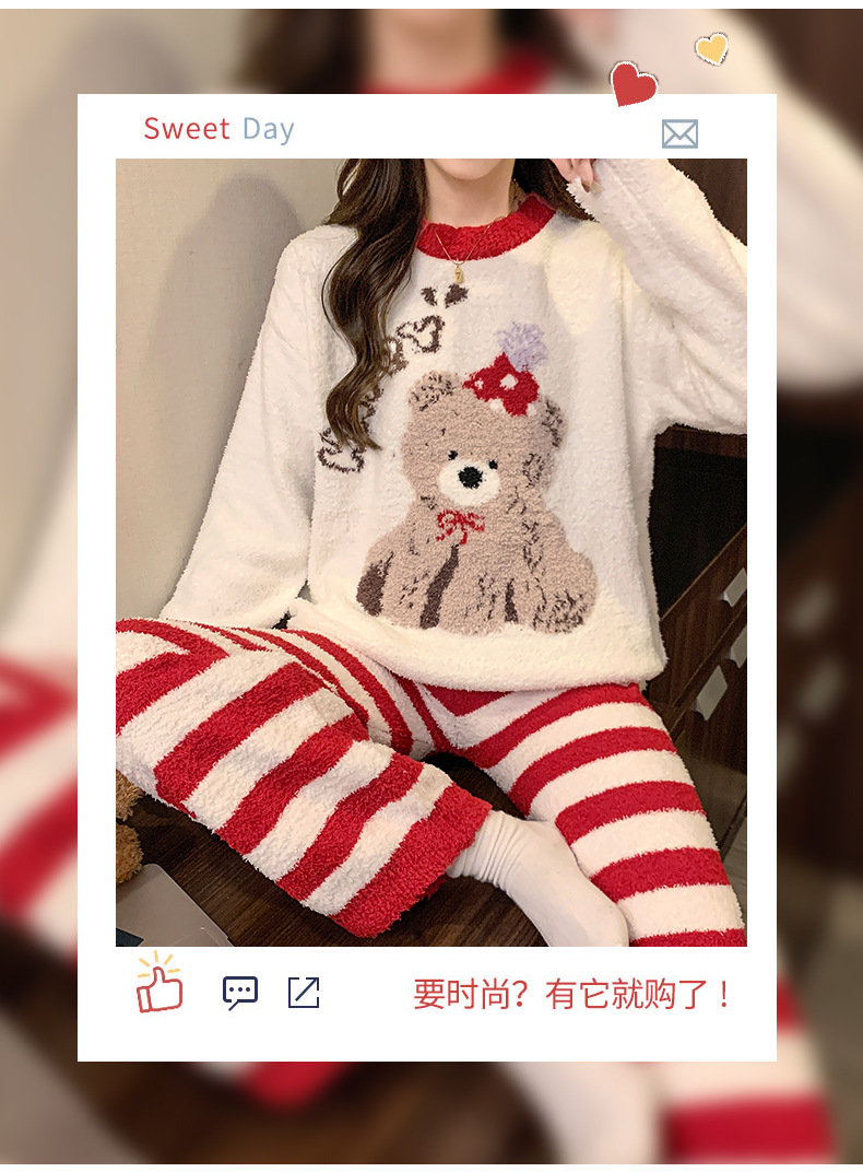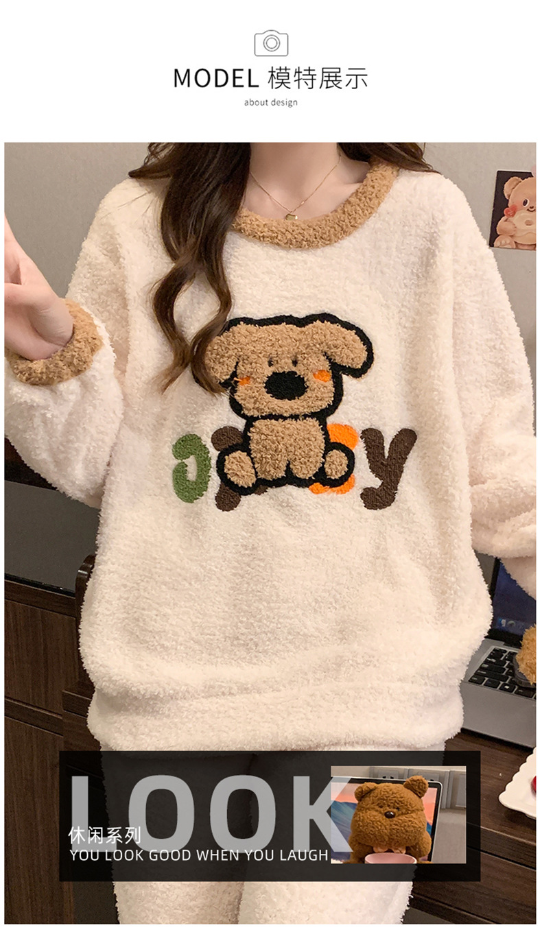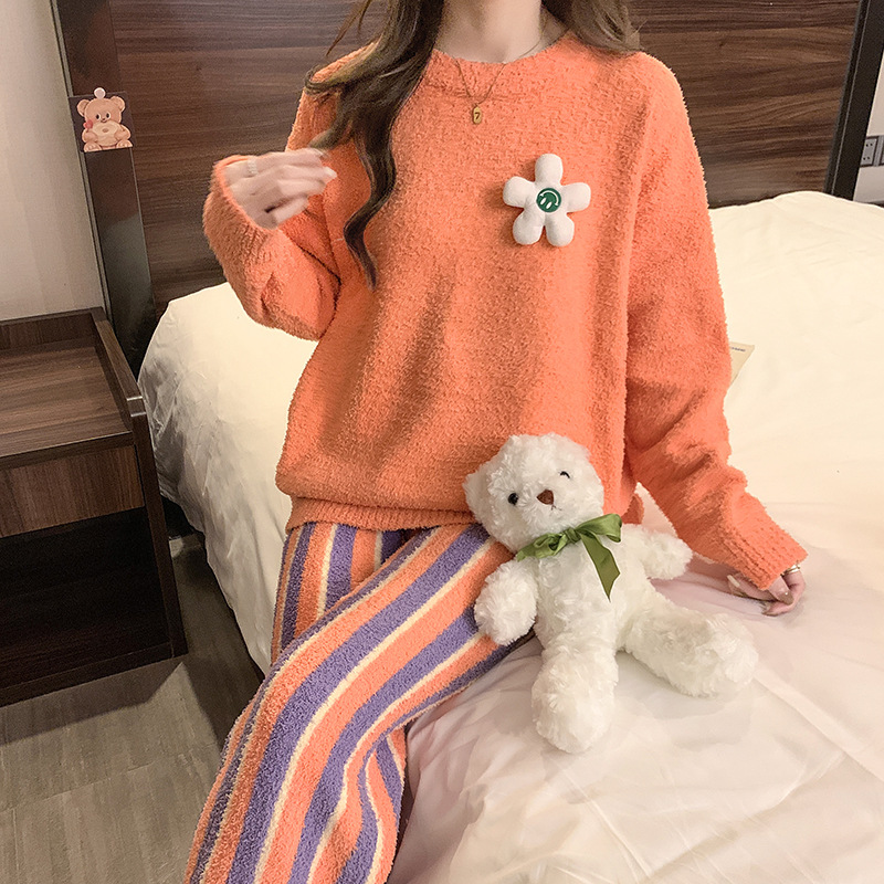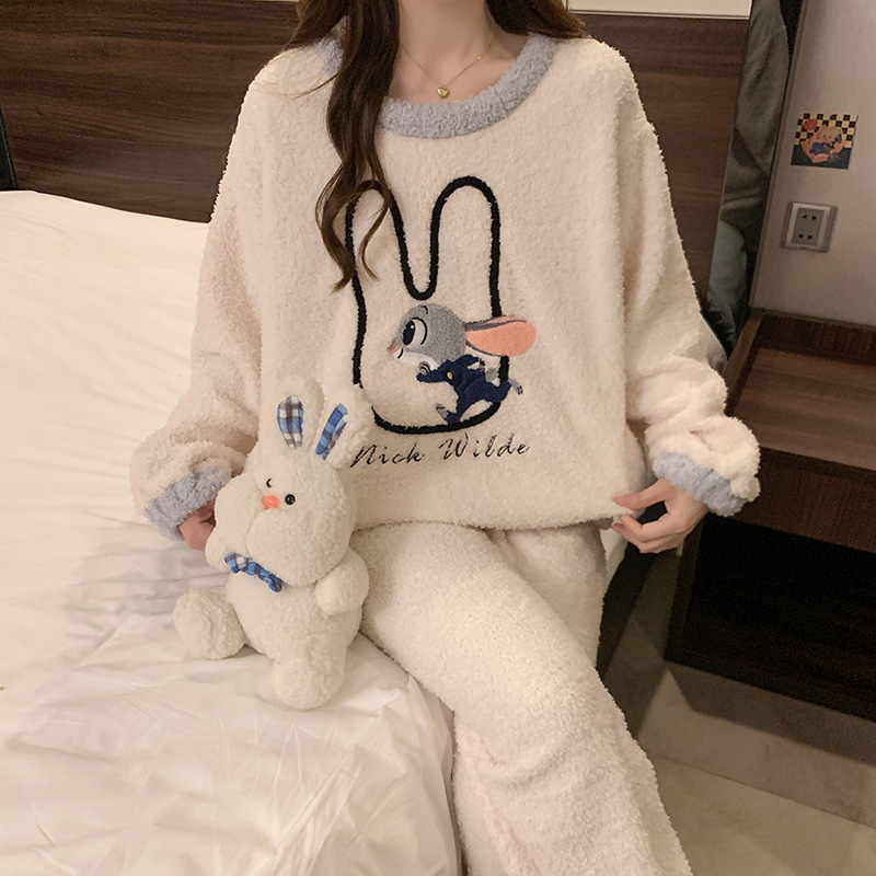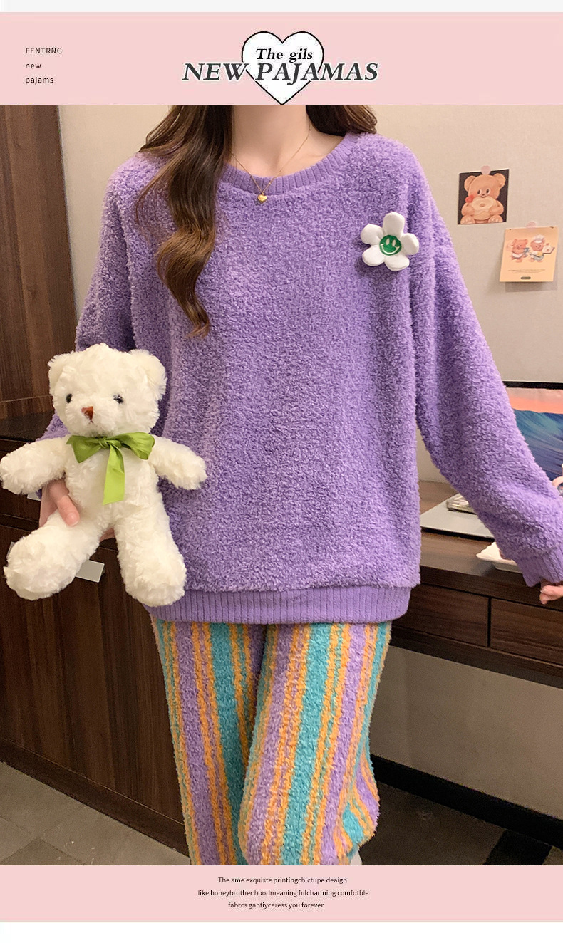 겨울 새 도착 파자마 여성 반쪽 벨벳 귀여운 만화 둥근 목 캐주얼 느슨한 한국 스타일 소녀의 집 옷스토어 가기