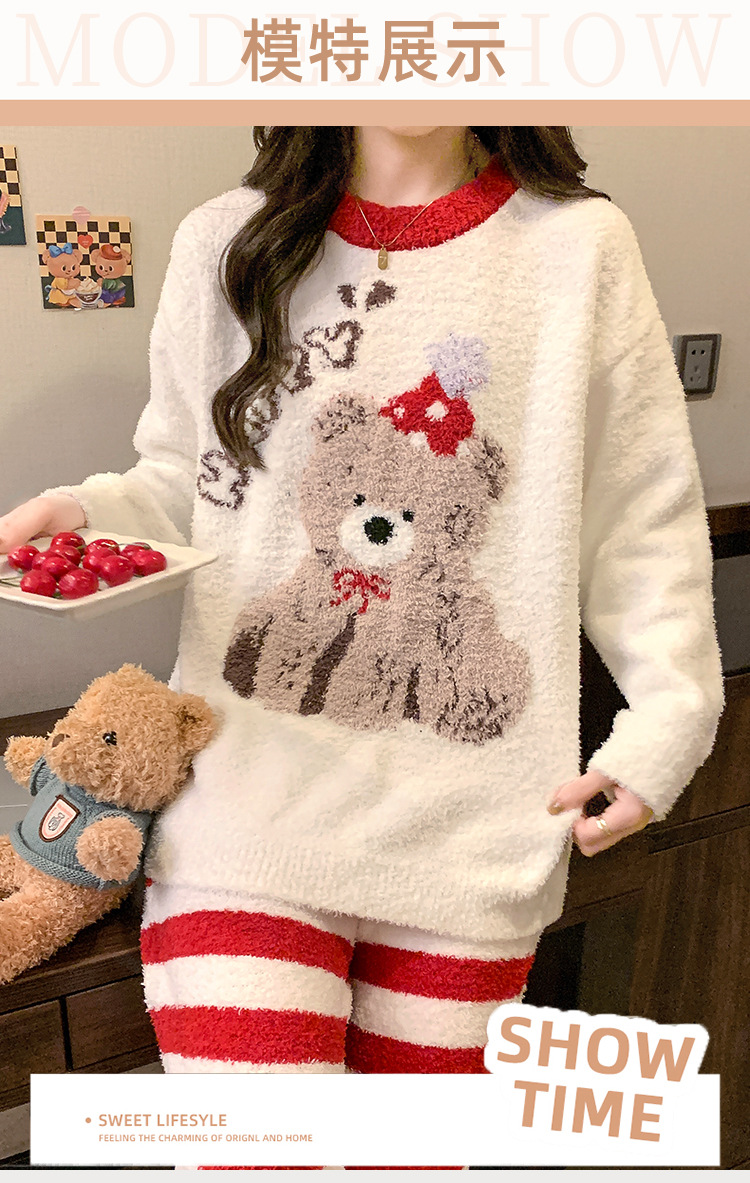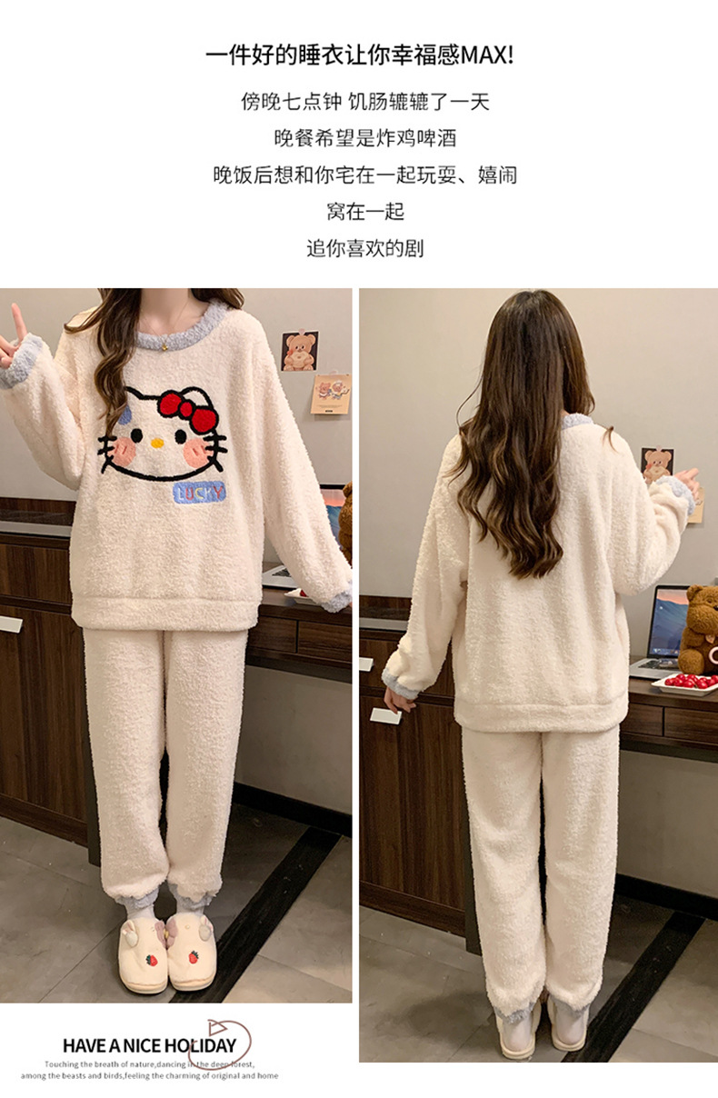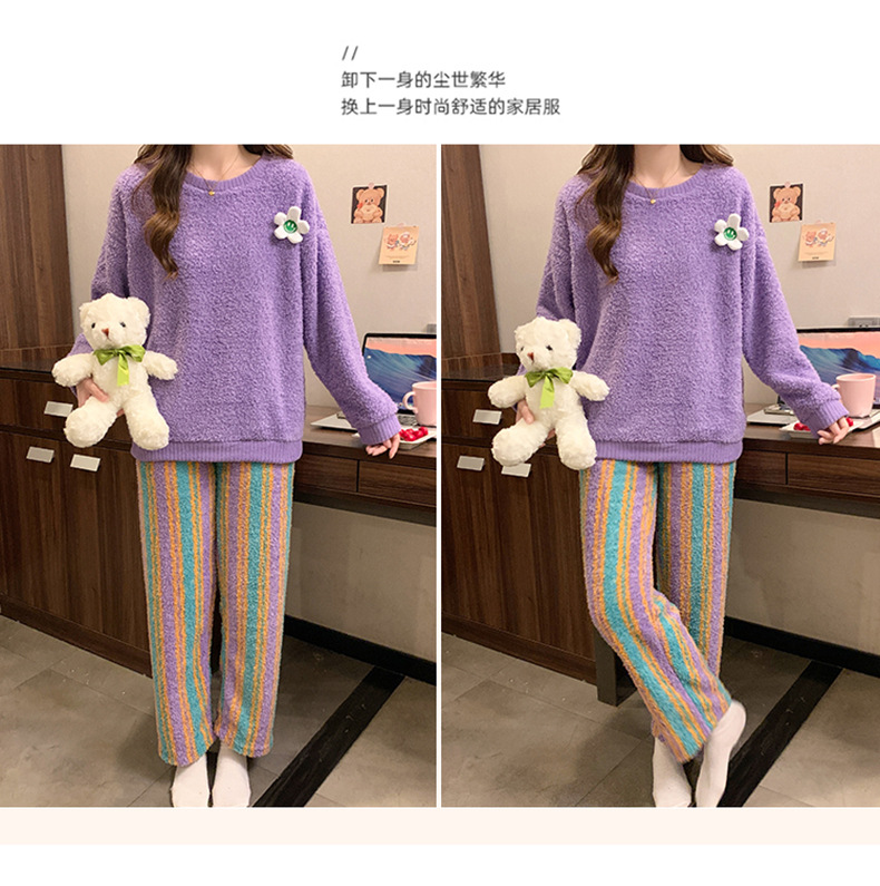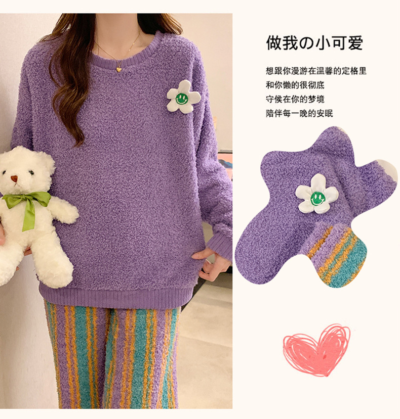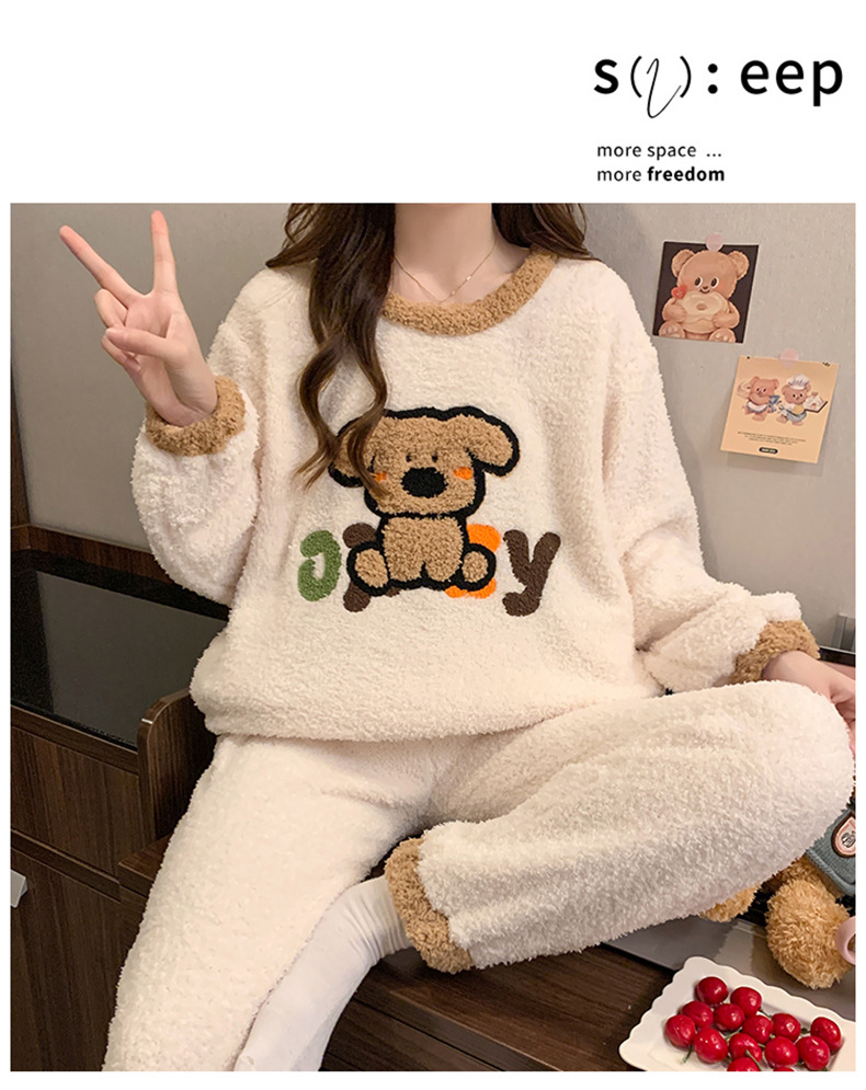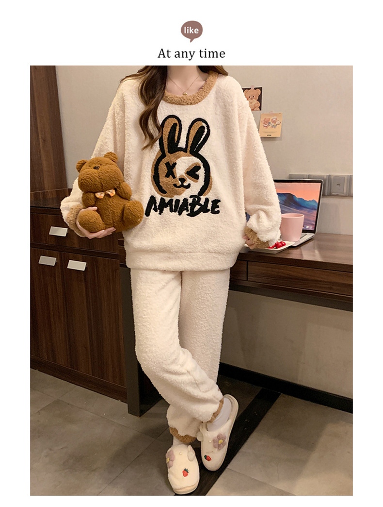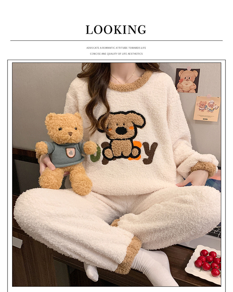 겨울 새 도착 파자마 여성 반쪽 벨벳 귀여운 만화 둥근 목 캐주얼 느슨한 한국 스타일 소녀의 집 옷스토어 가기