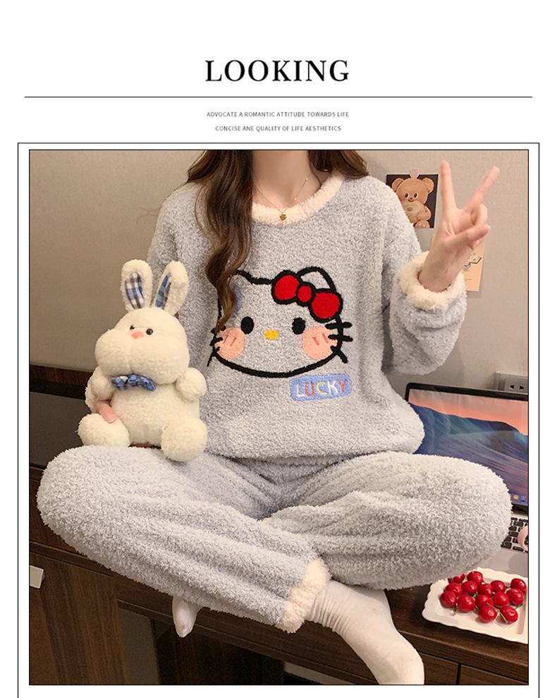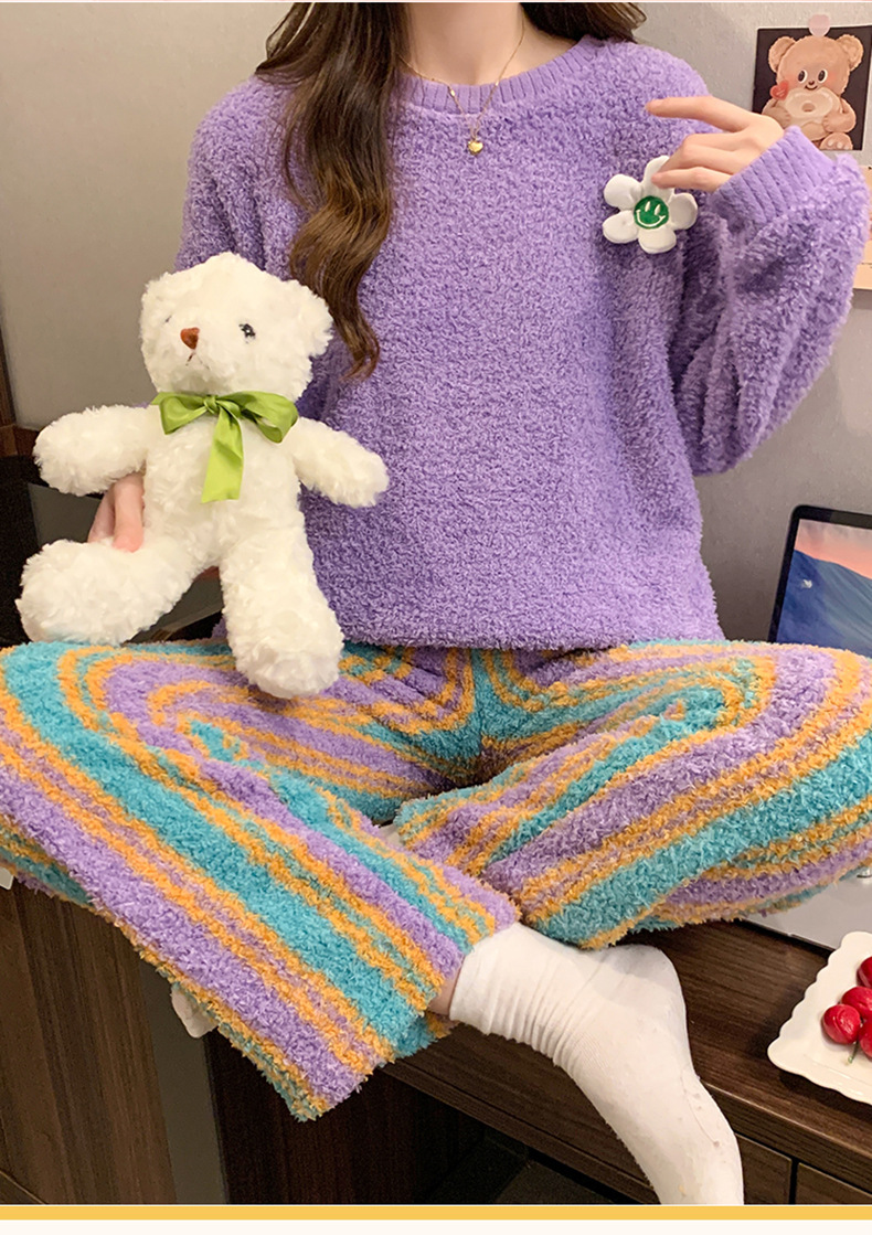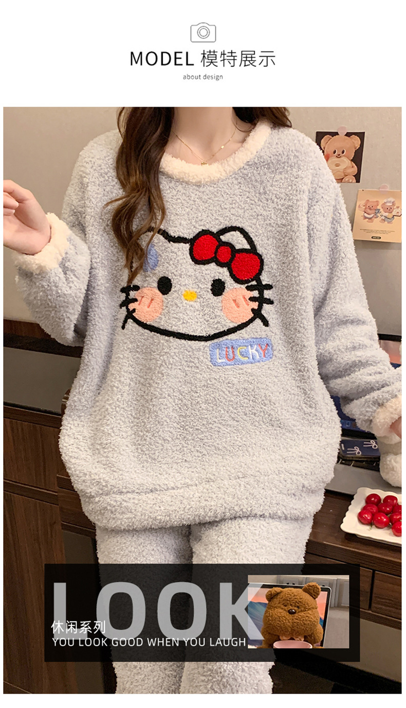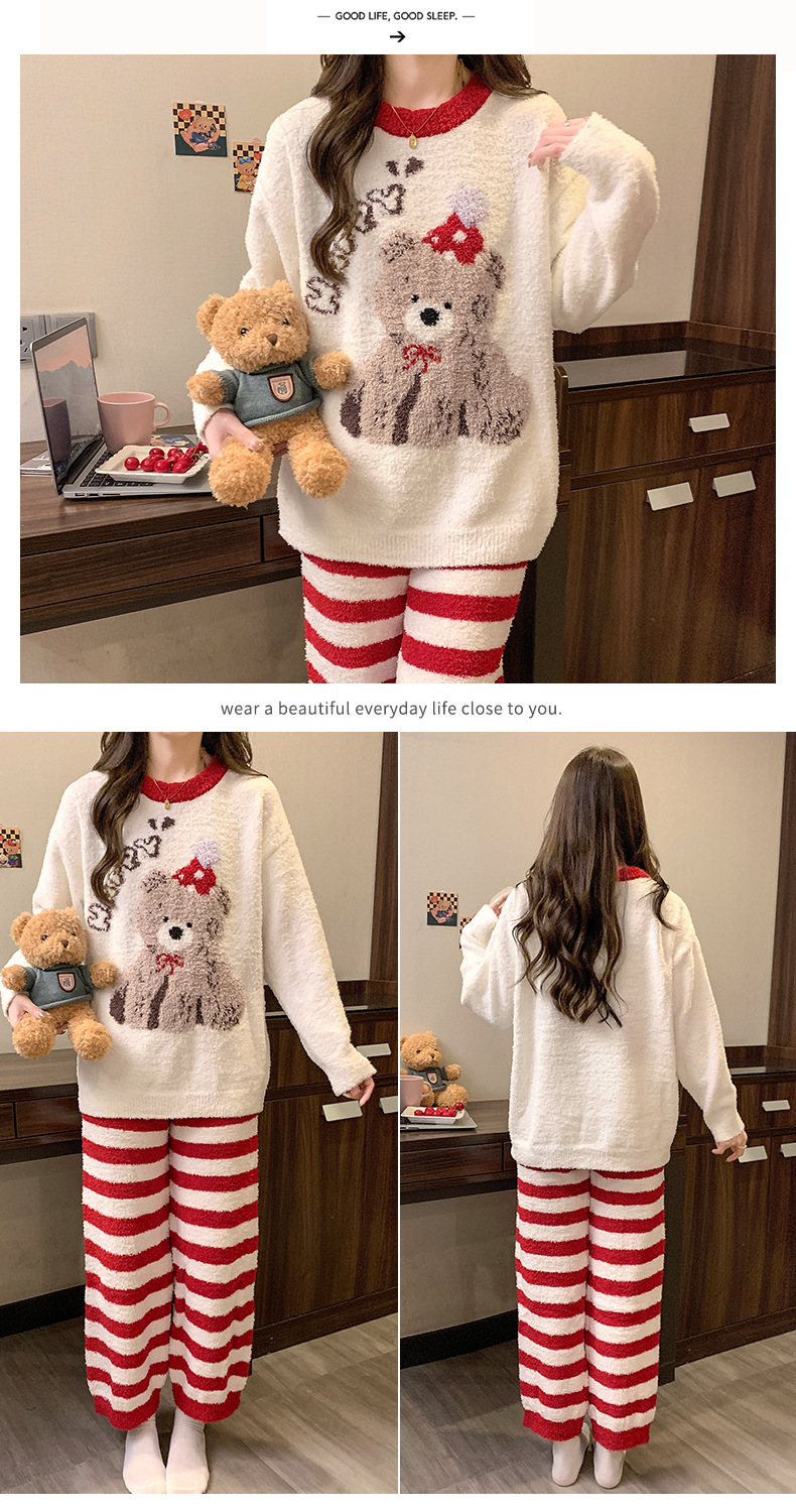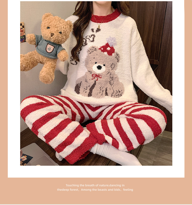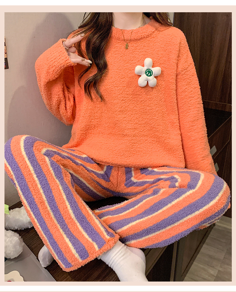 겨울 새 도착 파자마 여성 반쪽 벨벳 귀여운 만화 둥근 목 캐주얼 느슨한 한국 스타일 소녀의 집 옷스토어 가기