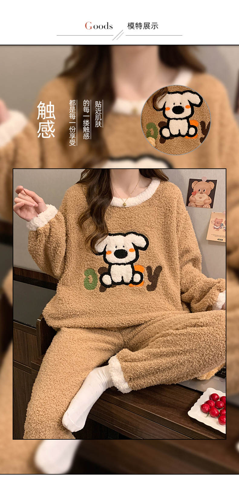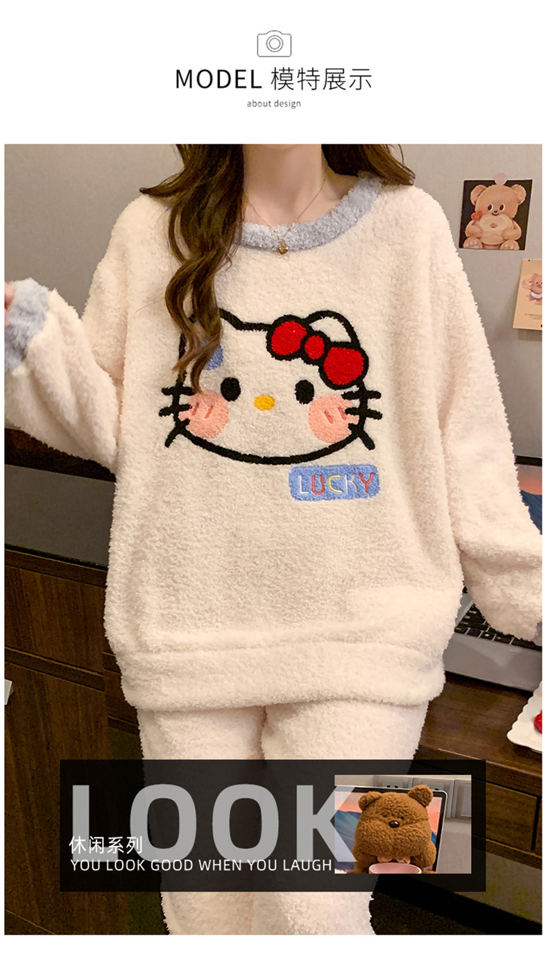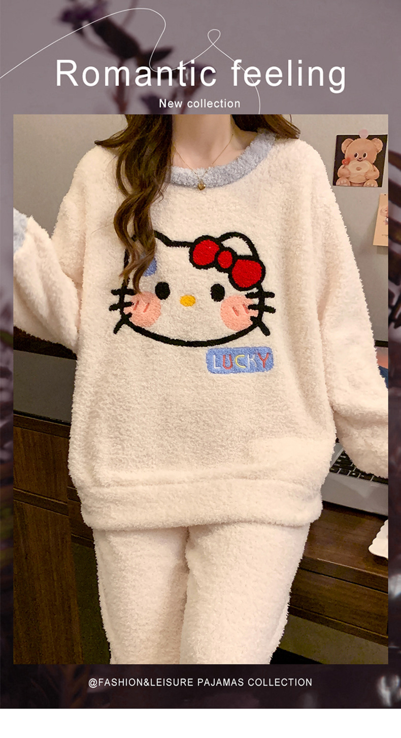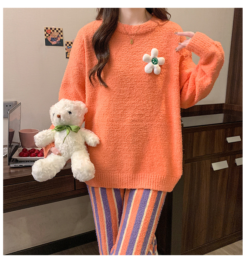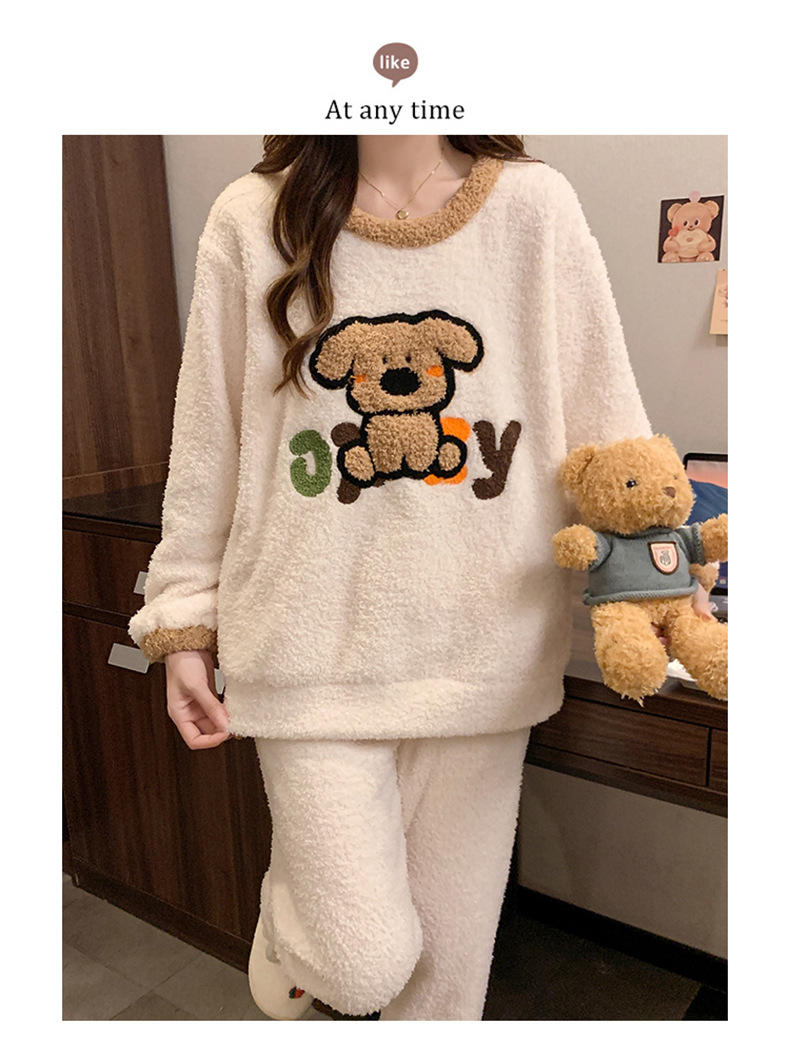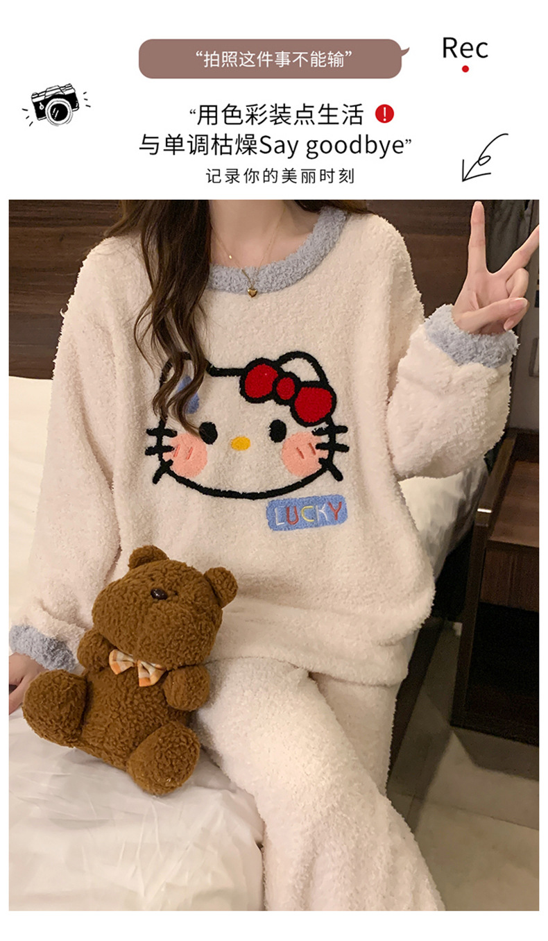 겨울 새 도착 파자마 여성 반쪽 벨벳 귀여운 만화 둥근 목 캐주얼 느슨한 한국 스타일 소녀의 집 옷스토어 가기