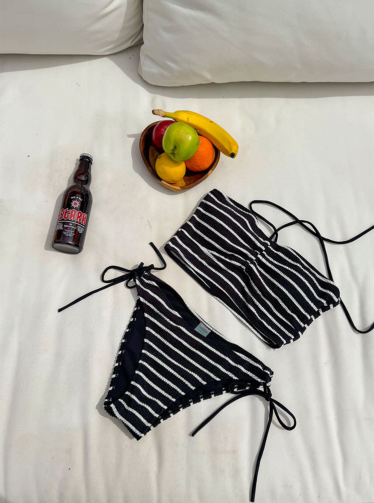 태국 교수형 목 슬림 핏 슬림 2024 한국 새로운 줄무늬 섹시한 온천 수영복 분할 배꼽 커버 여성용 수영복