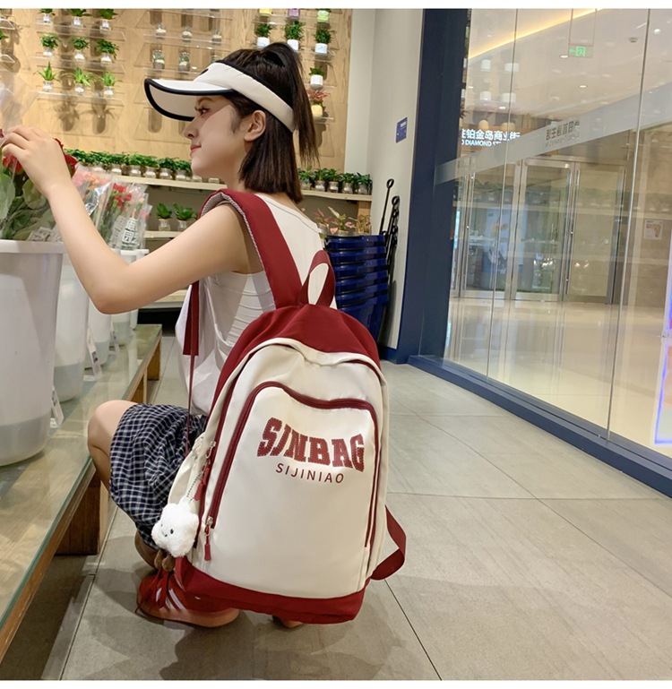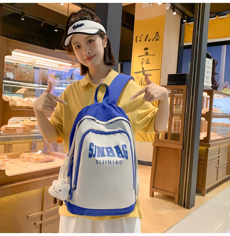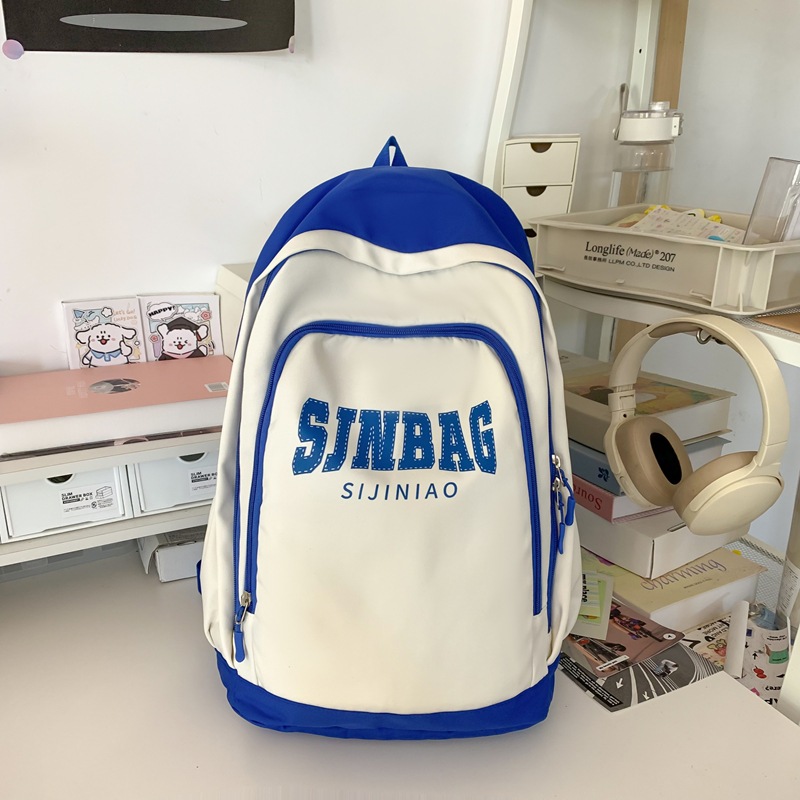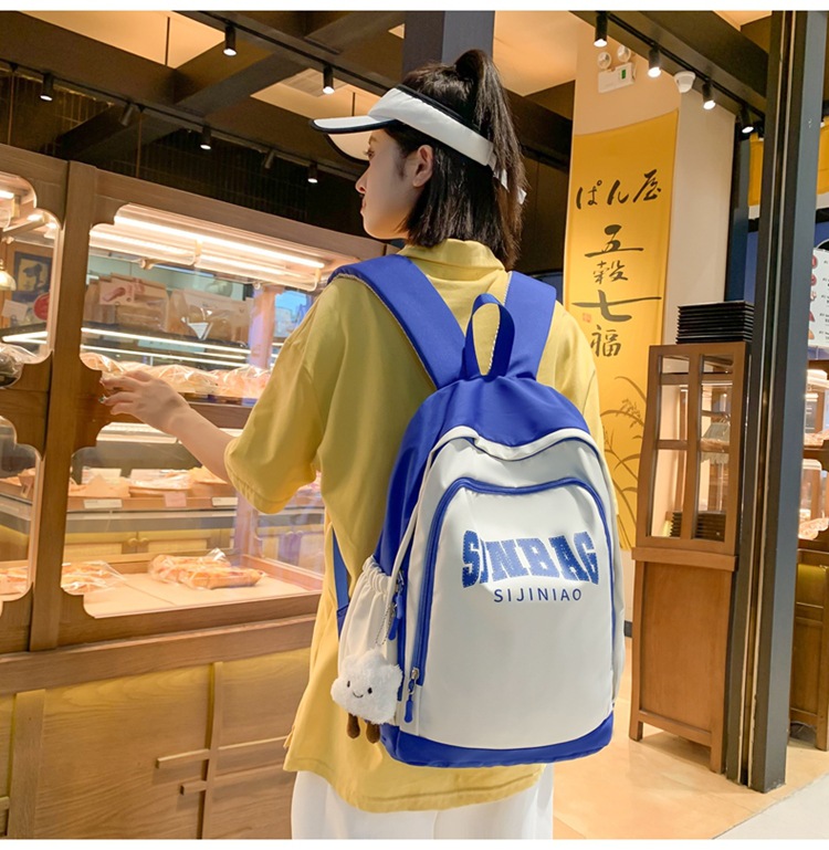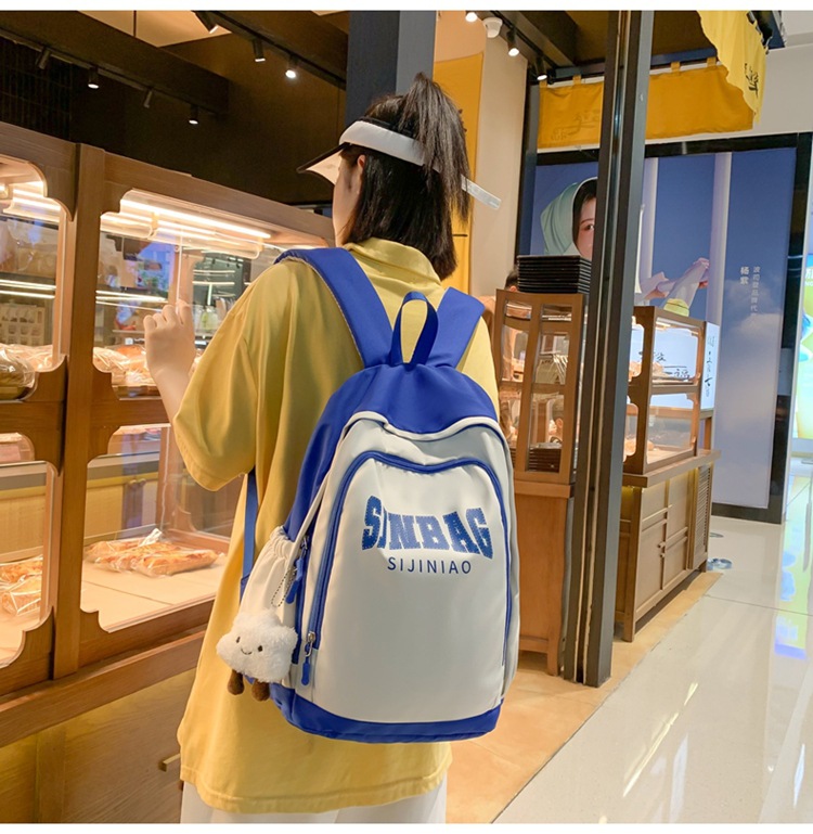 새로운 Schoolbag Mori Ins 작은 신선한 콘트라스트 컬러 스티칭 초등 및 중등 학교 학생을위한 멀티 컴 파트먼트 백팩 3 ~ 5 학년스토어 가기