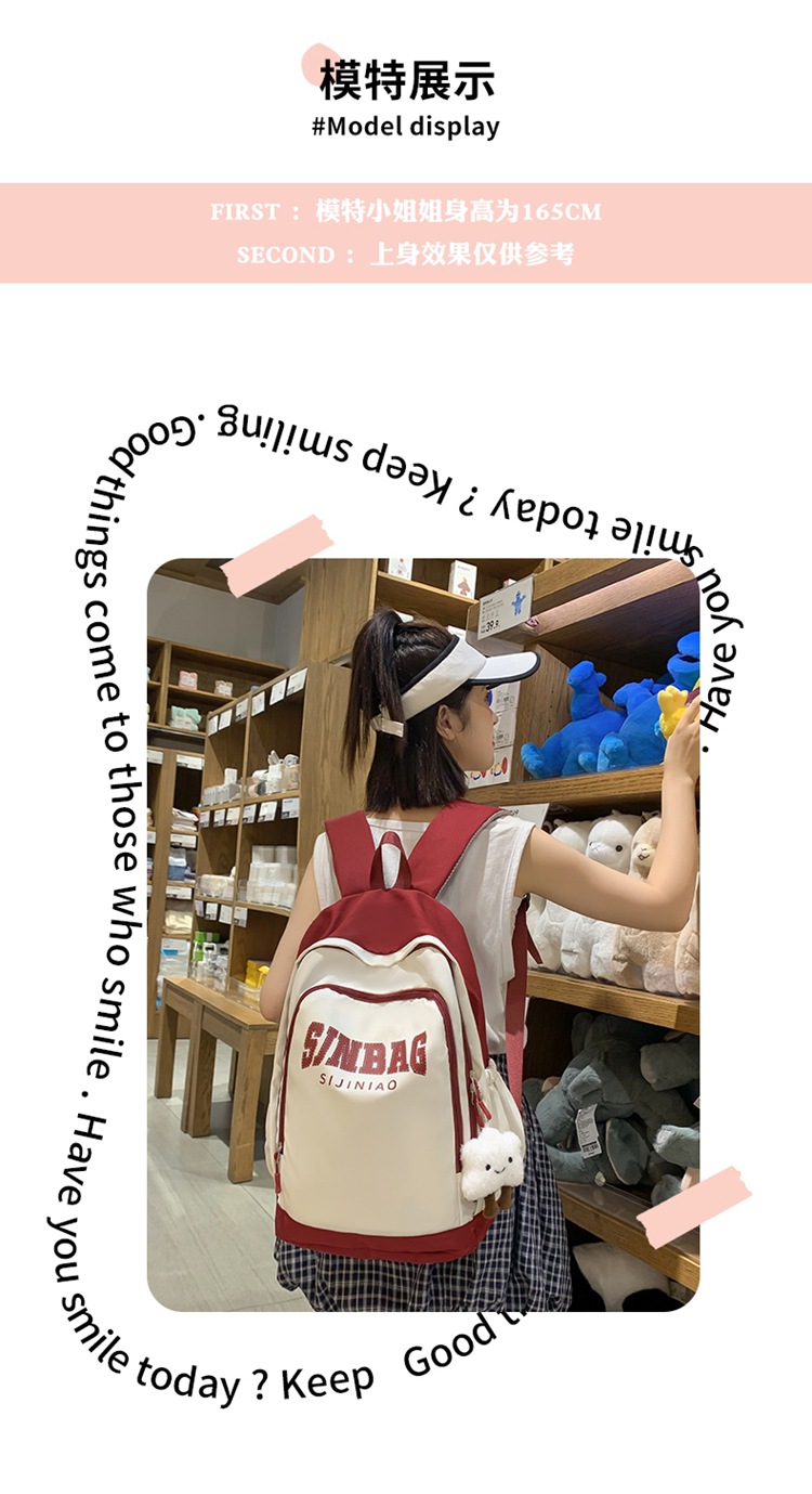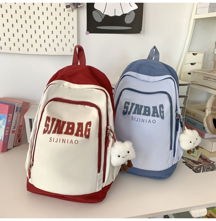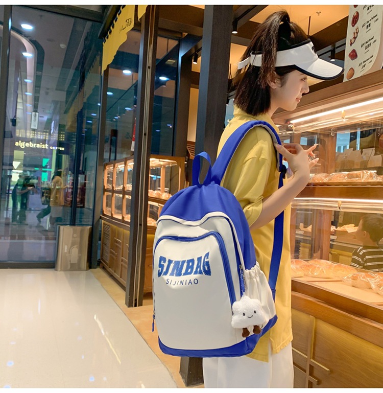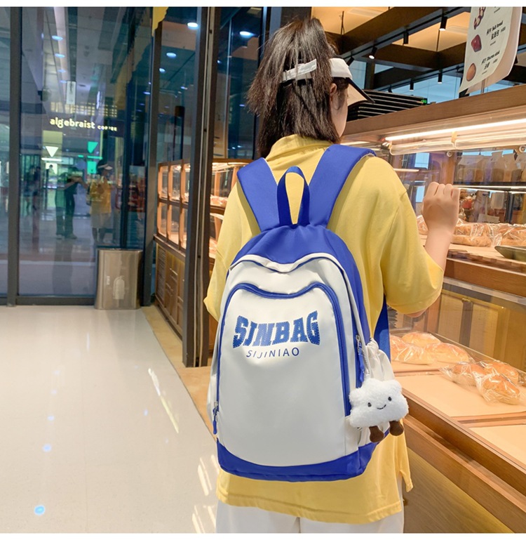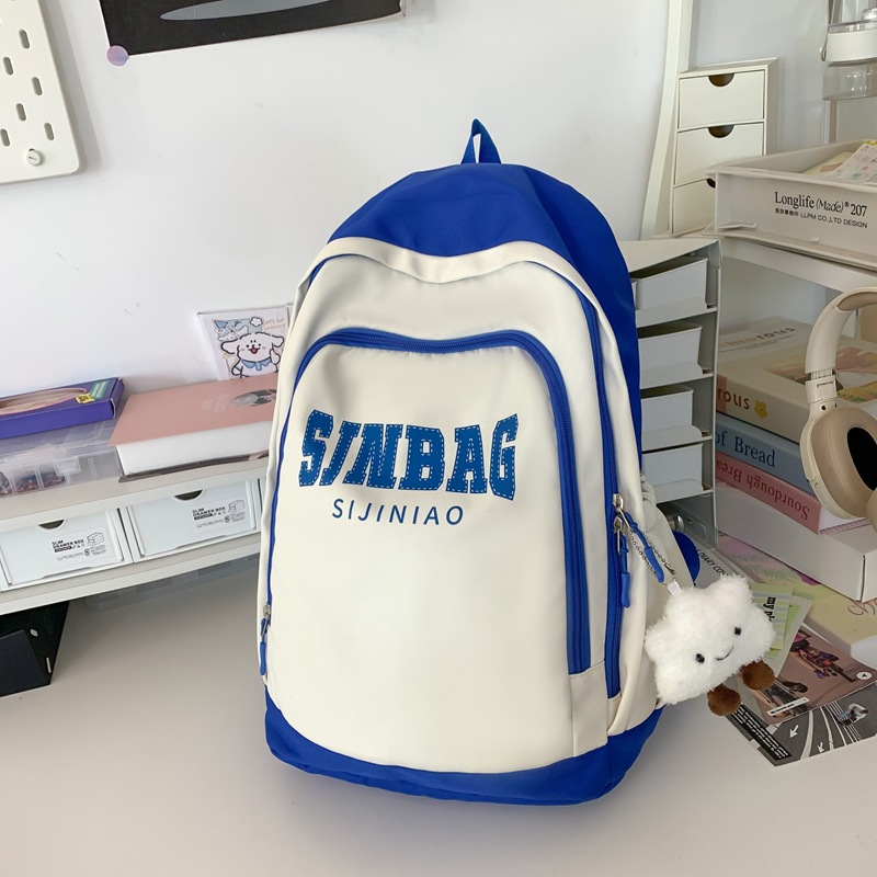 새로운 Schoolbag Mori Ins 작은 신선한 콘트라스트 컬러 스티칭 초등 및 중등 학교 학생을위한 멀티 컴 파트먼트 백팩 3 ~ 5 학년스토어 가기