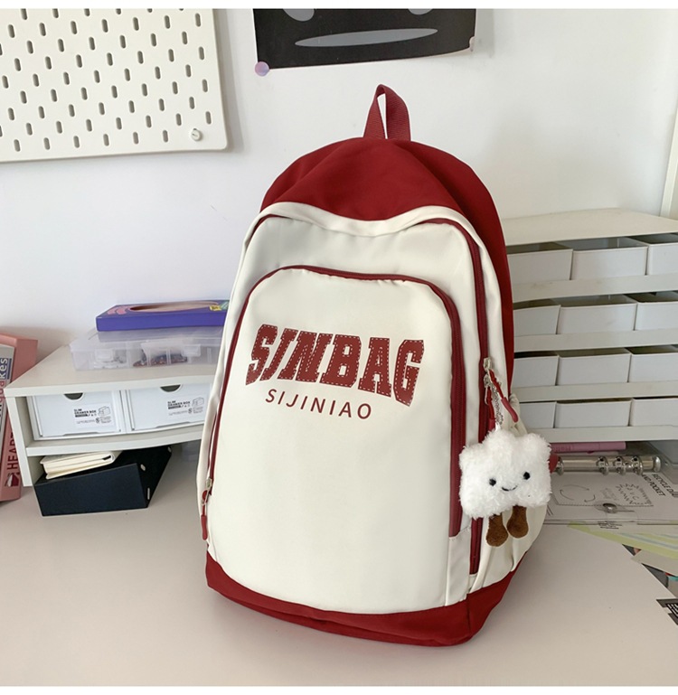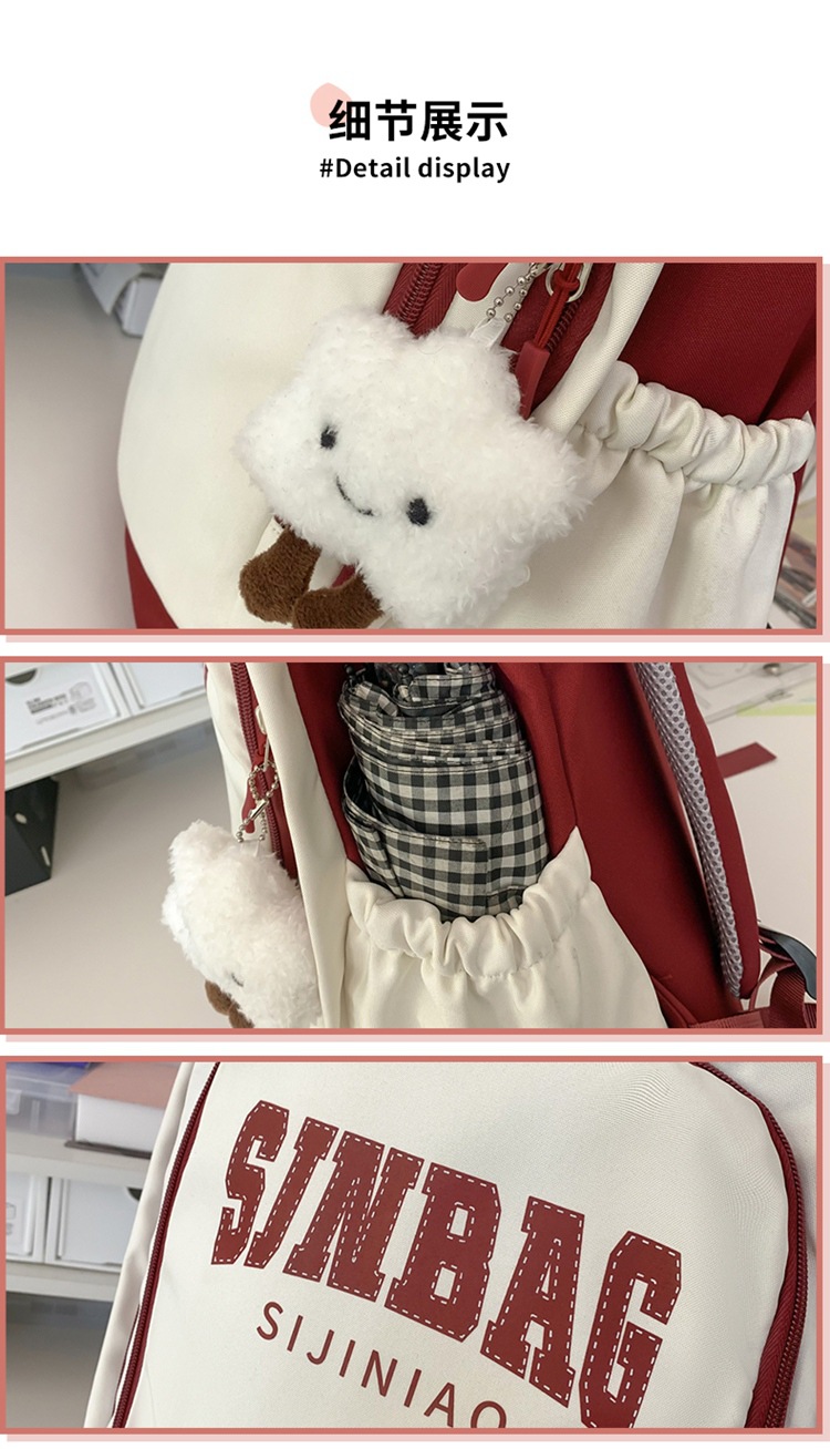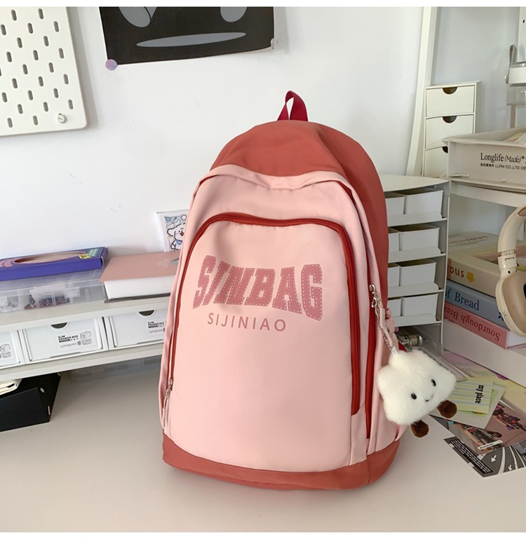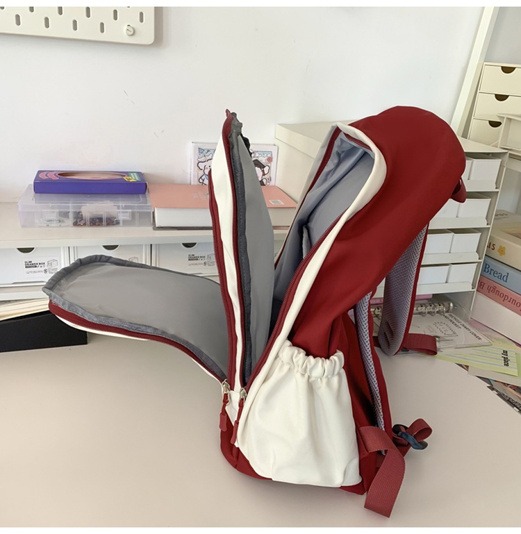 새로운 Schoolbag Mori Ins 작은 신선한 콘트라스트 컬러 스티칭 초등 및 중등 학교 학생을위한 멀티 컴 파트먼트 백팩 3 ~ 5 학년