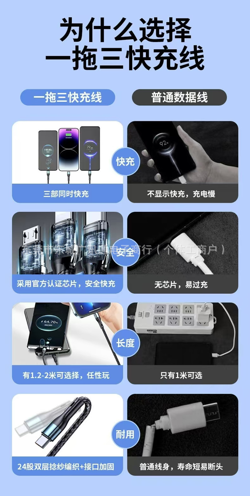 [꼭 구매해야 할 상품] 3-in-1 고속 충전 데이터 케이블 3-in-1 충전 케이블 120w 휴대폰 초고속 충전