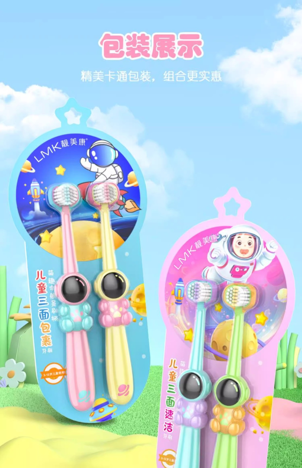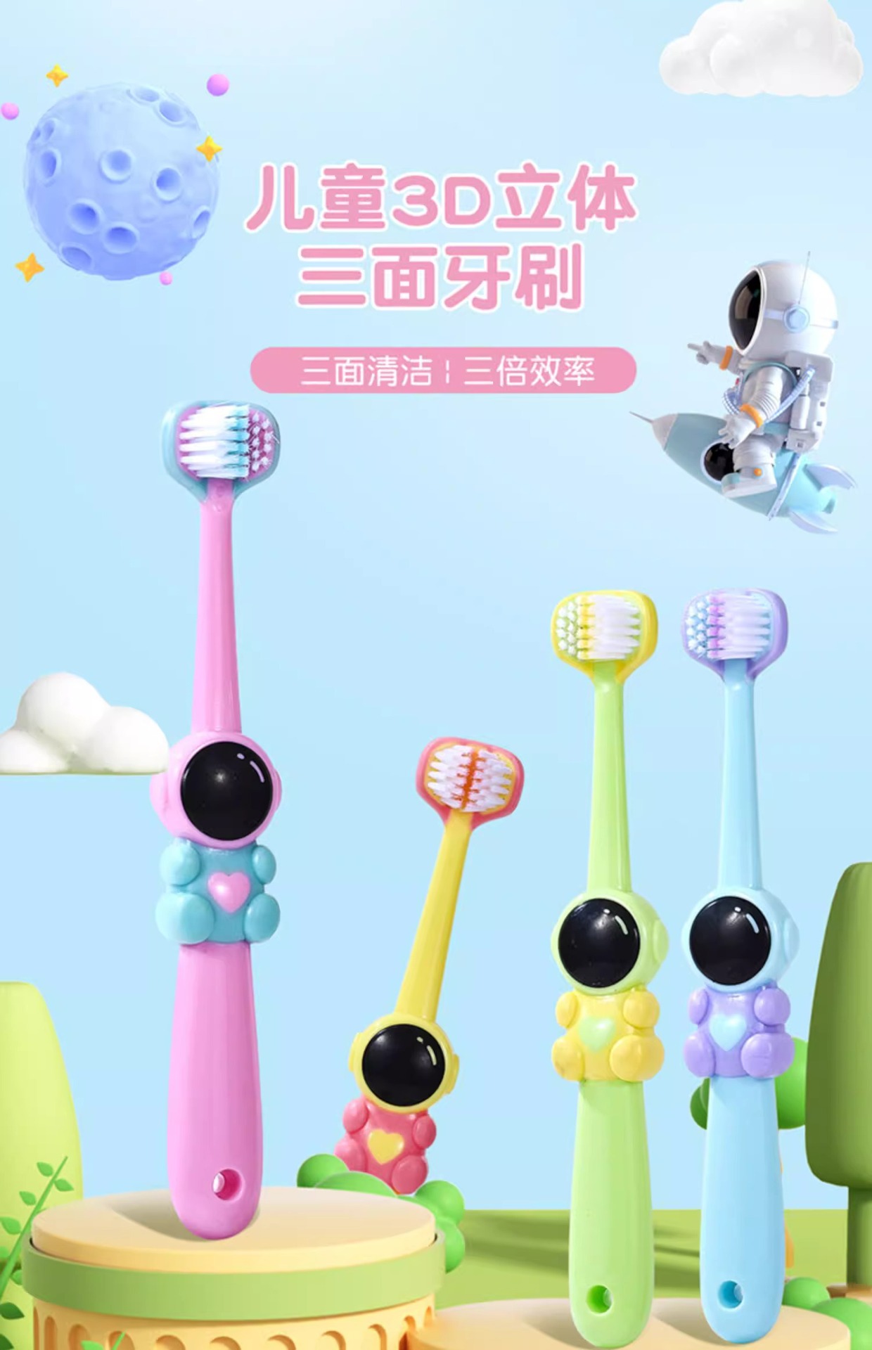 • 우주 비행사 삼면 부드러운 강모 어린이 칫솔 ★ [2개 팩] 3~12세에게 적합