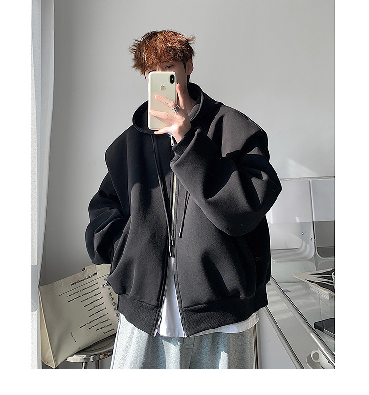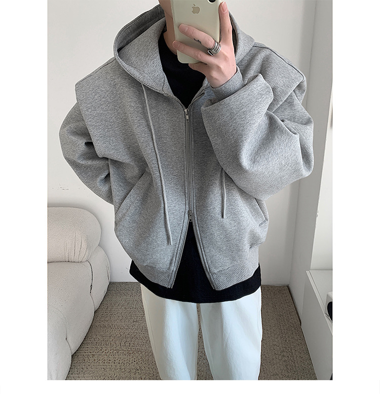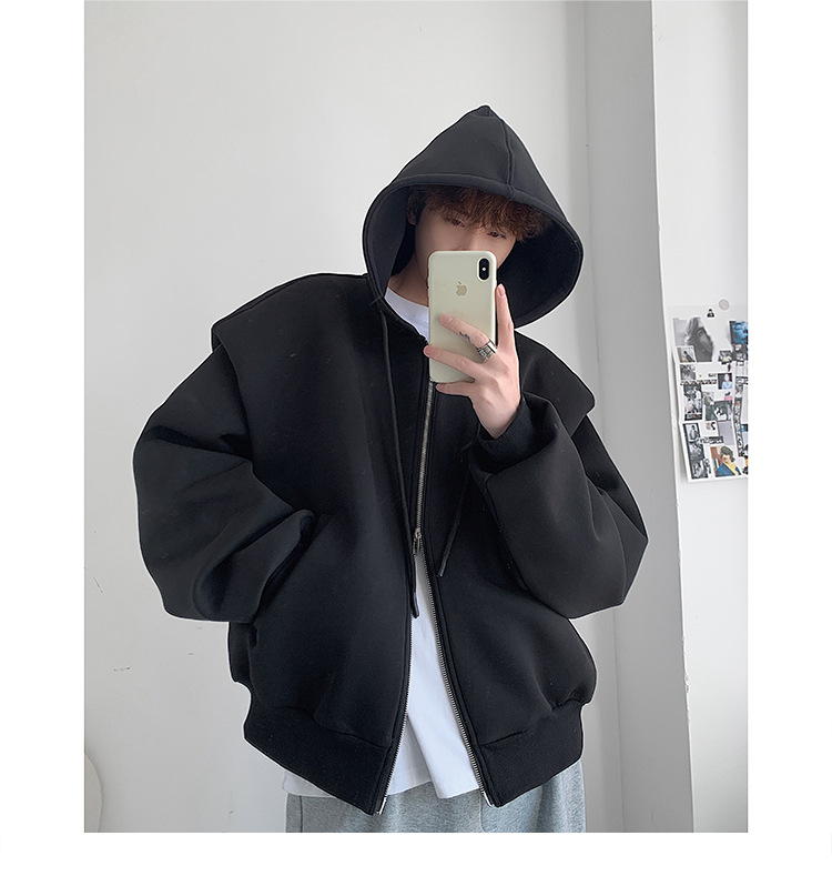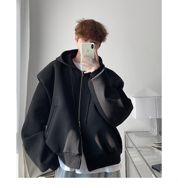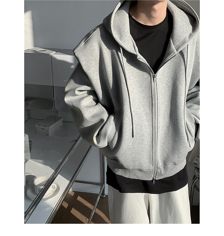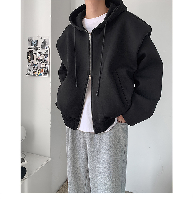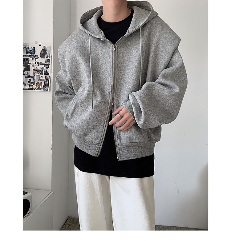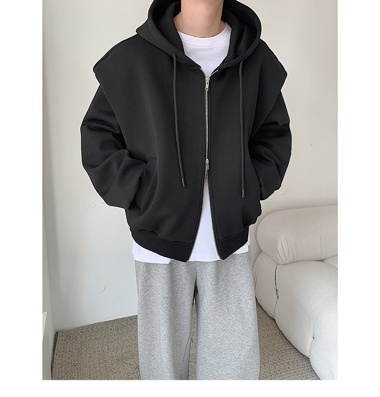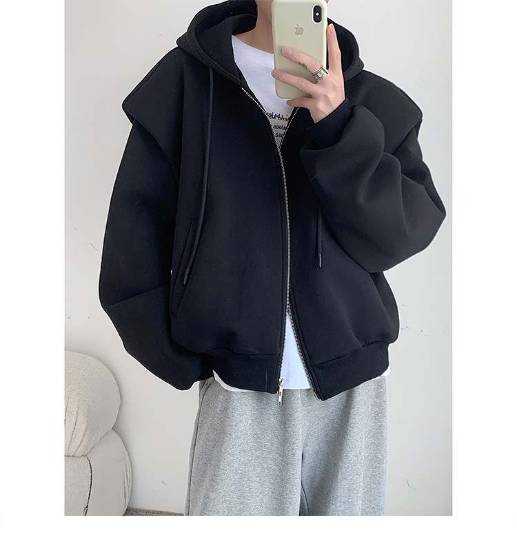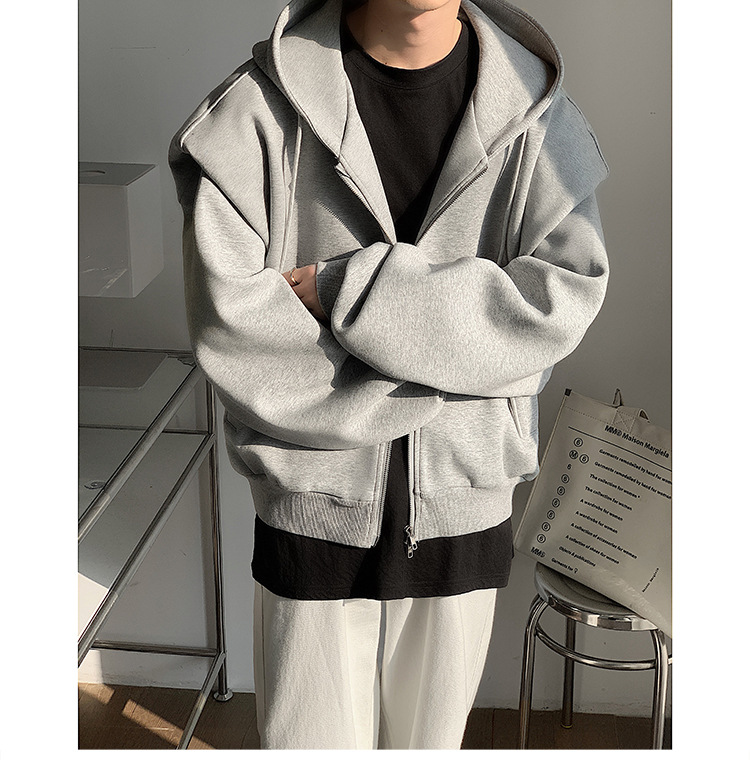 2024 봄 의류 한국 스타일 대형 프로필 더블 레이어 복합 루즈 스웨터 남성용 코트 후드 카디건 재킷 트렌디 탑
