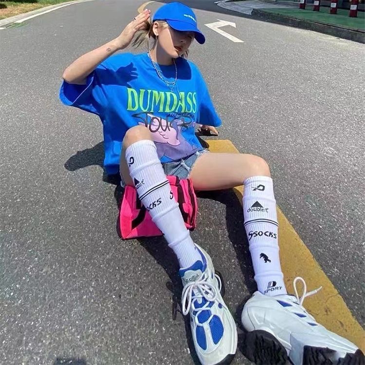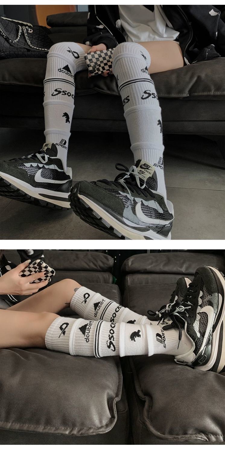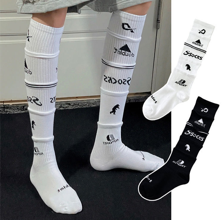 Doublet 다층 오버레이 디자인 면화 양말 남성 스포츠 무릎 높은 축구 스타킹 여성의 성격 일상 패션