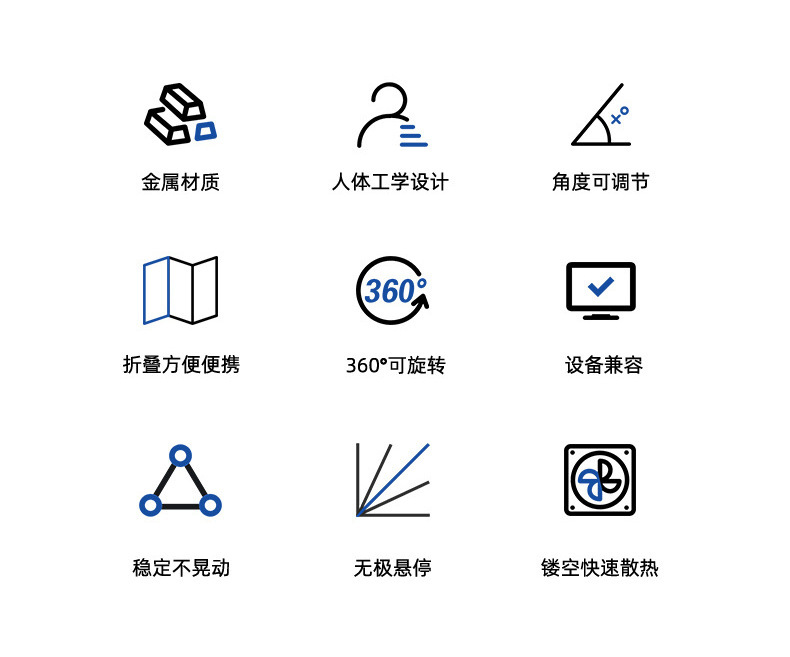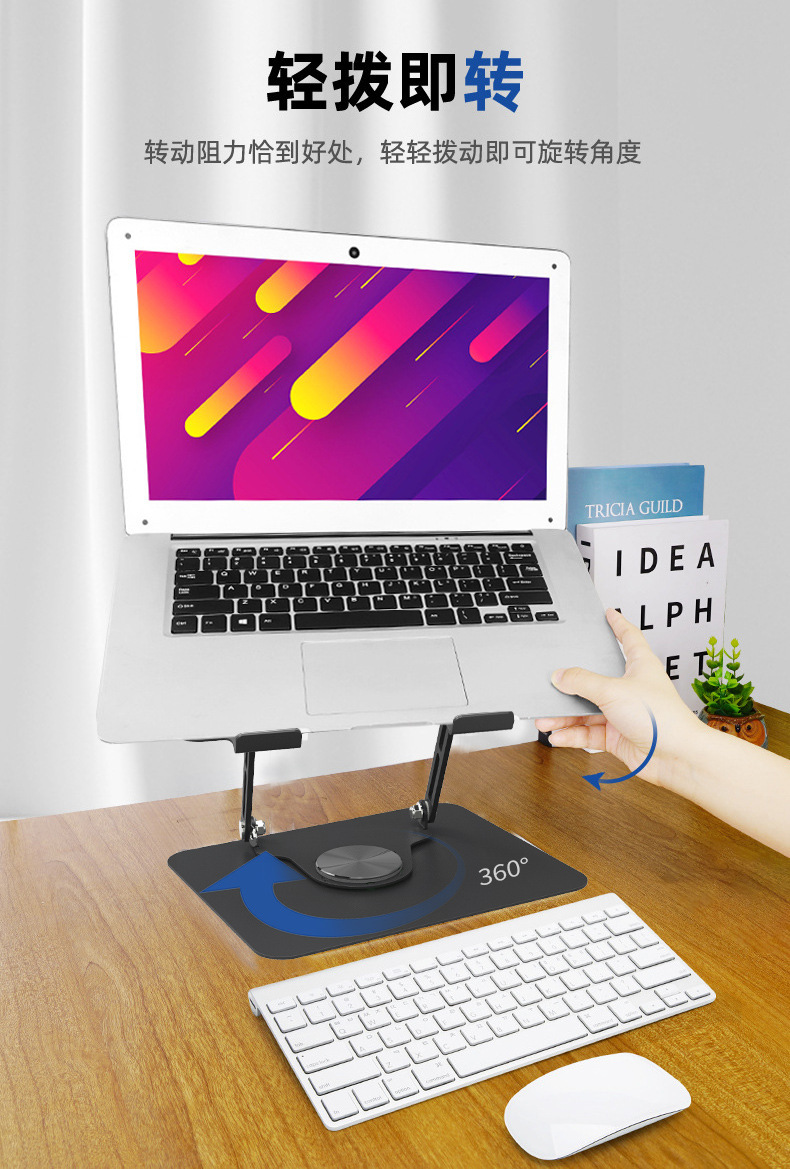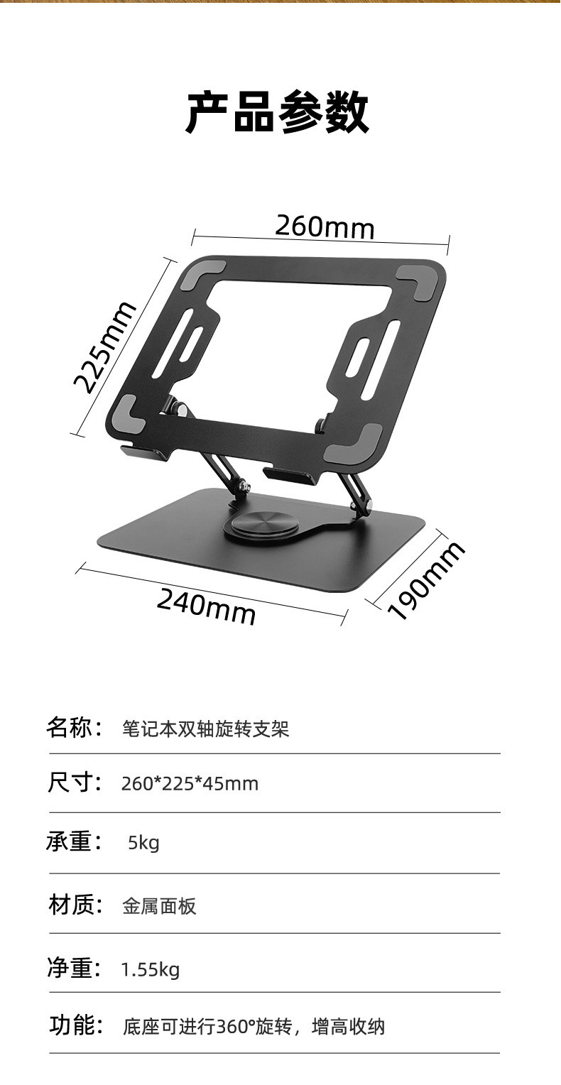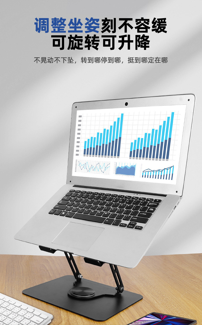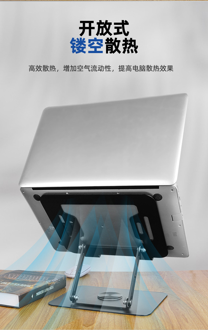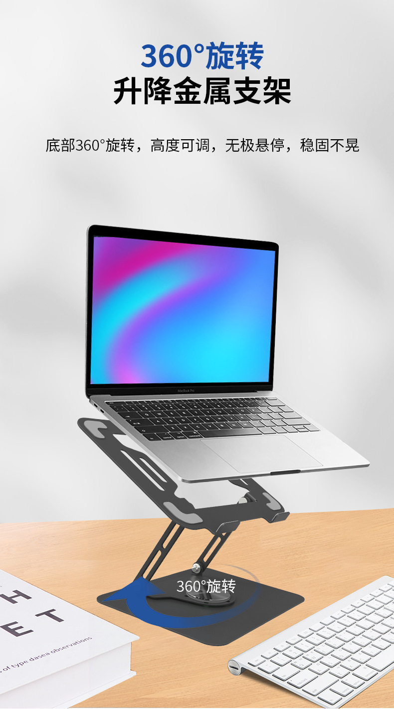 노트북 브래킷 데스크탑 중단 열 분산 탄소 강철 360 도 회전 가능한 리프팅 높이 접이식 브래킷