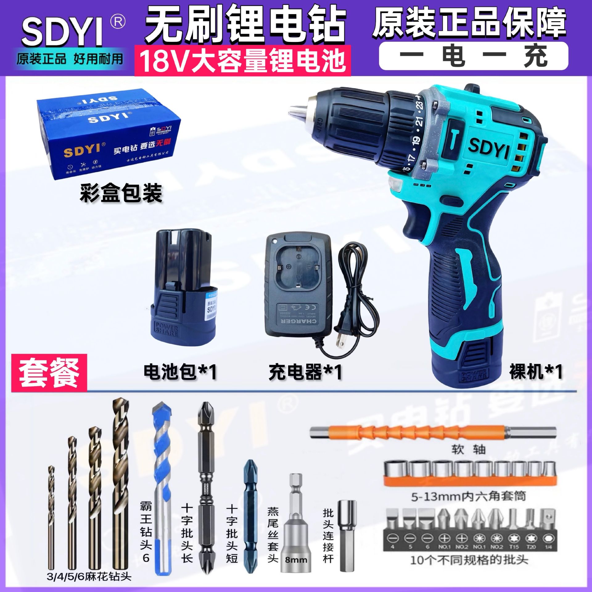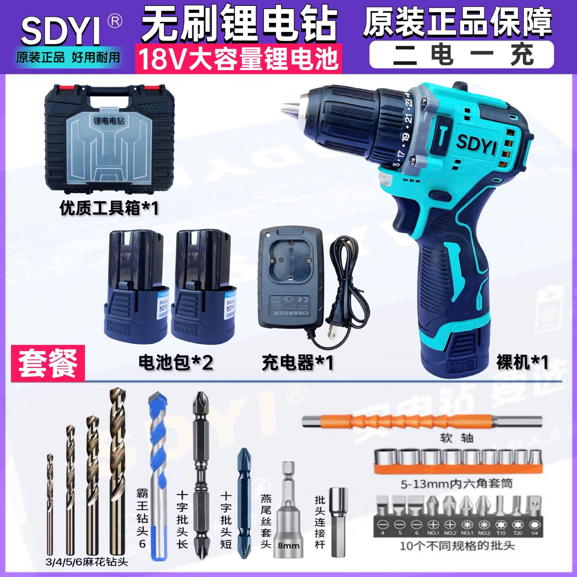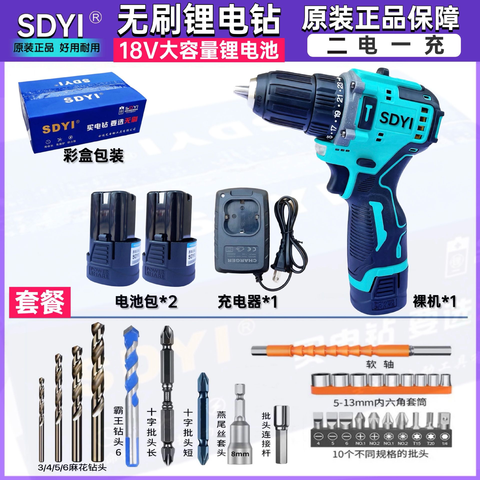 원래 정품 SDYI 손 전기 드릴 높은 전원 브러시리스 핸드 건 드릴 충전식 전기 스크루 드라이버 홈 다기능 회전스토어 가기