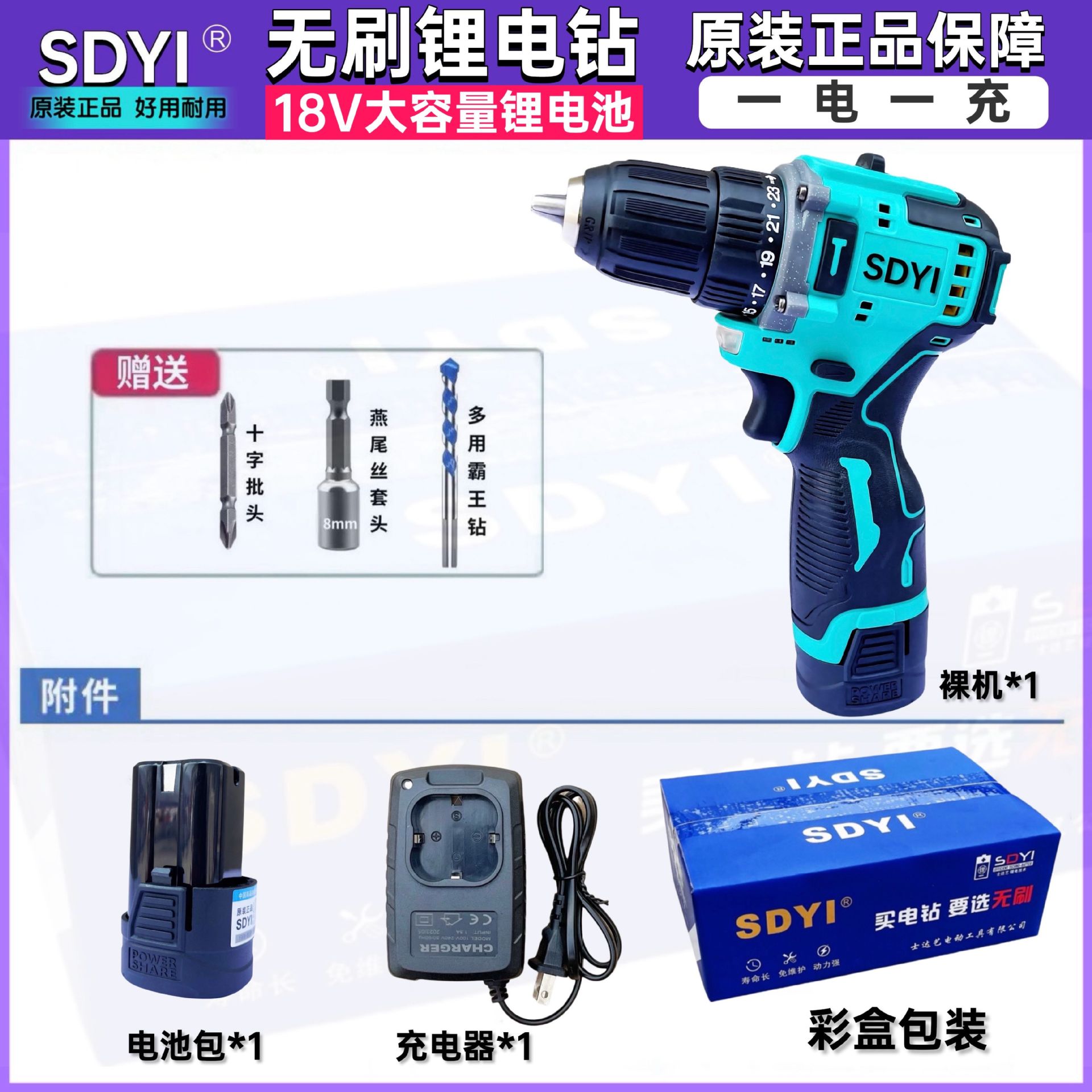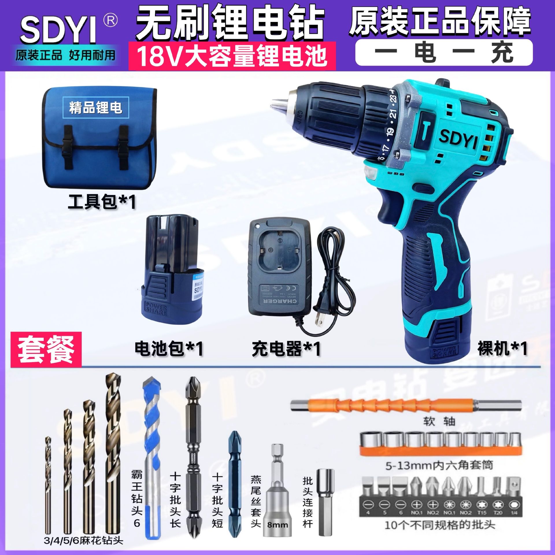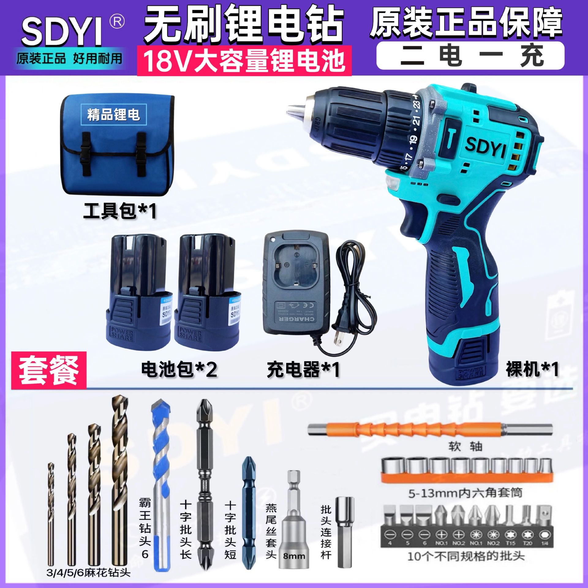 원래 정품 SDYI 손 전기 드릴 높은 전원 브러시리스 핸드 건 드릴 충전식 전기 스크루 드라이버 홈 다기능 회전스토어 가기