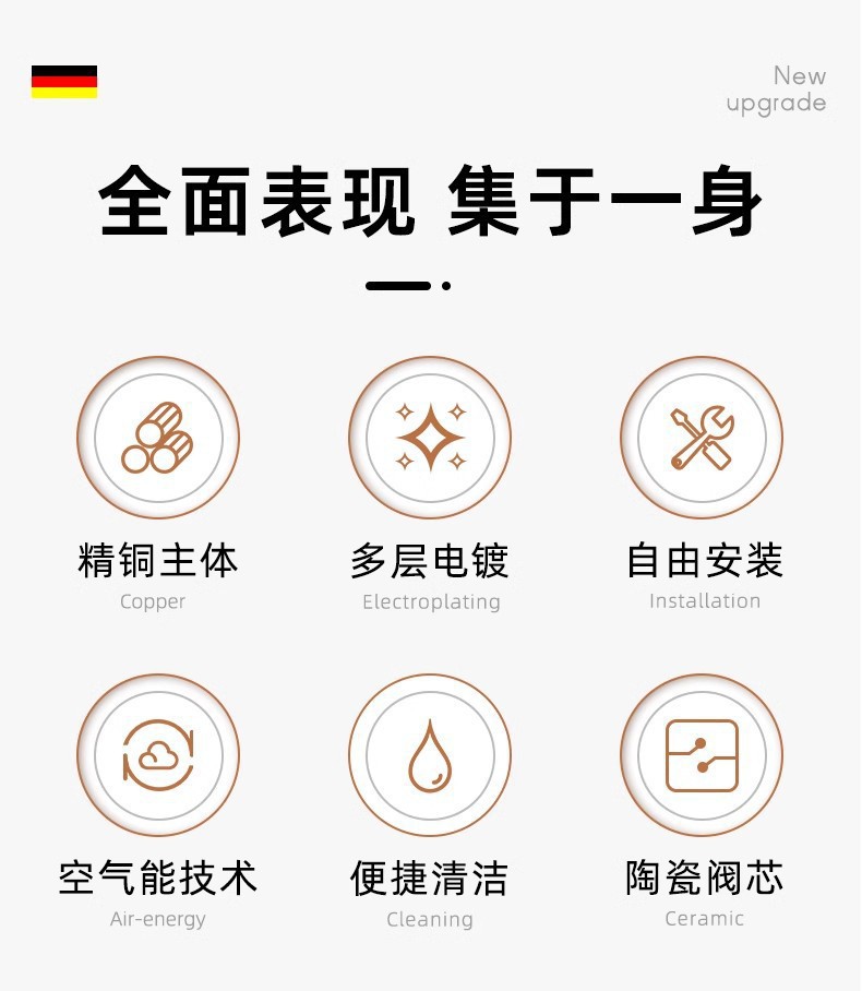 • 구리 [업그레이드 및 두꺼워진 버전] + 샤워수전 + 50년 보증 + 범용 설치