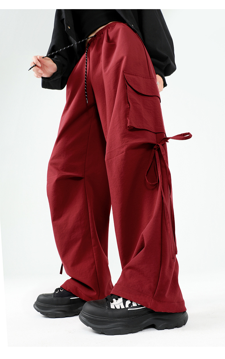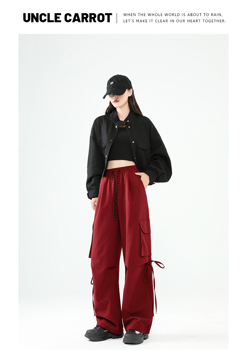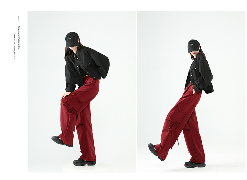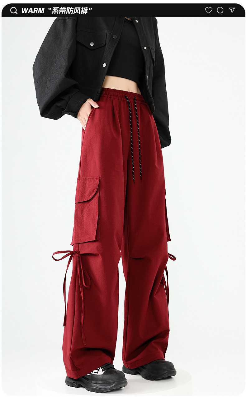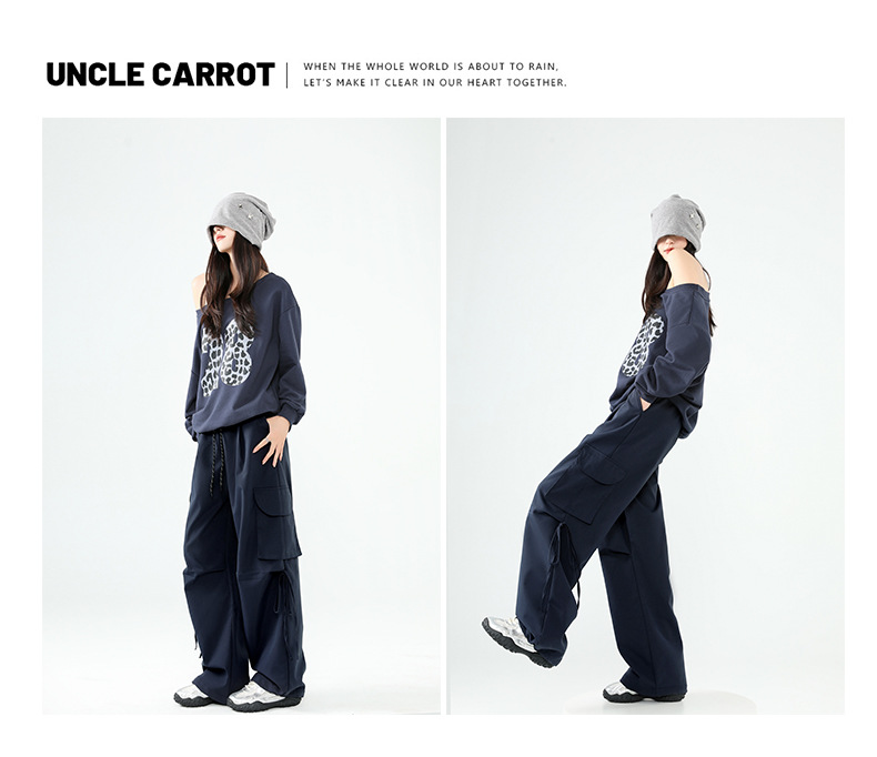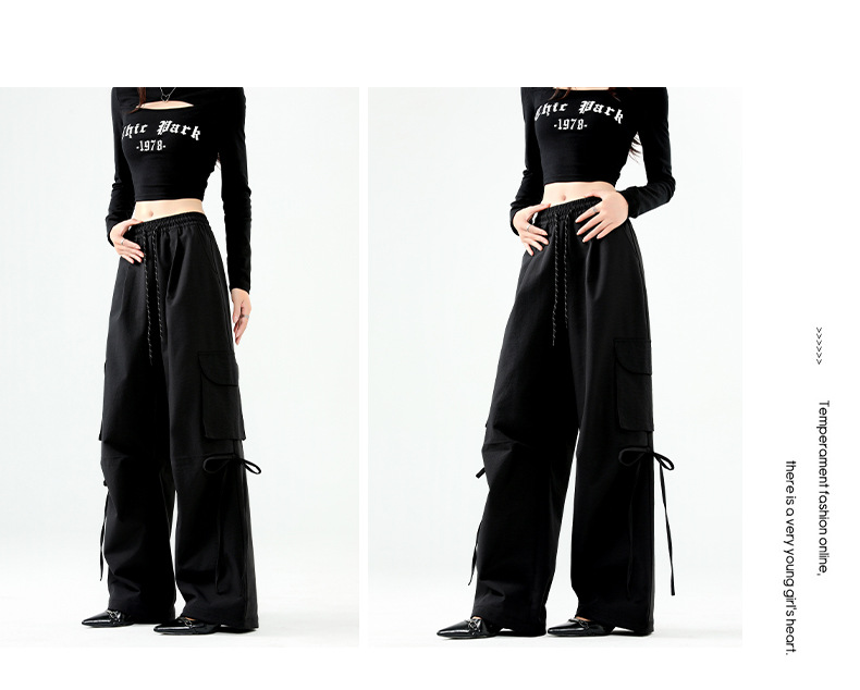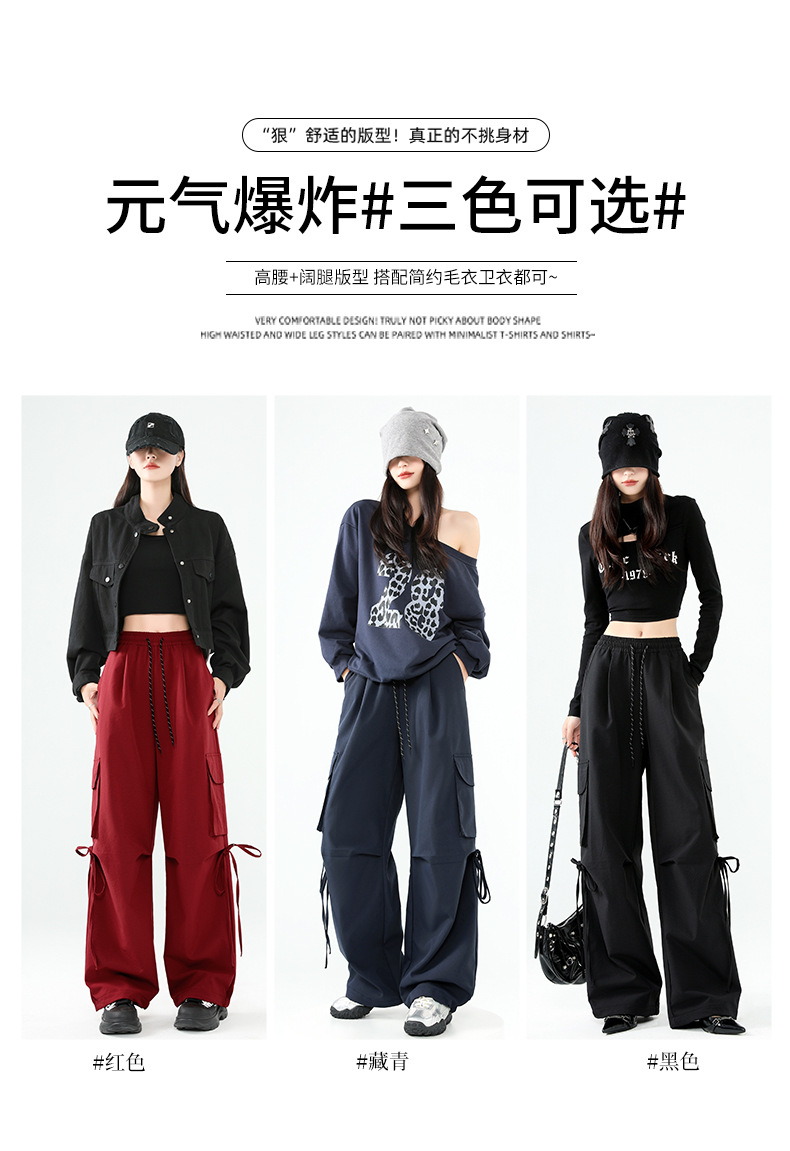 미국식 여성용 낙하산 스타일 작업복 바지, 2026년 가을 겨울 신상, 하이웨이스트 스트레이트 루즈핏, 기모 안감, 와이드 레그 스포츠 팬츠스토어 가기